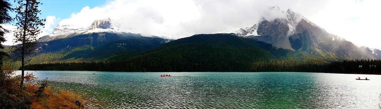 아들과 난 에메랄드 레이크 주위를 도는 트레일에 나섰다.