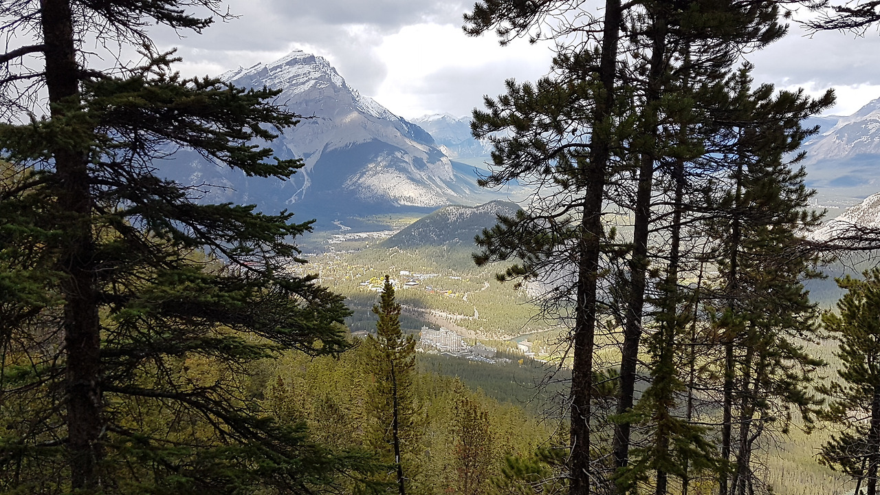 4번째 날 마지막 트래일은 Banff에 위치한 Sulphur Mountain! 2400m 높이의 정상을 1500m 트레일 출발점에서 시작한다. 약 1000m 정도 높이를 오르는 트레일이고 소요 시간이 3~4시간인데 우리 부자는 두 시간 만에 올랐다.