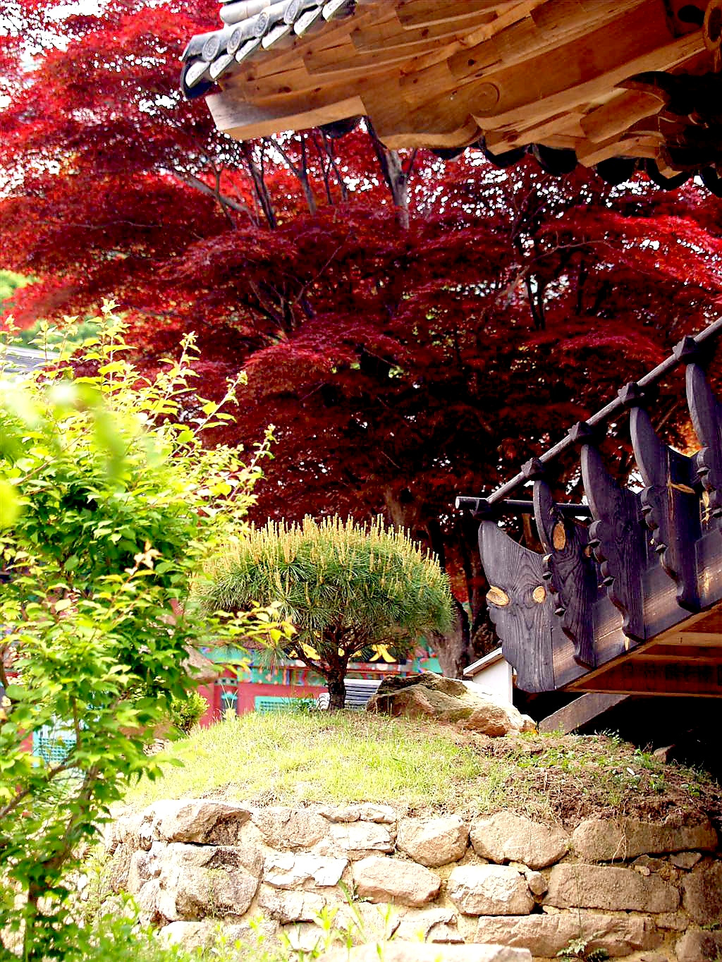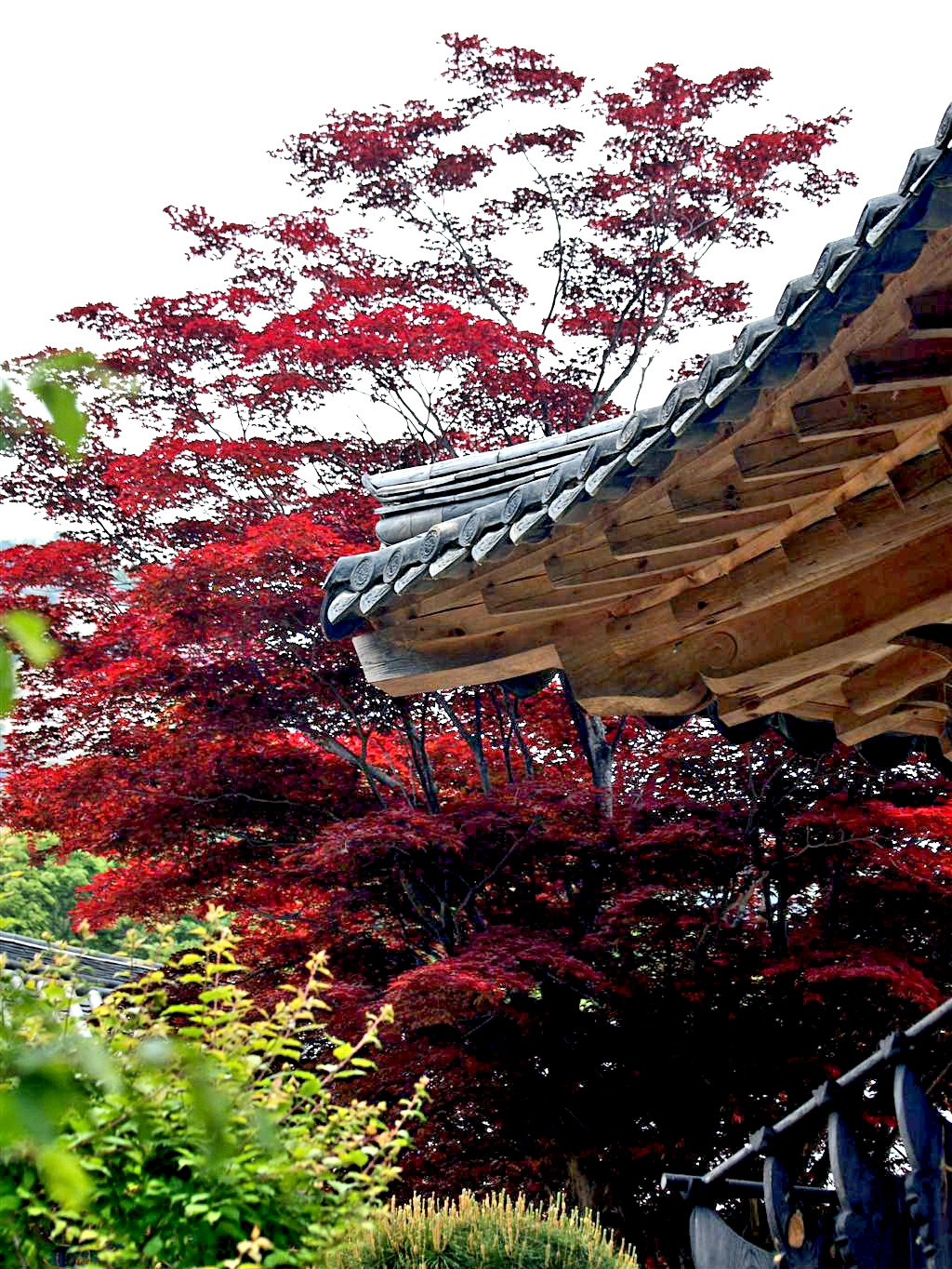 세월에 의해 최적화된 부드러움과 그 중력을 뚫고 하늘로 치솟는 붉은 기상에 감탄했다.