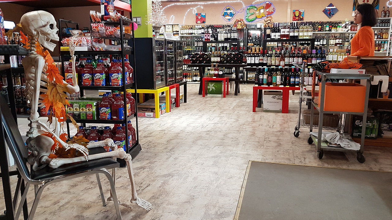 내 호텔 리쿼 스토에 들어선 마을 친구 부부의 산뜻한 할로윈 코스튬에 나도 괜히 들뜨고..
