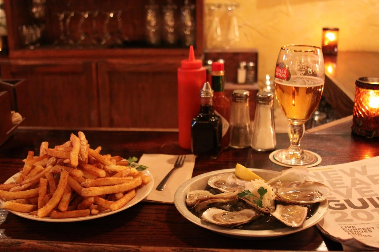 굴 한 접시와 감자 튀김 한접시, 그리고 스팀 휘슬 생맥주 두잔은 이곳에서의 내 정량이었다.
