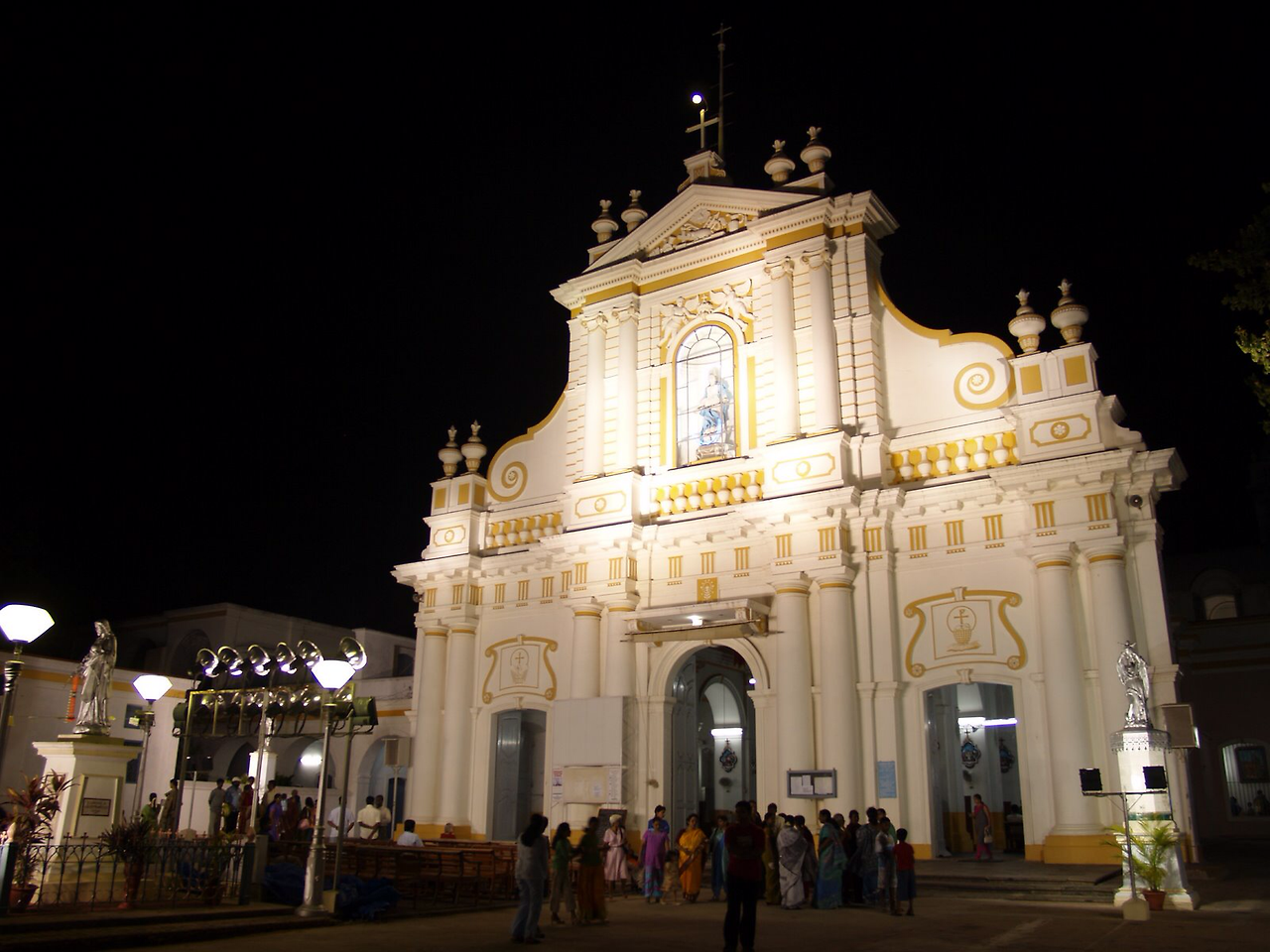 오렌지 색 가로등을 뒤로하며 기분 좋은 열대야의 따스함에 오히려 고마워 하며 천천히 걷고 있을 즈음, 전혀 다른 느낌의 색의 출현에 놀라 고개를 들었다. 프랑스 식민지였던 이곳 뽕뒤쉐리에서 스페인 풍의 아름다운 facade 를 가진 성당이었다. 아름다운 사리를 곱게 차려입은 신자들이 막 미사를 끝내고 행복한 표정으로 성당을 나서고 있었다.
