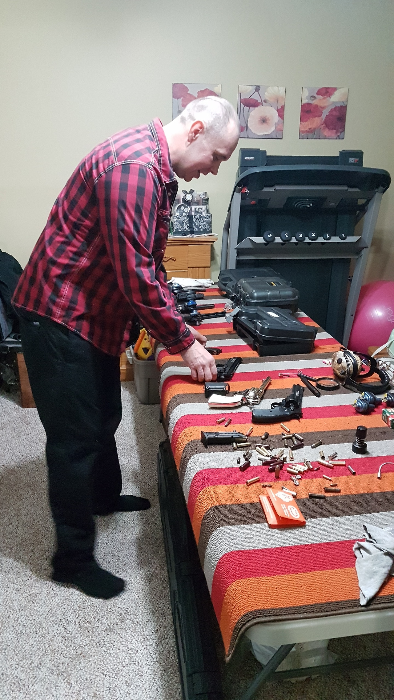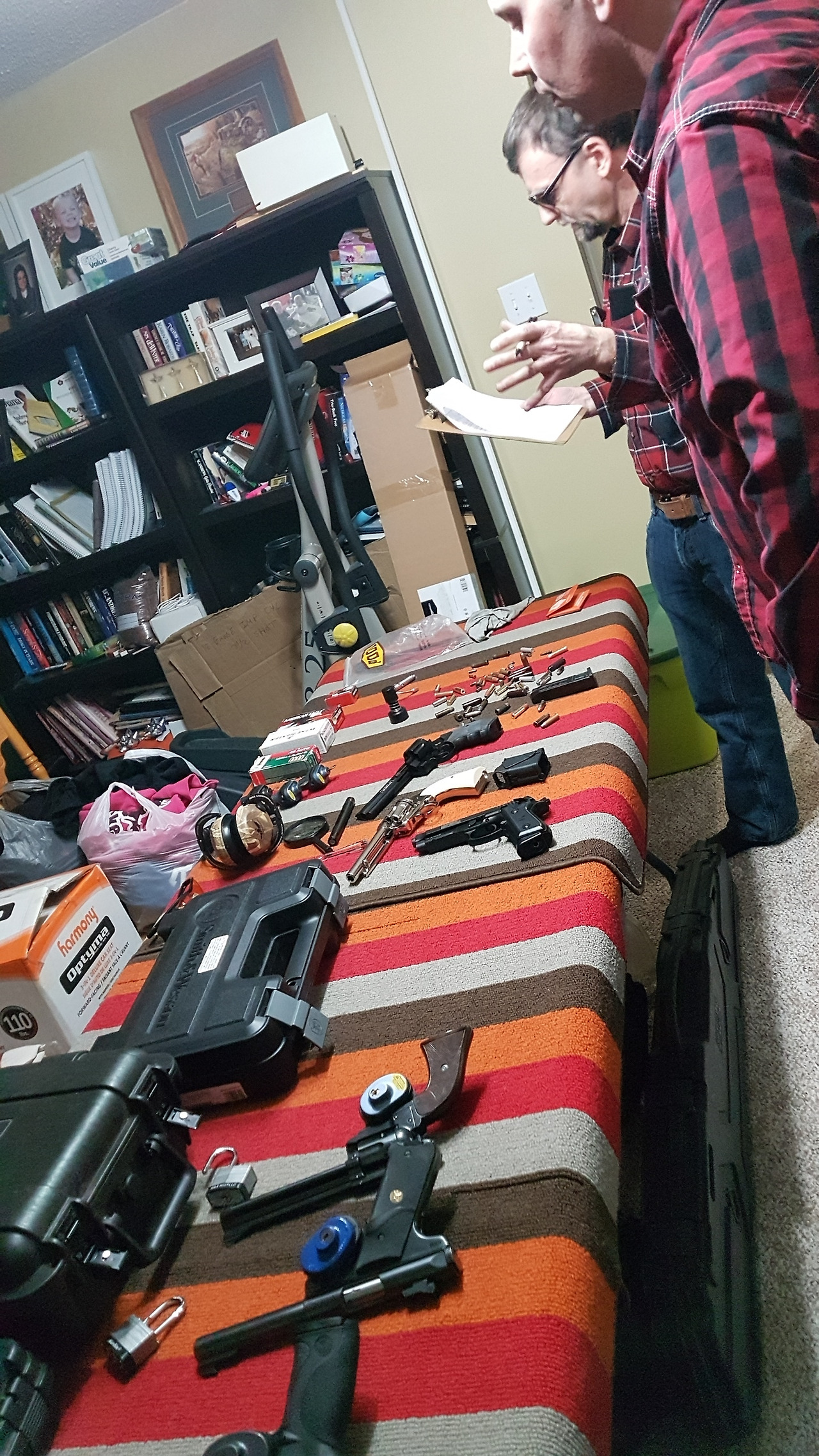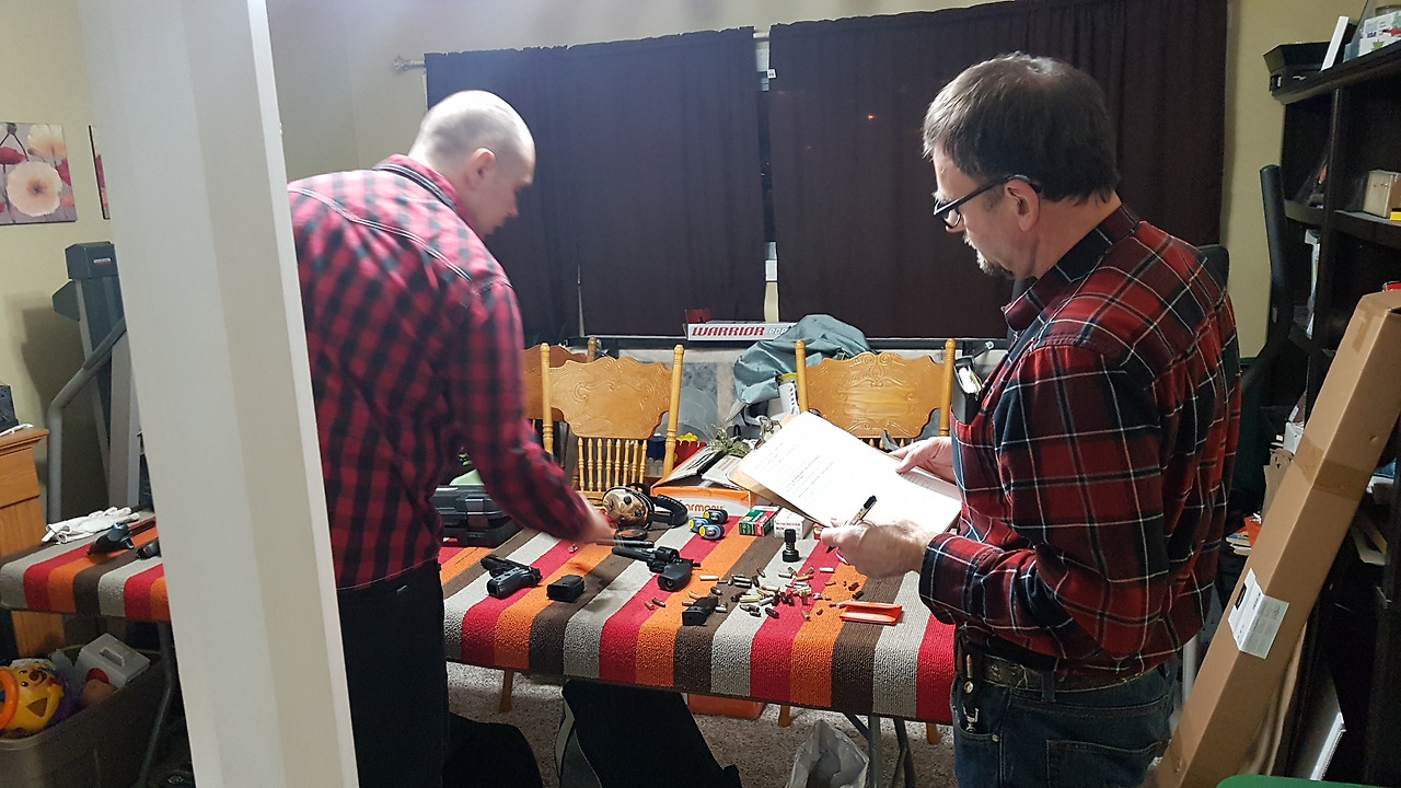 내가 실기 시험을 먼저 치르고 브라이언이 실기 시험 중이다. 피스톨에 사용되는 크고 작은 탄환들의 소재 및 구경을 식별해 내는가, 탄창에 장전을 제대로 하는가, 탄환의 특성을 파악하고 있는가 등등..