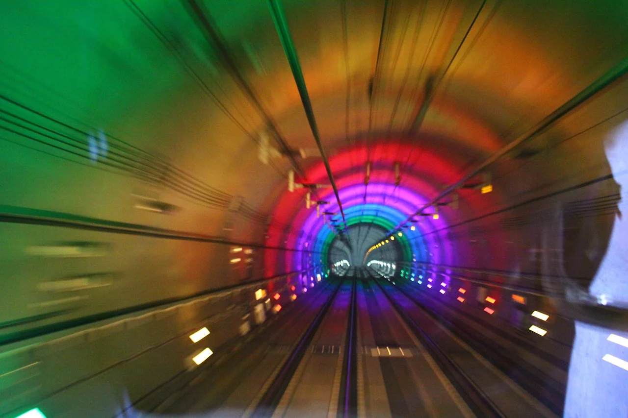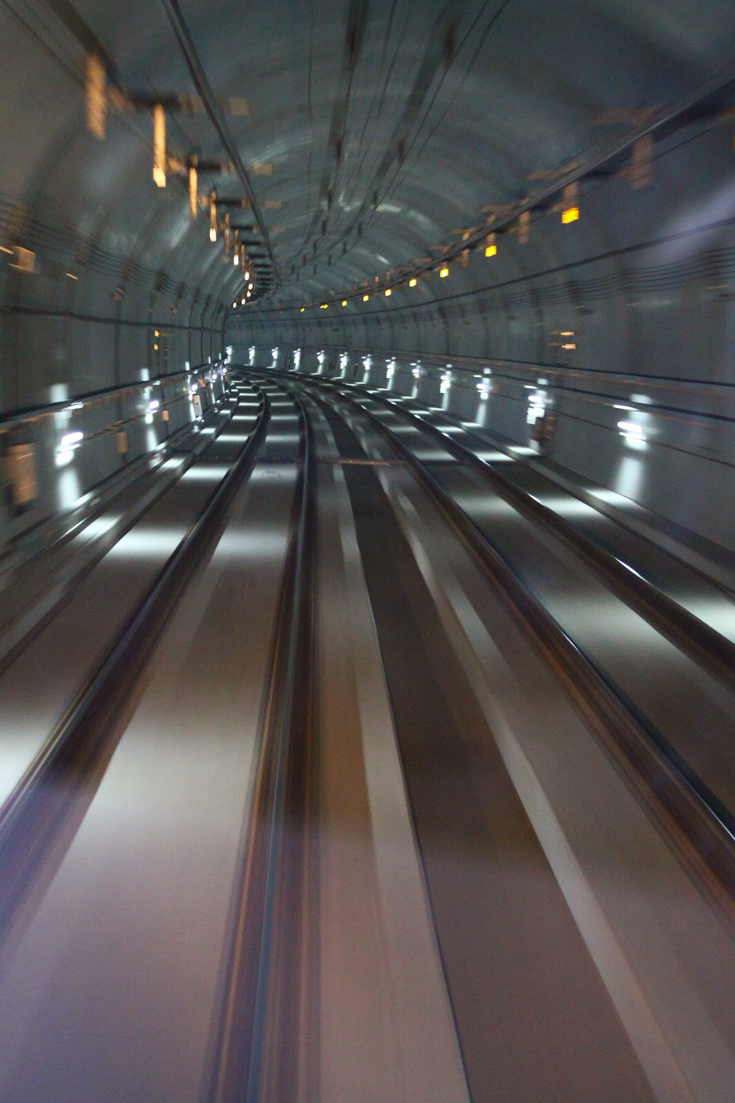 무인으로 운행되는 신분당선의 터널은 빛과 속도가 벌이는 향연으로 지루할 틈이 없었다.