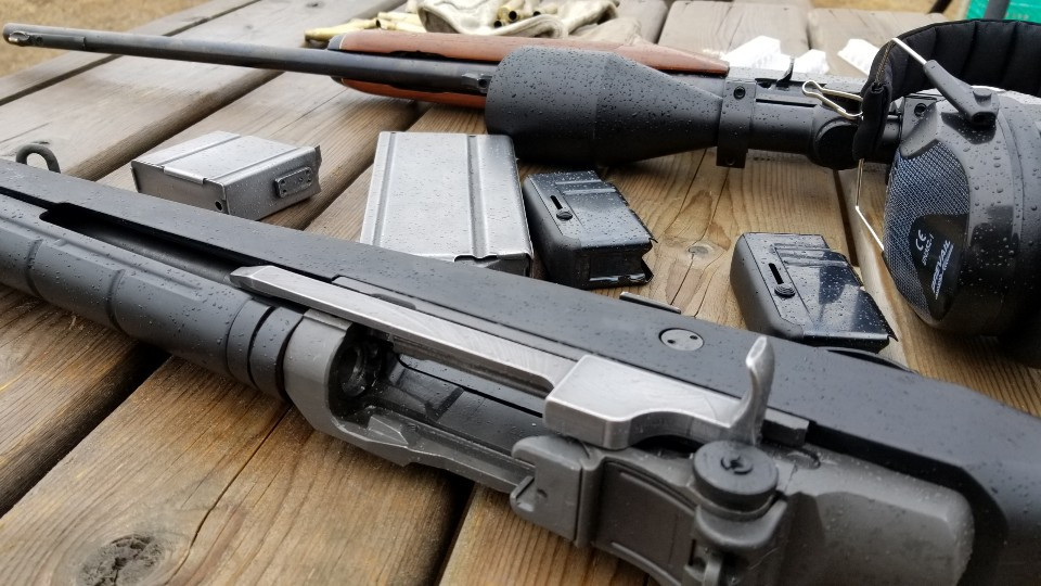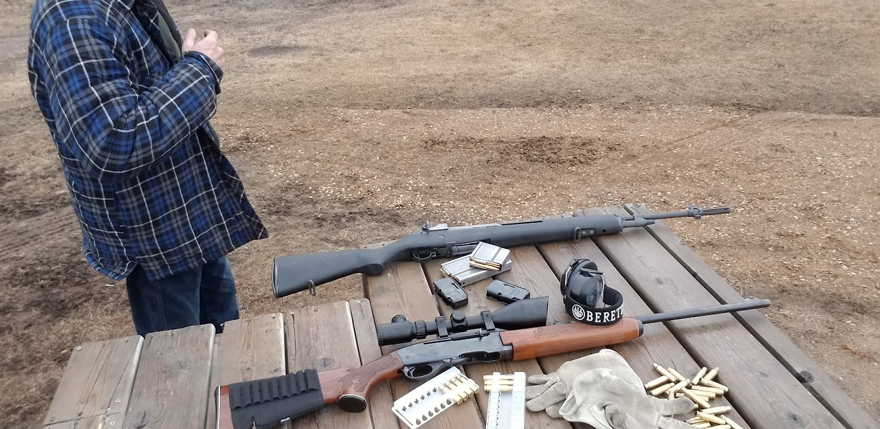 M14의 long magazine 은 원래 20발이 들어가지만 캐나다 firearms law에 따라 5발만 가능하도록 탄창에 철핀을 박아 막아 놓도록 하는데, 바보같은 제조사가 네발도 채 못들어갈 정도로 철핀을 얕게 위치하는 바람에 내 탄창엔 3발 밖에 안들어 간다. 제대로 만들어진 것을 두어개 정도 더 구입해야겠다. Short magazine엔 5발이 제대로 들어간다.