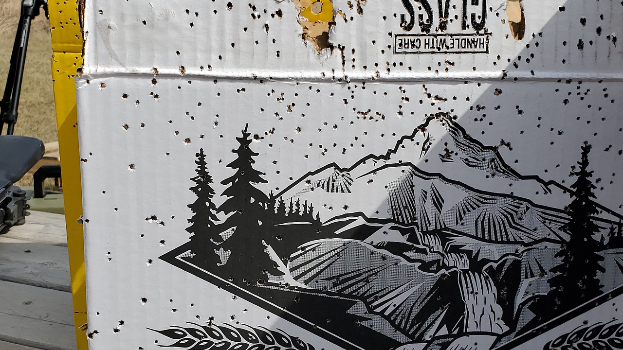 오늘의 타겟 중 하나였던 Polar Ice 보드카 박스. 내가 가장 애용하는 M14으로 제대로 명중 시켰다. 자꾸 하탄이 나서 rear sight의 elevation 클릭을 적당히 상향 조정 후 명중!!