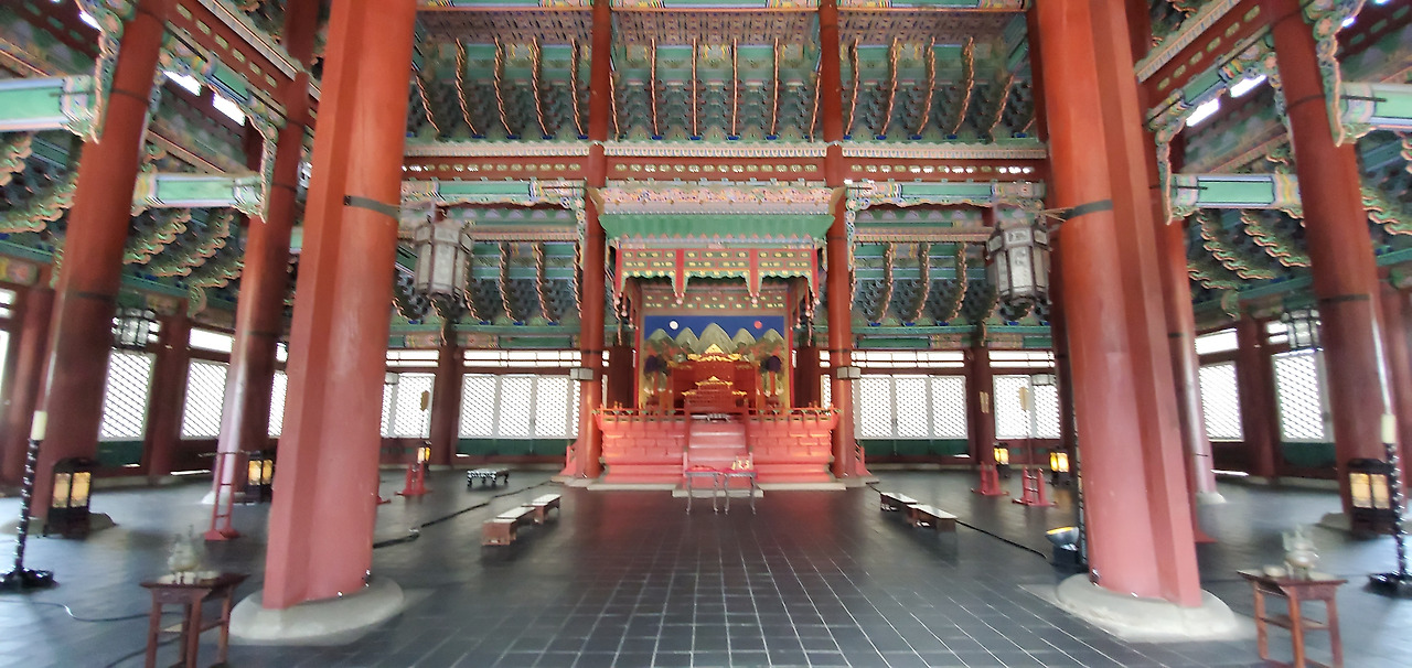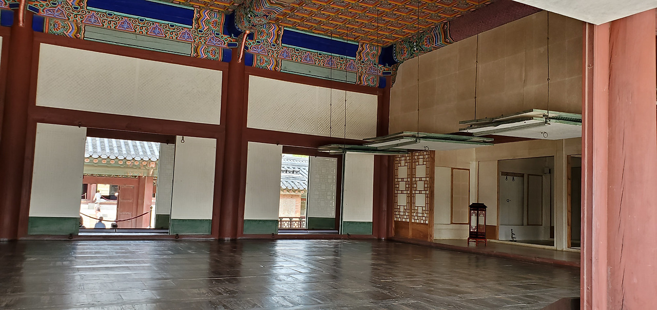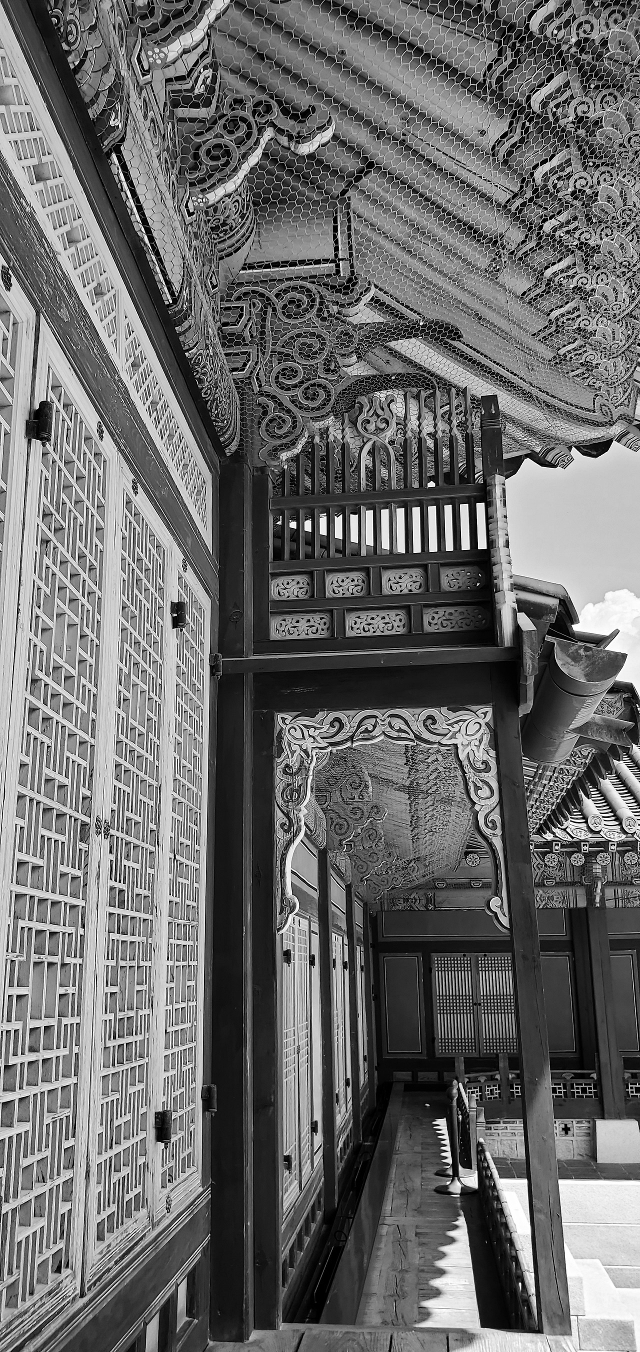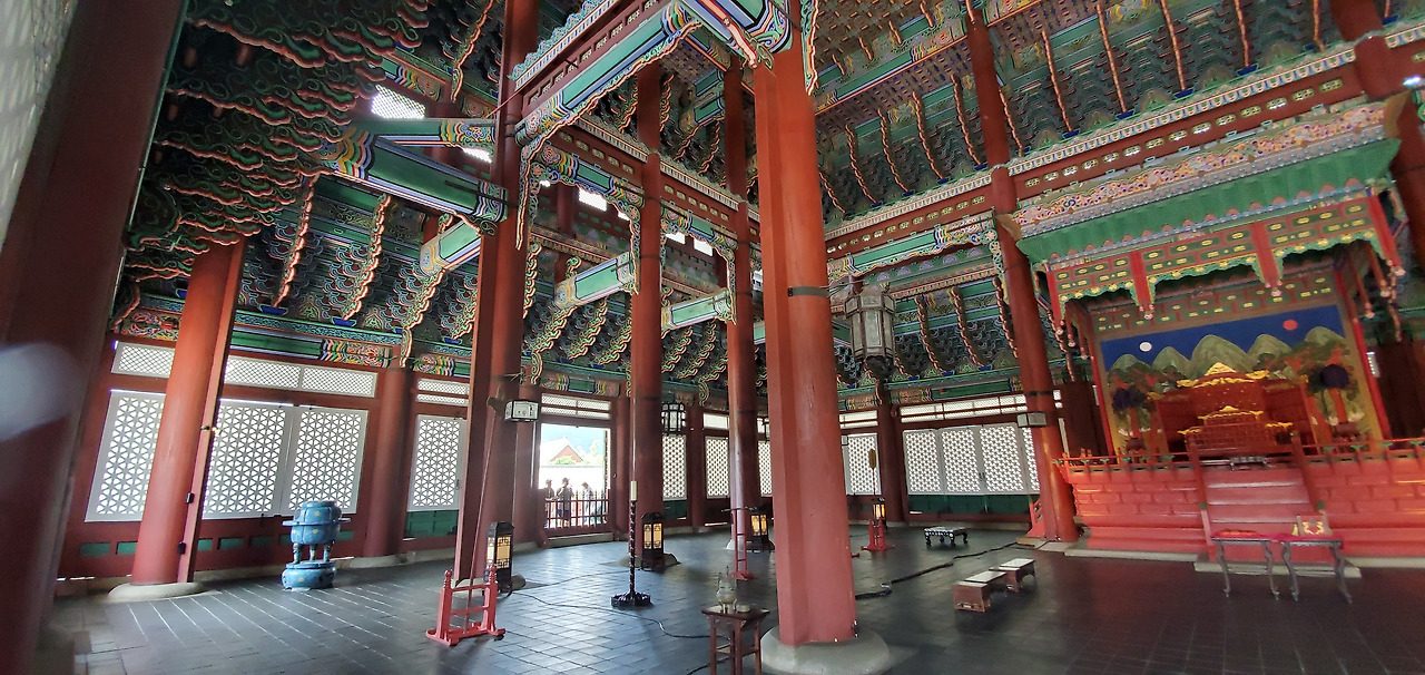 언뜻 화려해 보이지만 불교적 색상의 조합이 그리 어지럽거나 난하지 않고 높이에 따라 겹겹이 층을 이루며 올려진 구조물들이 적당한 간격과 모양으로 서로 어우러지면서 난 이곳 근정전을 올 때마다 하염없이 이 공간을 살펴보게 된 지 오래다. 부지런히 정무를 살피는 곳..이라는 근정전이라는 명칭도 얼마나 솔직하면서 단도직입적인가. ㅎ