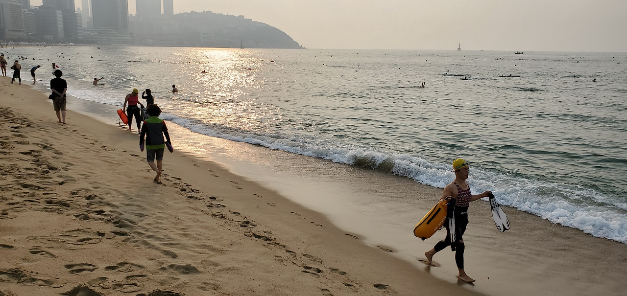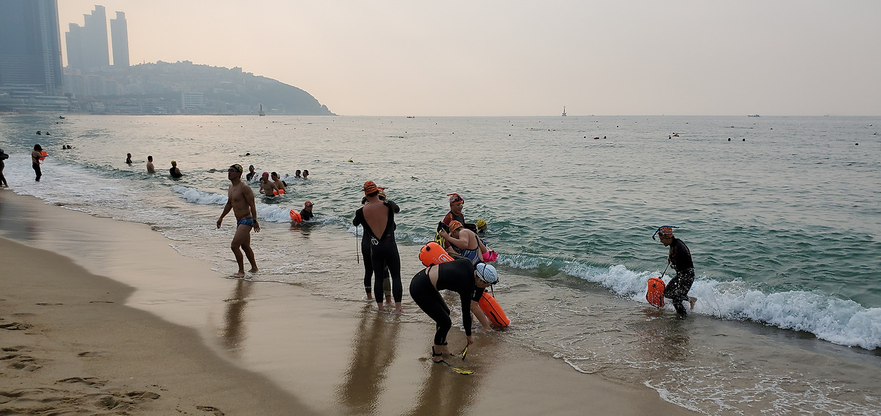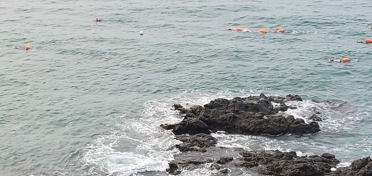I just spotted some people with their swimsuits on carrying masks, fins, etc. At first I thought there might be a Triathlon Championship or something starting from the beach.