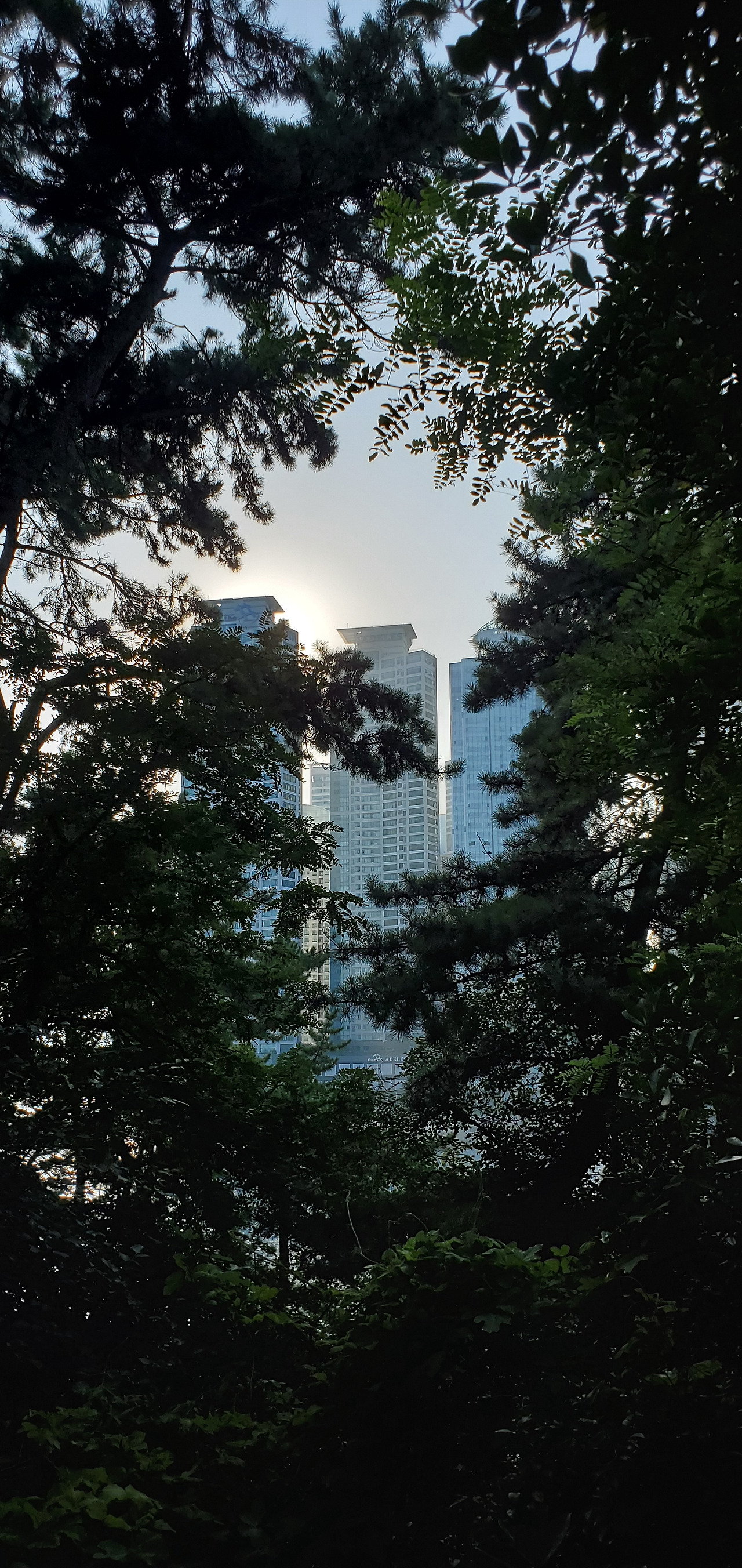 동백섬의 소나무 숲에서 바라본 위태롭게 솟아난 마천루는 비리와 탐욕속에 성급하게 축조된 바벨탑인듯 했는데 부산 시민들의 달맞이 길에 대한 추억 자체를 완전히 지워버리고 있었다.