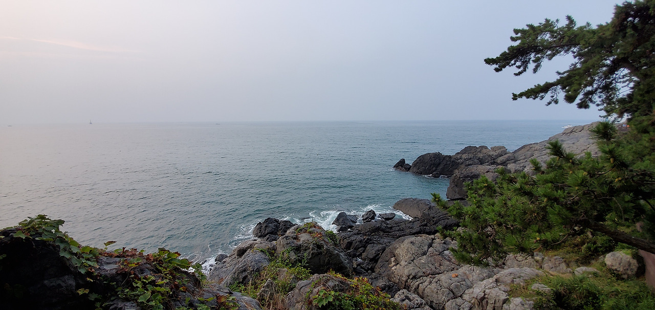 The rocky island were fully covered by old pine and specifically dongback trees which are famous for their gorgeous burning red flowers.