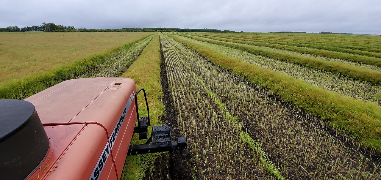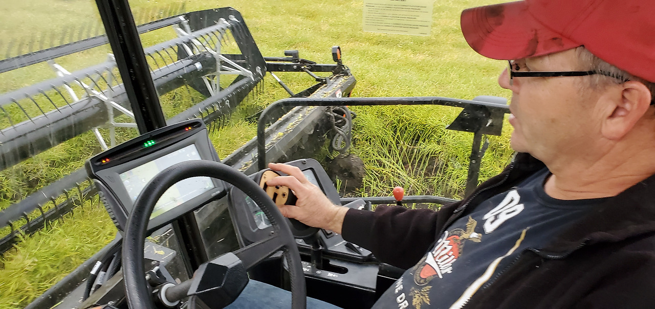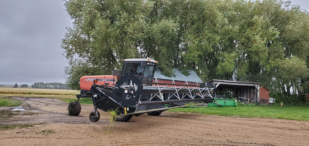 컴바인의 전면부에 부착된 수확장치의 일종인 Swather(스워써 aka Windrower)는 하부에 머리 깍는 기계 같은 손바닥 만한 Cutter 백여개가 설치되어 작물의 줄기를 잘라내며, 잘라진 작물들은 가운데로 모이게 되어있는 컨베이어 트레이들에 실려 들판에 열지어 쌓이게 된다.