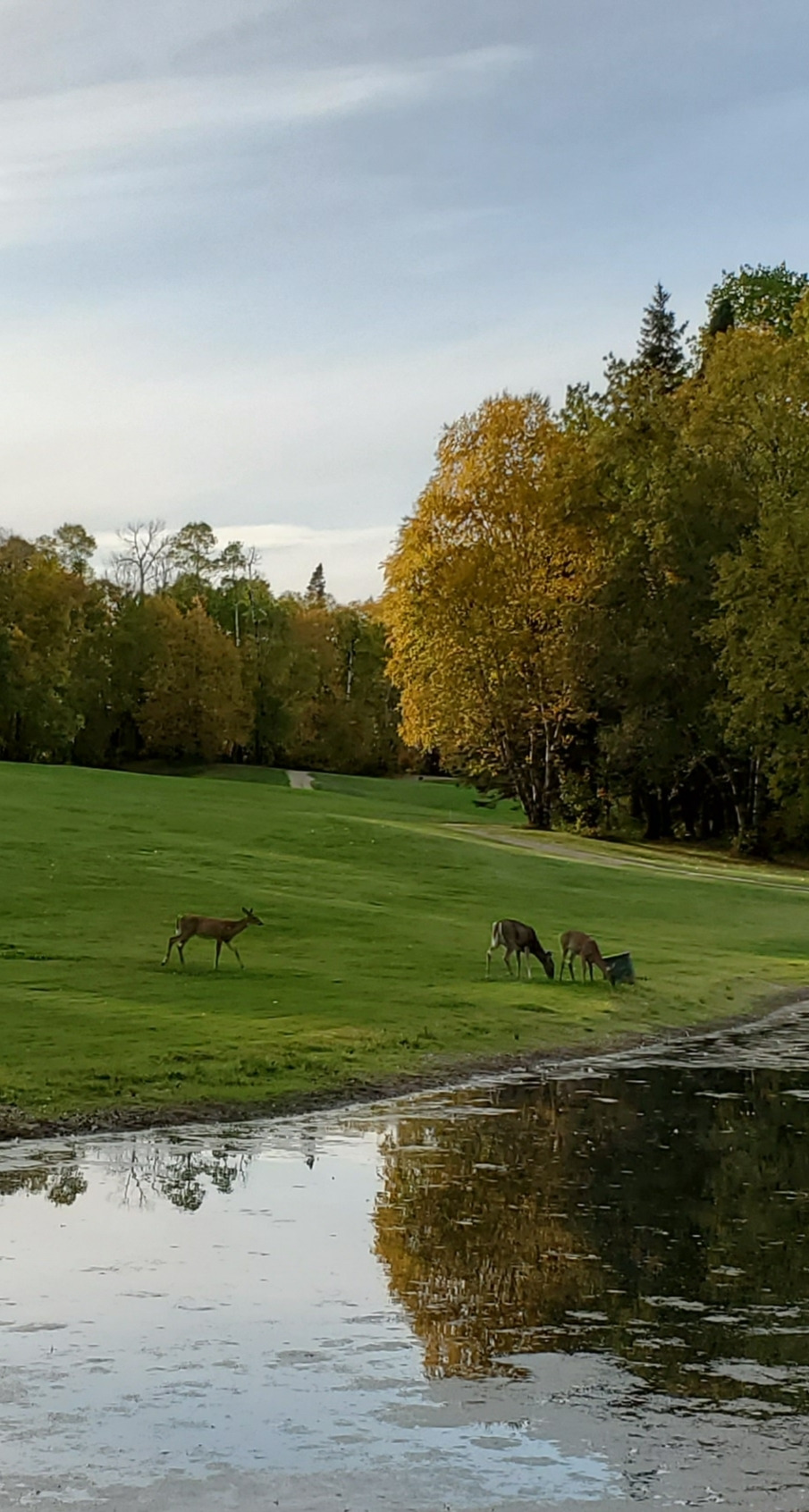 티를 세우고 드라이버를 휘둘러 큰 소음이 발생했음에도 녀석들은 꿈쩍도 안했는데 내가 카트를 몰고 녀석들에게 다가가고서야 숲으로 사라졌다.