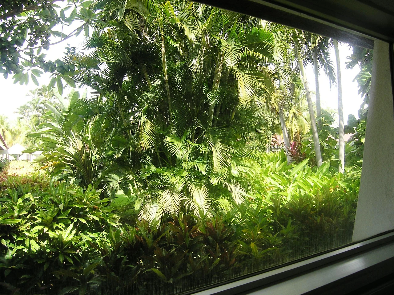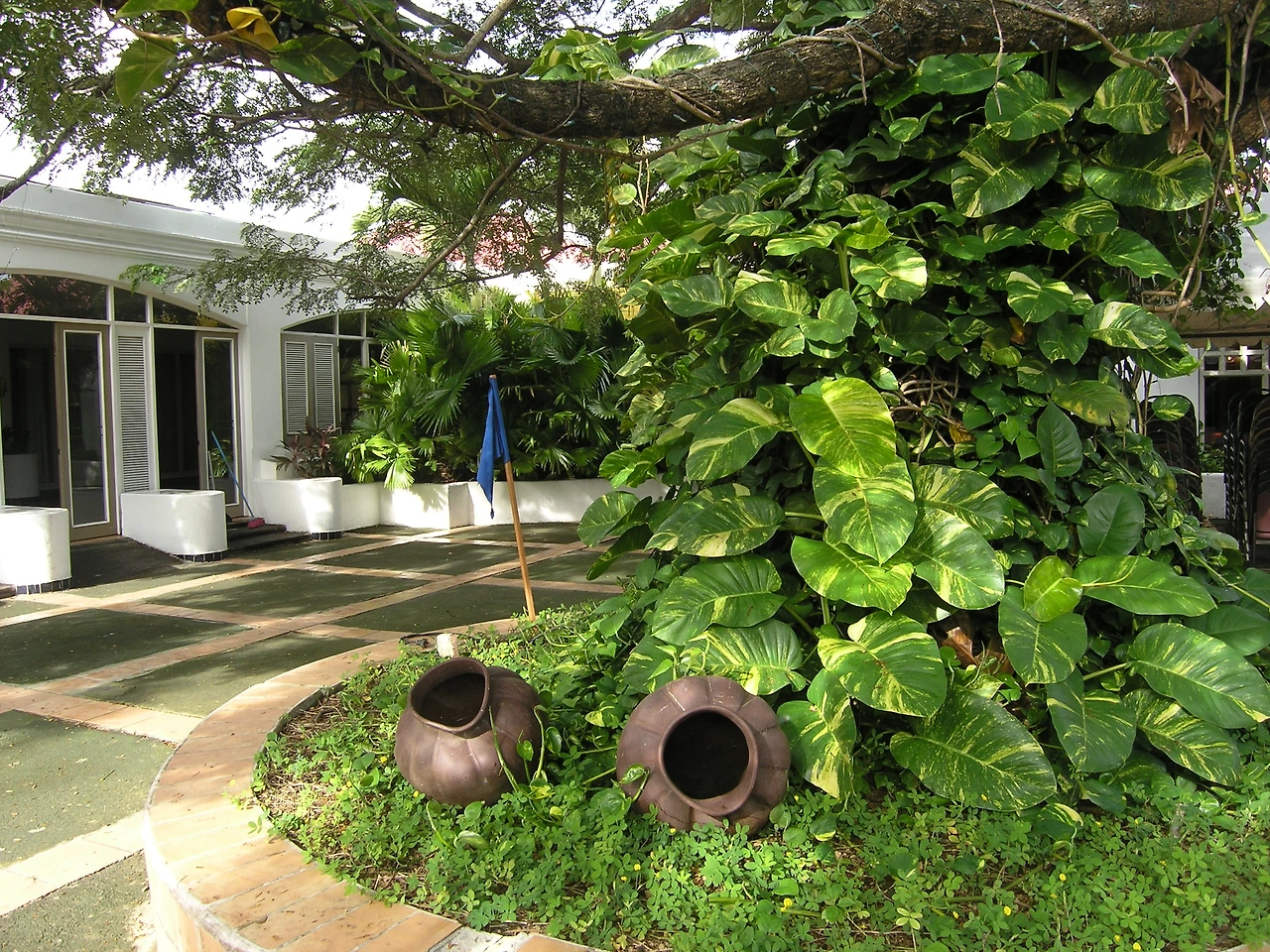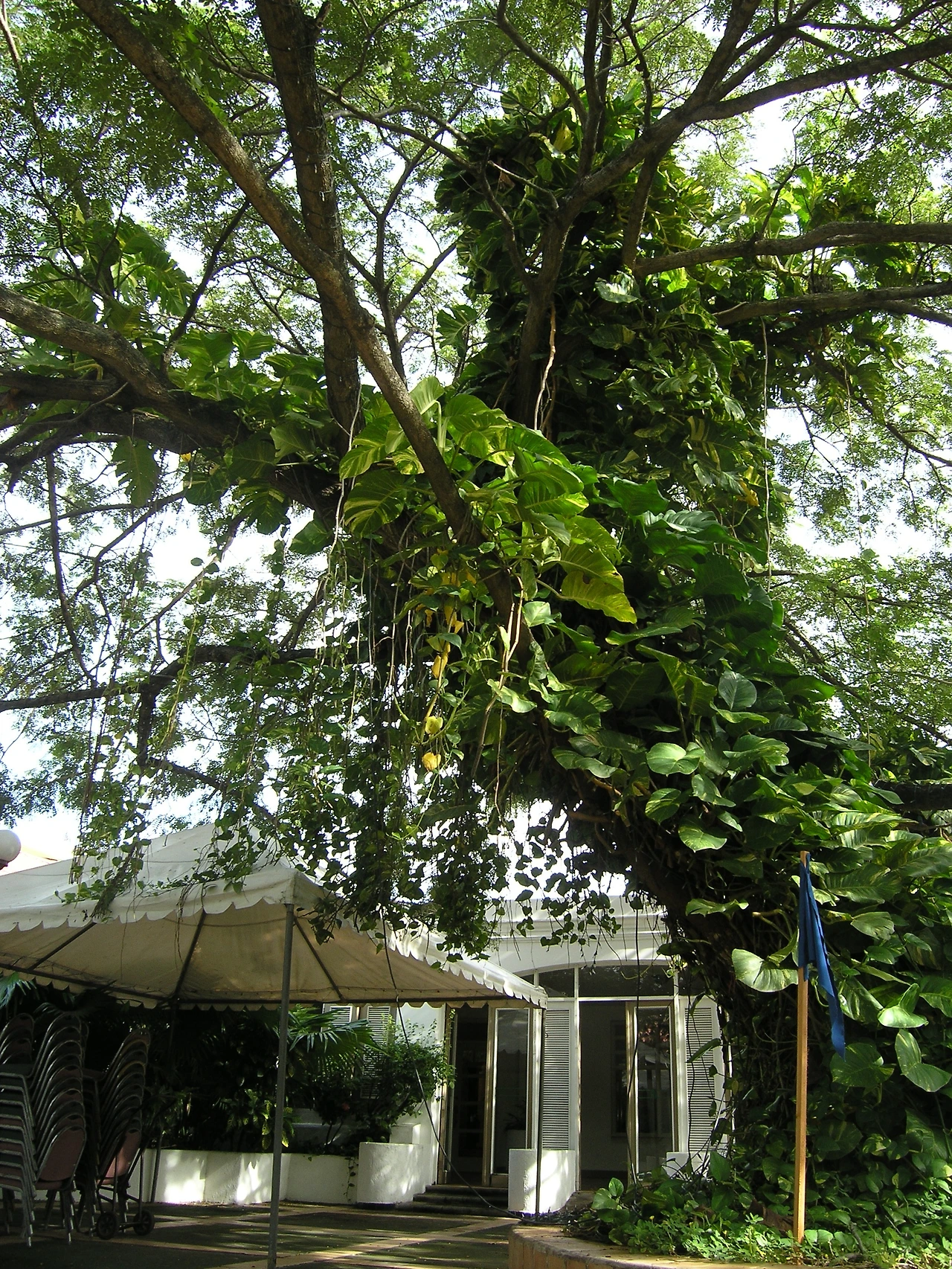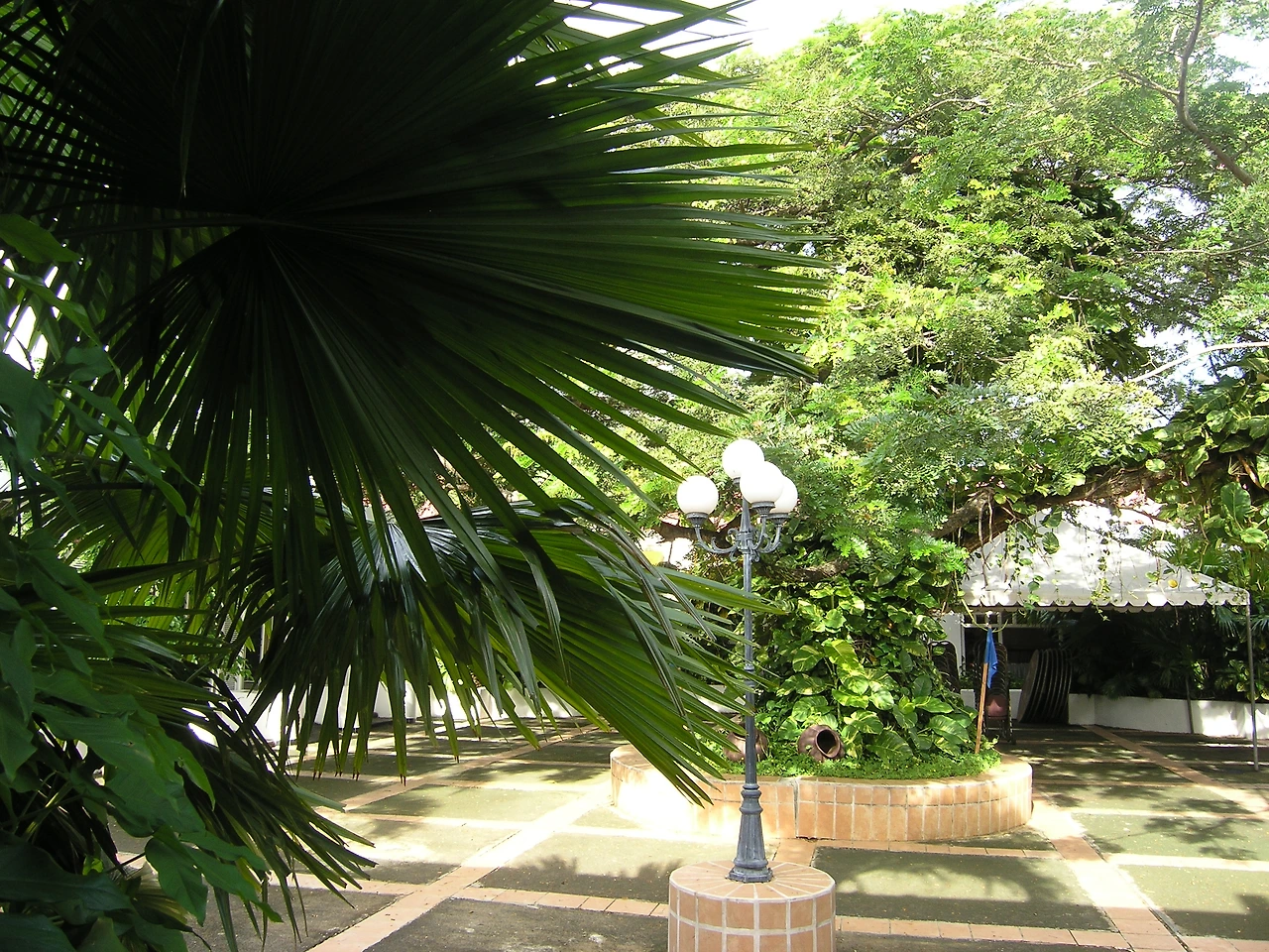 어마어마한 크기의 나무가 스페인 풍의 아담한 정원 중간에 자리하고 있었는데 그 나무의 호기심 많은 한 가지가 호텔 회랑 문의 창틀 사이를 비집고 안으로 들어오고 있었다.