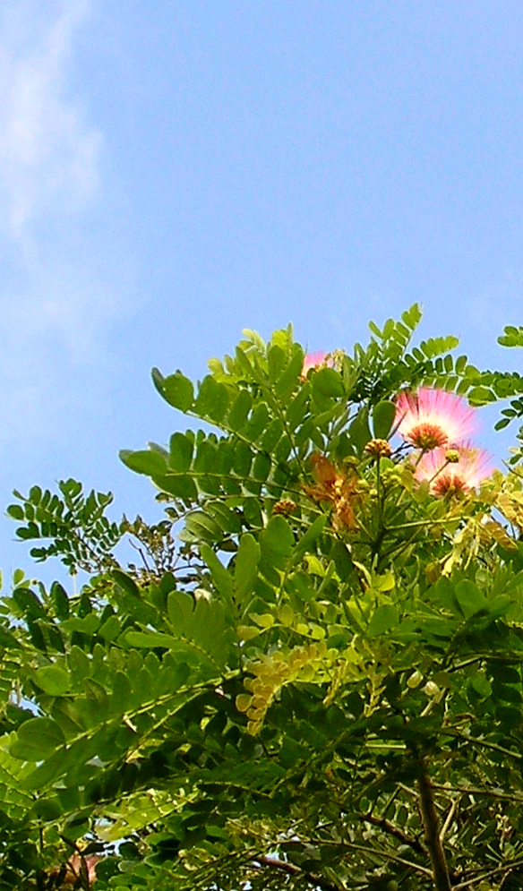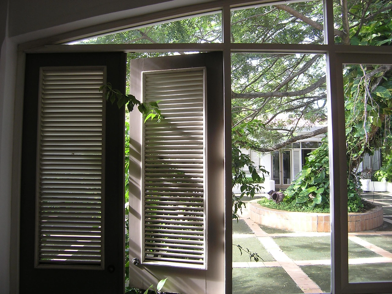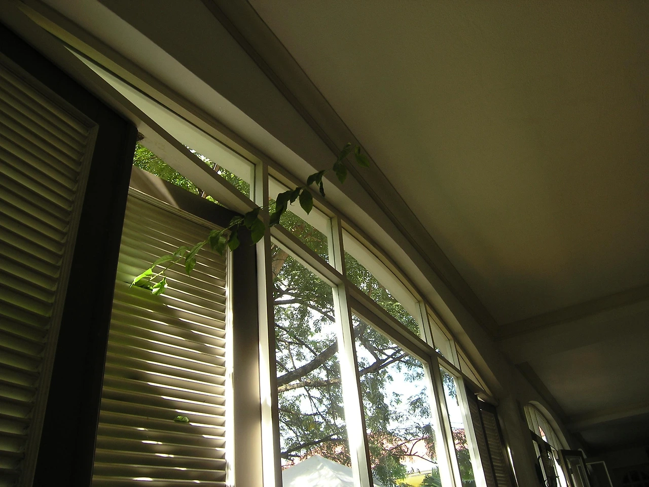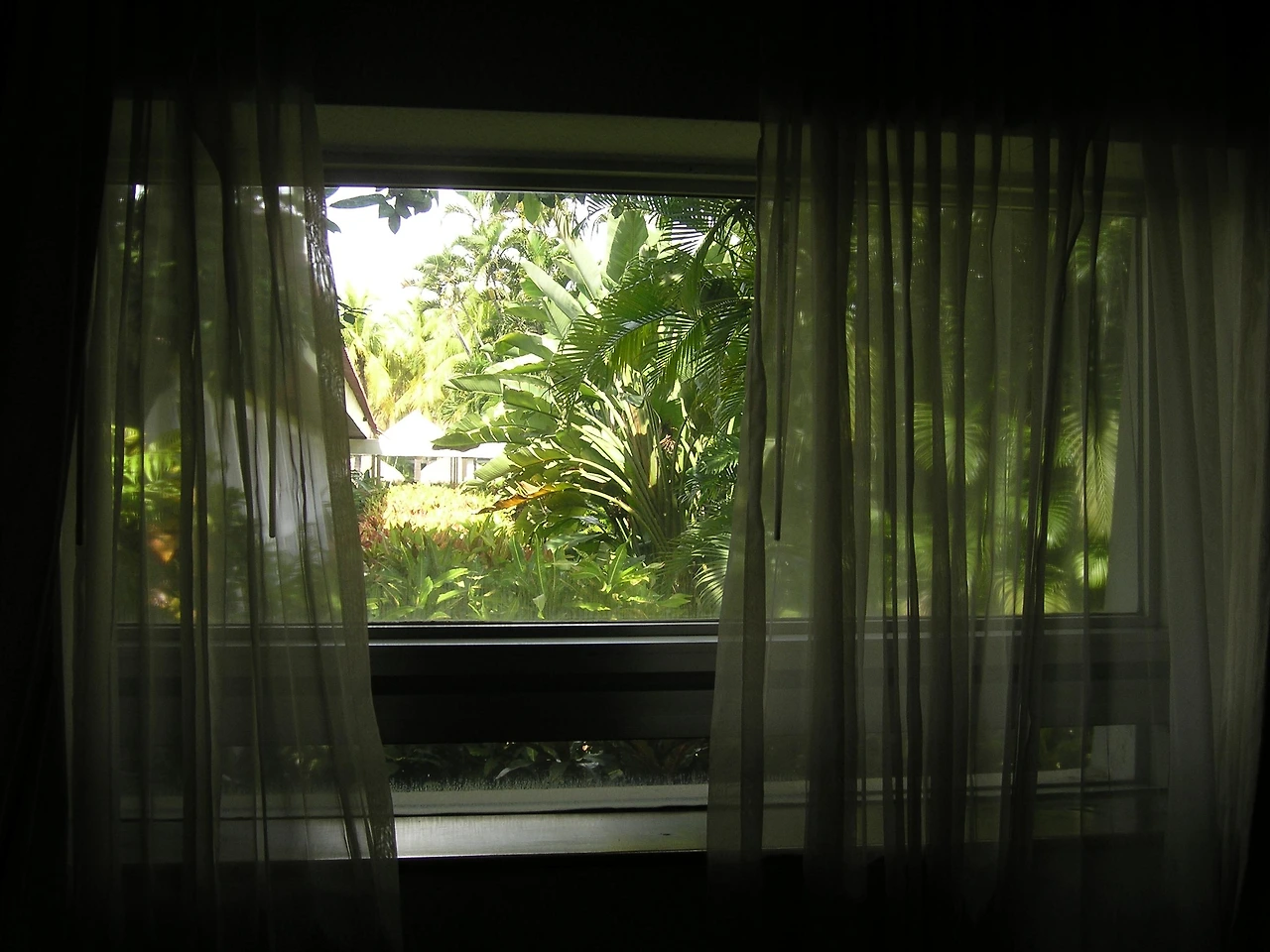 어마어마한 크기의 나무가 스페인 풍의 아담한 정원 중간에 자리하고 있었는데 그 나무의 호기심 많은 한 가지가 호텔 회랑 문의 창틀 사이를 비집고 안으로 들어오고 있었다.