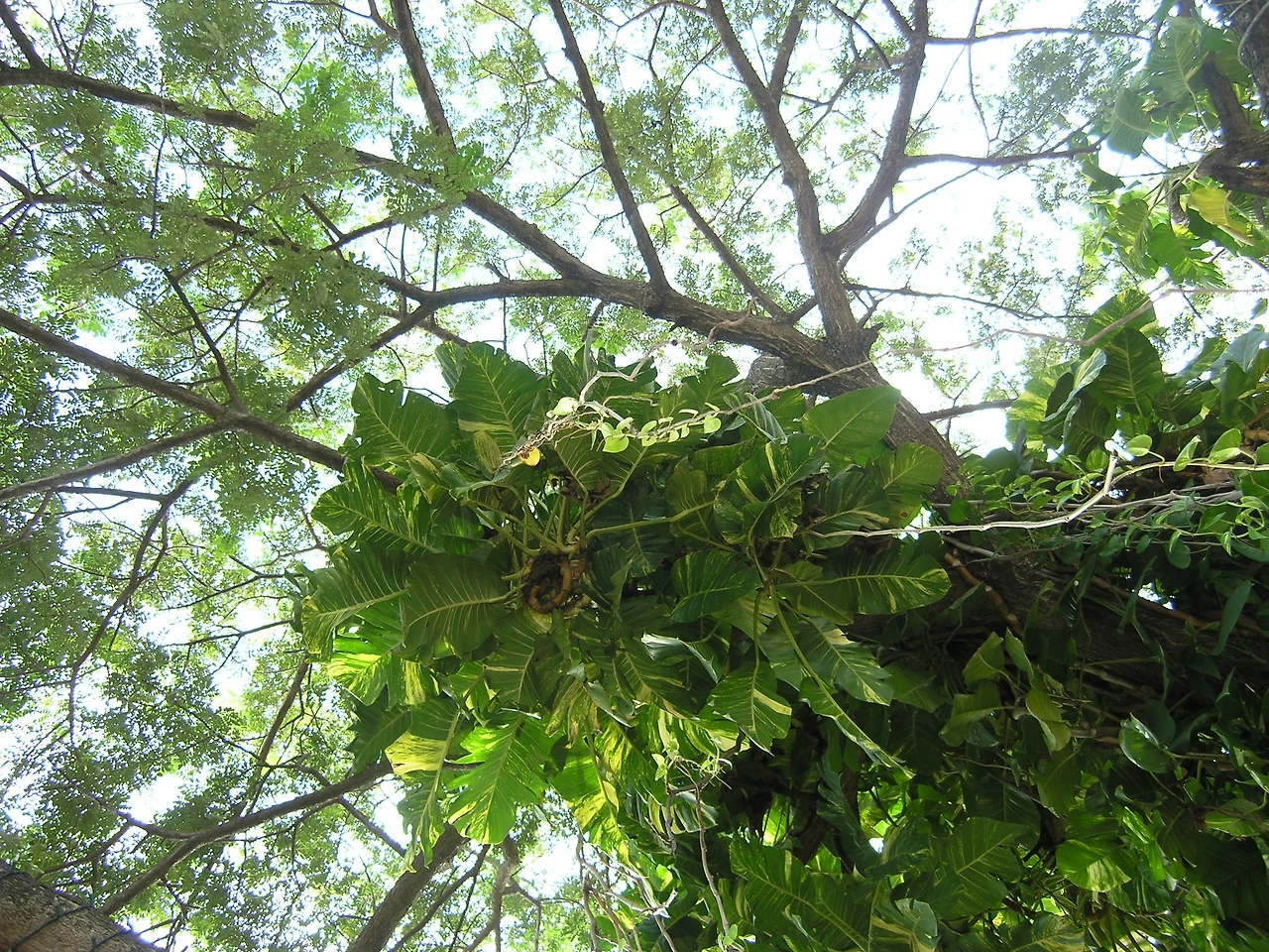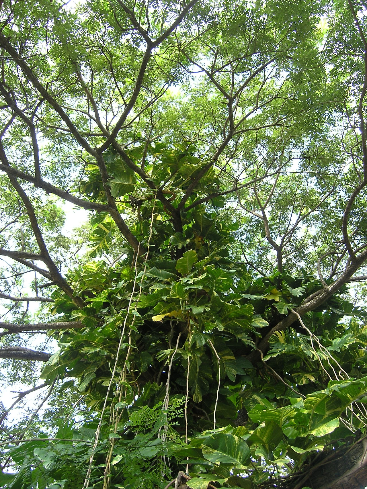 잭과 콩나무 동화에서나 상상으로 그려지곤 했던 나무 였다. 하늘로 치솟아 오르고 올라 구름위에 위치한 그 꼭대기에 외눈밖이 거인이 살고 있을 듯한 그런 나무였다. 바오밥 나무 종이 아니었을까. 녀석의 아름드리 몸통을 감싸며 공생하는 덩굴류의 기생 식물 역시 대단했다. 나무에 옷이 입혀졌다고나 할까.