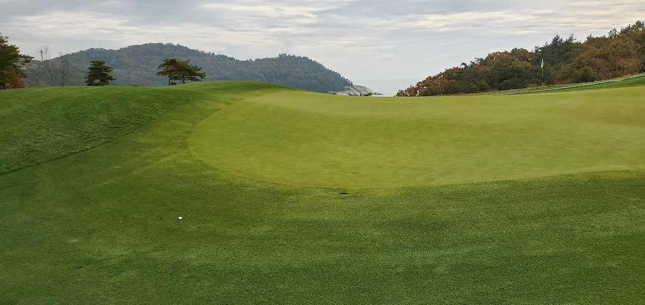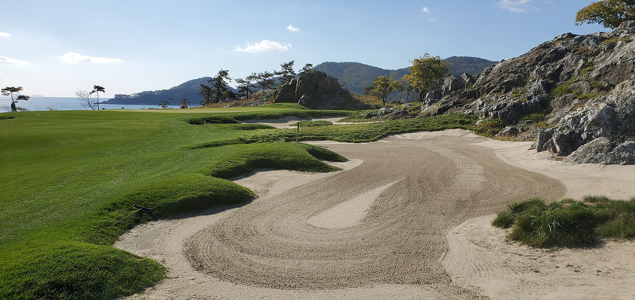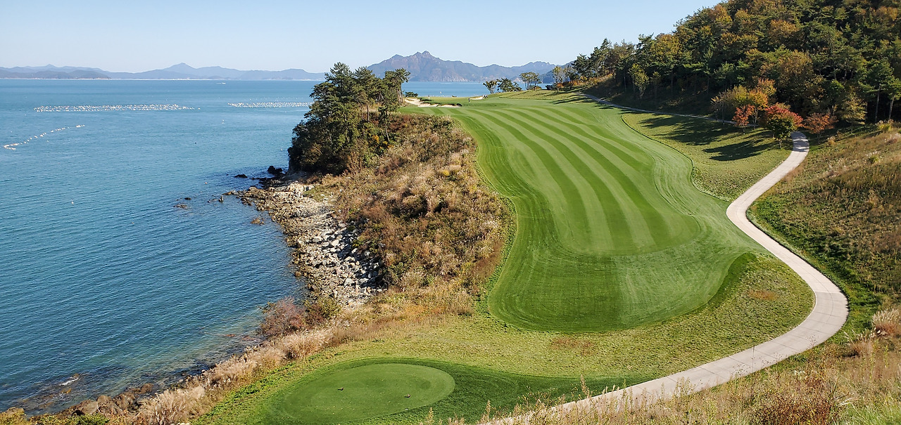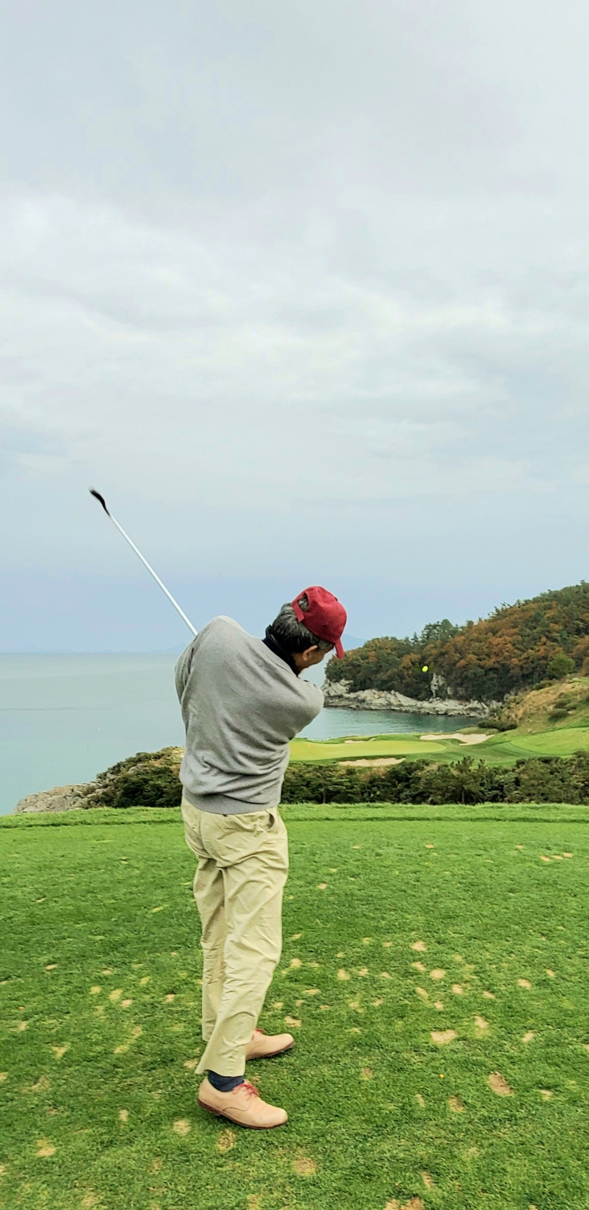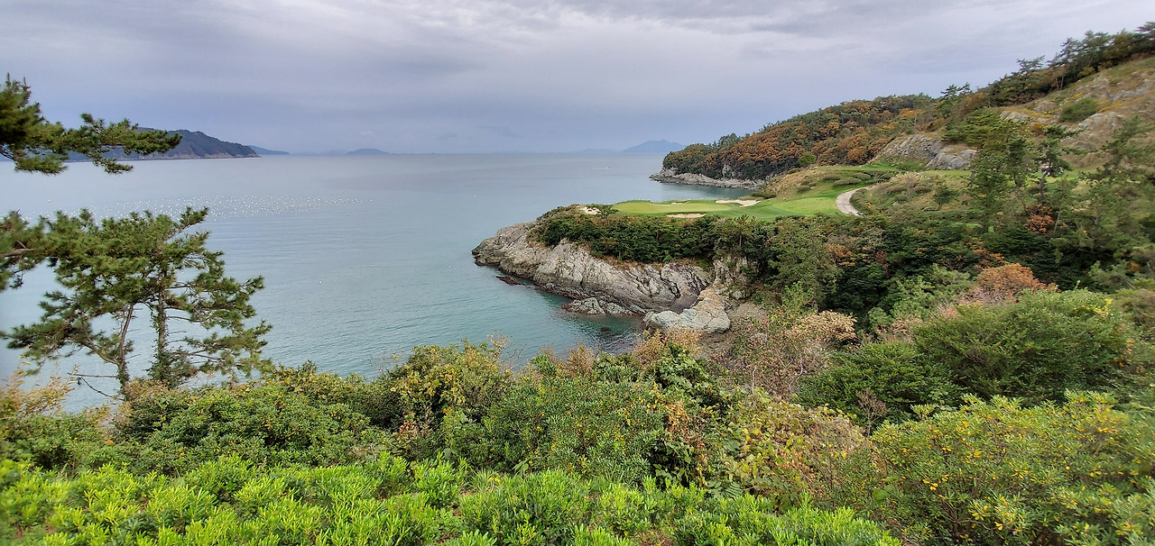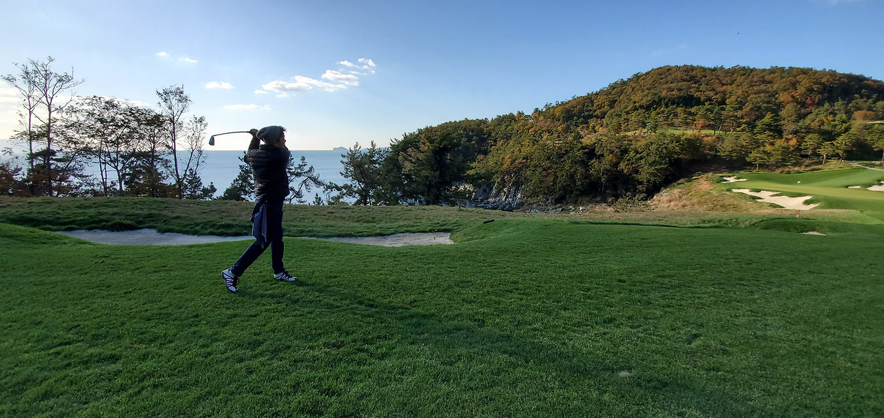 하드웨어를 소프트웨어가 전혀 따라가지 못하고 있었다고나 할까. 최고의 입지에 막강한 건축물의 넓직한 panoramic space 에서 hospitality service가 따라 주지 못함은 정말 안타까웠다. 나름 고가 원목 그랜드 피아노의 자동 연주는 볼륨이 너무 크게 조정되어 있어 황당했다. It was so annoying and weird. 과시적 촌스러움이랄 밖에는.. 또다른 경악스러움은 리조트 객실에 비치된 물품 목록이었다. 접시, 물잔, 찻잔, 포크 등등 객실에 비치된 모든 잡다한 물품들에 대해 그것이 없어졌을때 게스트들이 물어 내야 하는 금액들이 협박적 의미로 나열되어 있었다. 커피잔 하나에 십만원 어쩌구. 얼마나 많은 숙박객들이 그냥 들고 갔으면 이런 황당한 경고성 공지를 해 놓았을까 라는 생각이 들면서도 불쾌함이 극에 다랐다. I would never come again for sure. 다행히 리셉션 데스크를 비롯한 전반적 고객응대를 담당하는 직원들의 자세는 나무랄데가 없었다. 특히 이틀간 두번의 라운딩 동안 경기 도우미 분들의 친절하고도 프로페셔널한 도움 역시 매우 인상적이었다. 식당과 객실 운영상의 우스꽝스러움에도 남해의 아름다움 속에서 최고로 관리되고 있던 개성 넘치는 18홀의 면면은 우리 모두를 감탄케 했다.