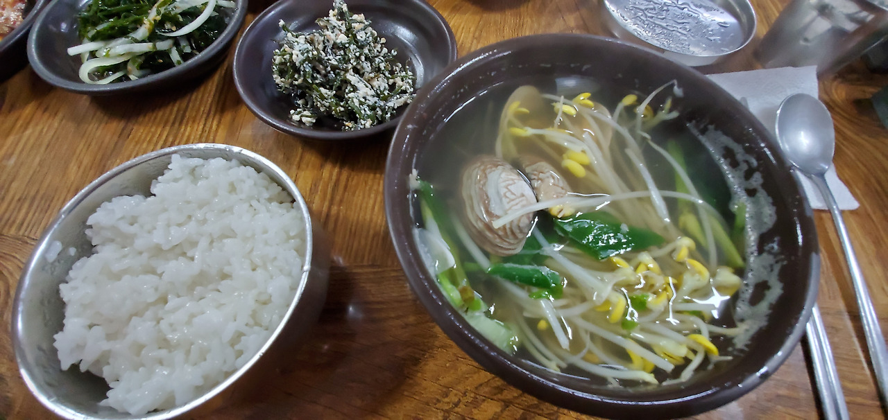 싱싱한 조개와 콩나물이 가득 들어간 해장국은 처음 대하는 남도의 음식이었다. 어찌나 맛이 시원하던지!