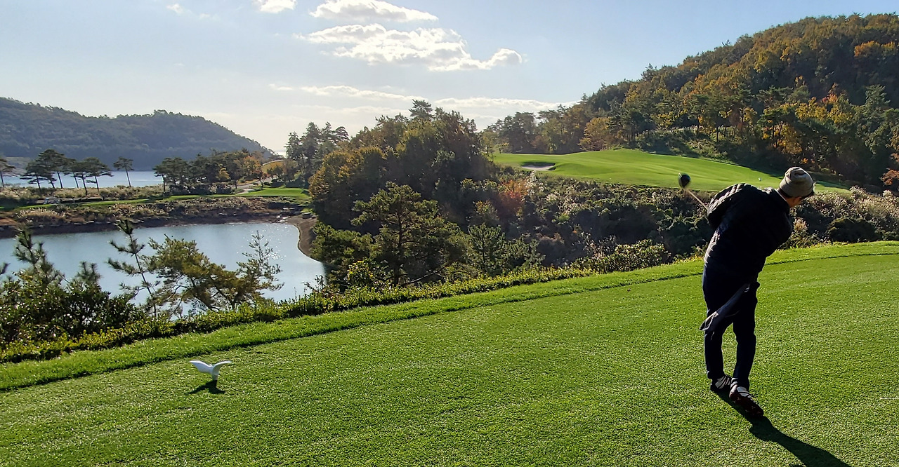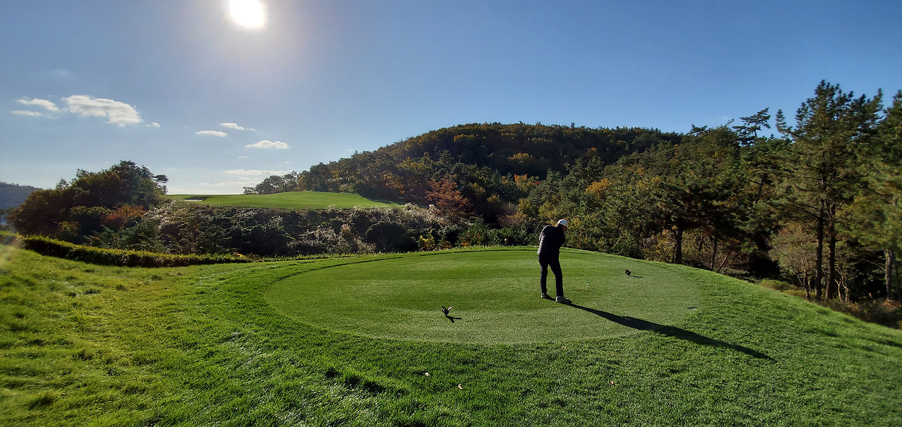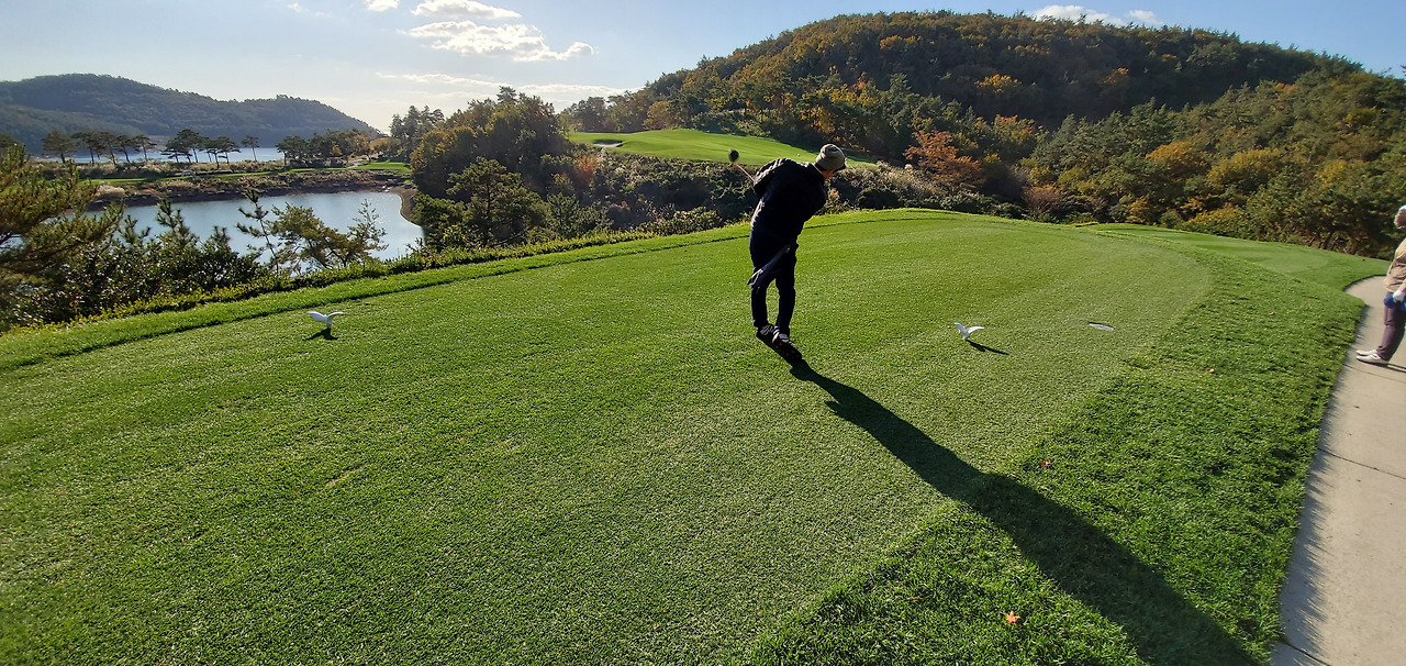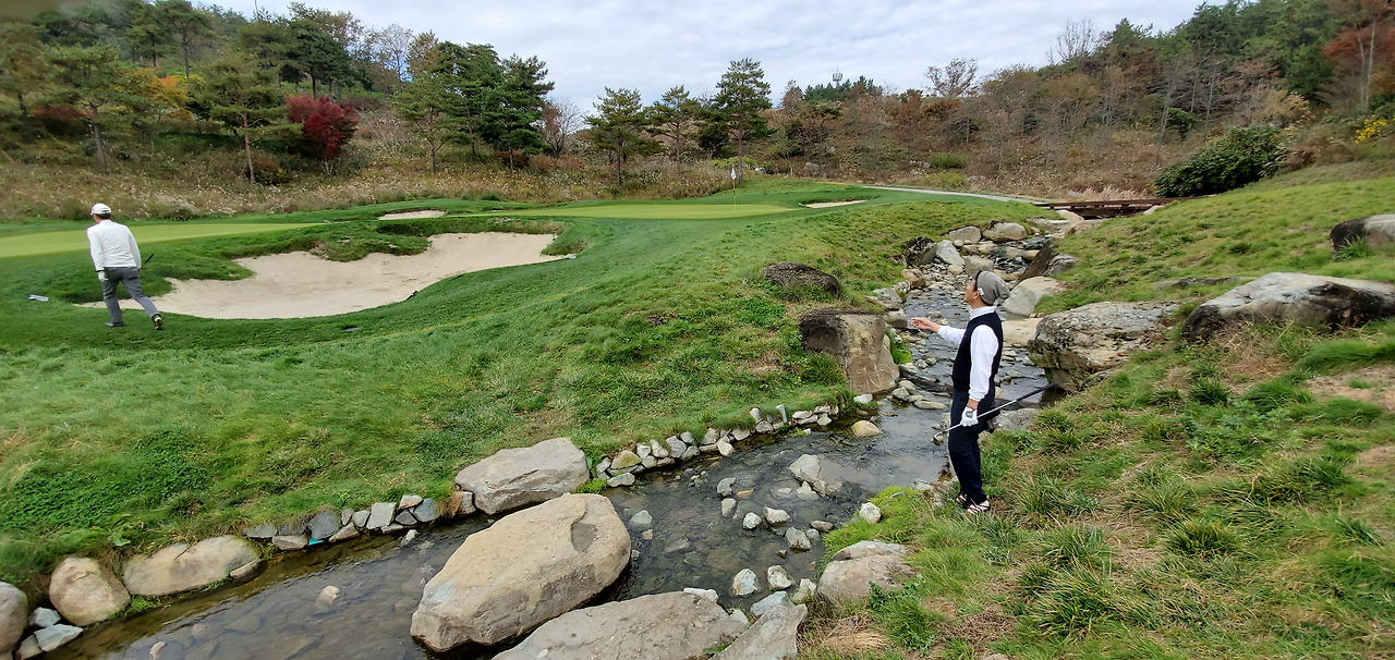 캐나다에서 바쁠것 없는 산책성 골프만 했던 난 한국에서의 전투 골프에서는 대책없이 무너져 내렸는데, 운좋게도 이곳의 시그니쳐 홀에서 버디를 낚긴 했다.