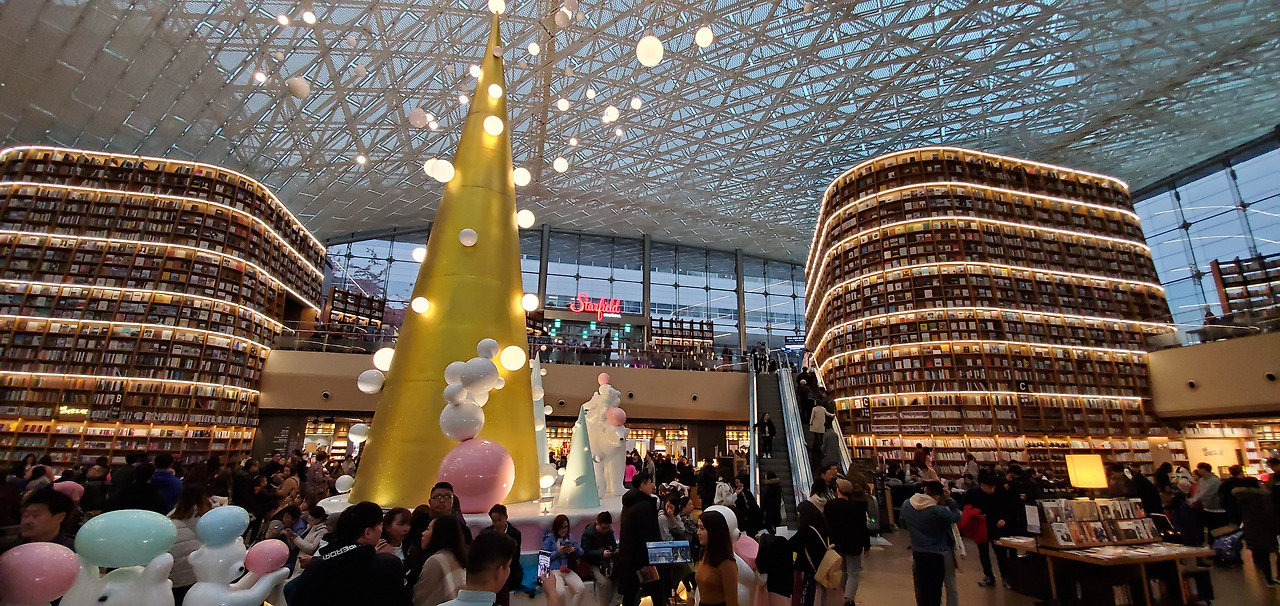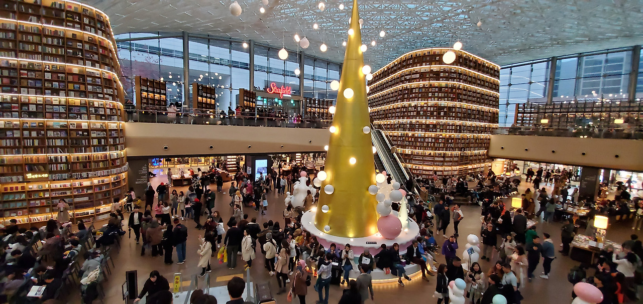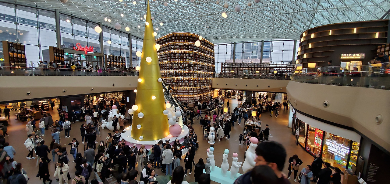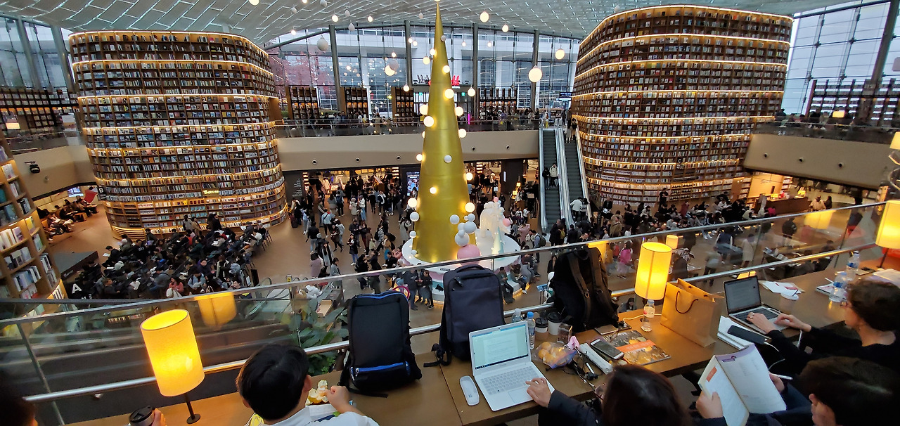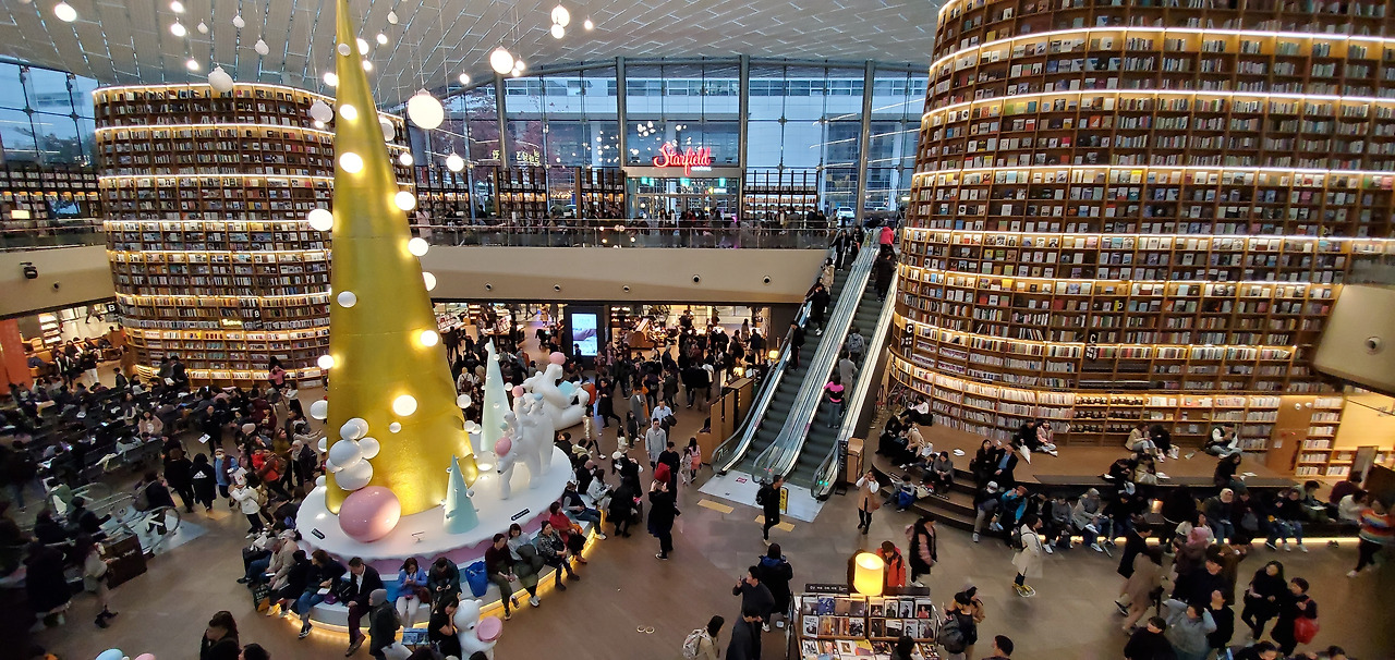 세달전 한국 방문에서 처음 와본 별마당 도서관이 다시 보고 싶었다. 비가 와서인지 더욱 많은 사람들로 붐비고 있었는데 많은 이들이 나같이 다른 나라에서 온 관광객들이었다.