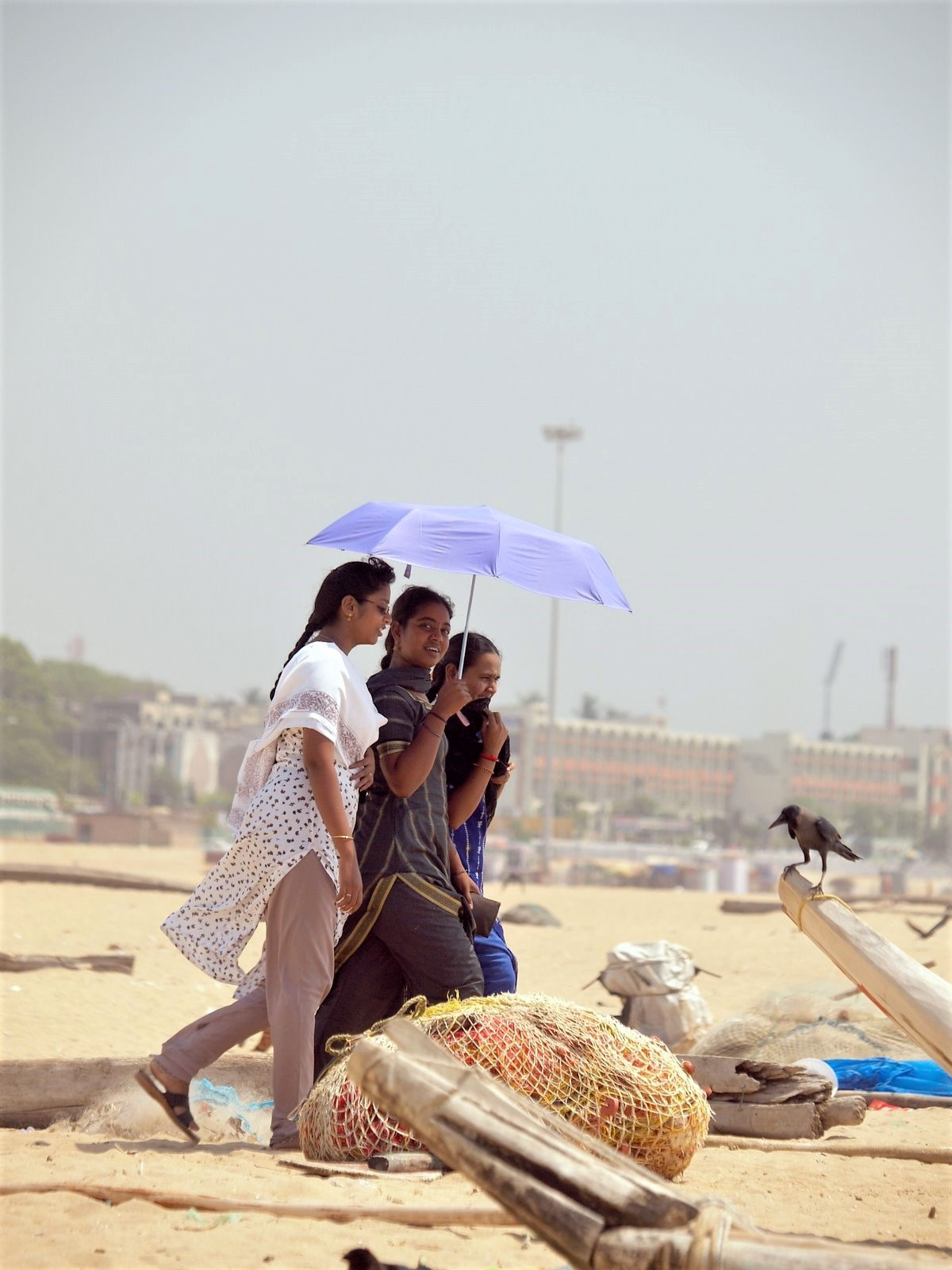 이곳 첸나이의 마리나 해변 바로 뒤에 위치한 여자대학에서 잠시 쉬러 나온 학생들이다. 어린 나이지만 귀족 집안의 자제들인 듯, 몸가짐이나 미소에서 귀티와 우아함이 넘치는 학생들이 많았다.