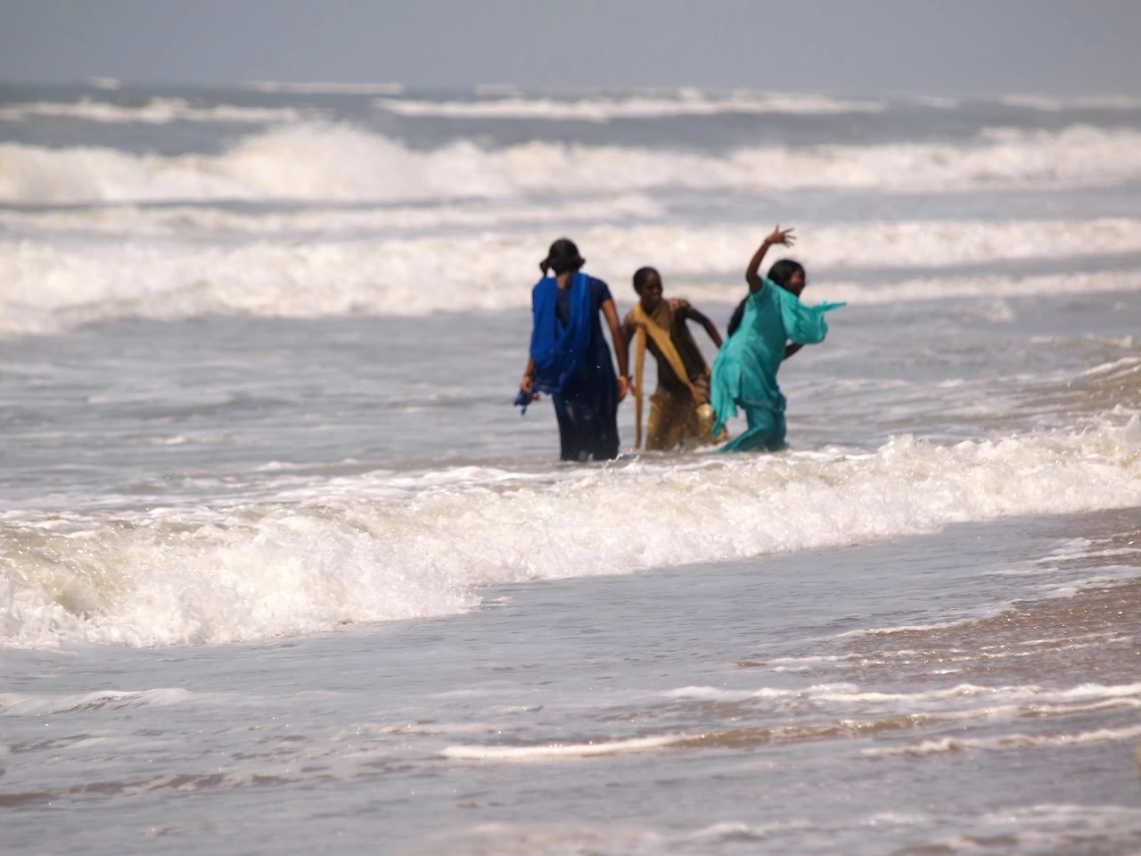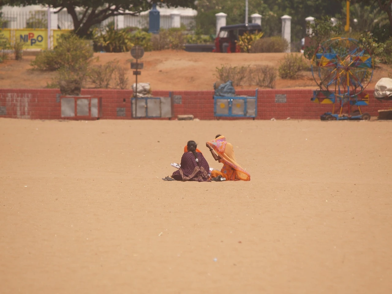 섭씨 40도가 넘는 해변의 熱沙 위에 아름다운 사리를 휘날리며 앉아 쉬는 학생들. 가부좌로 앉아 허리를 곧추 세우고 있었던 긴 머리의 연주황색 사리의 소녀는 그 자태가 신비할 정도였다.