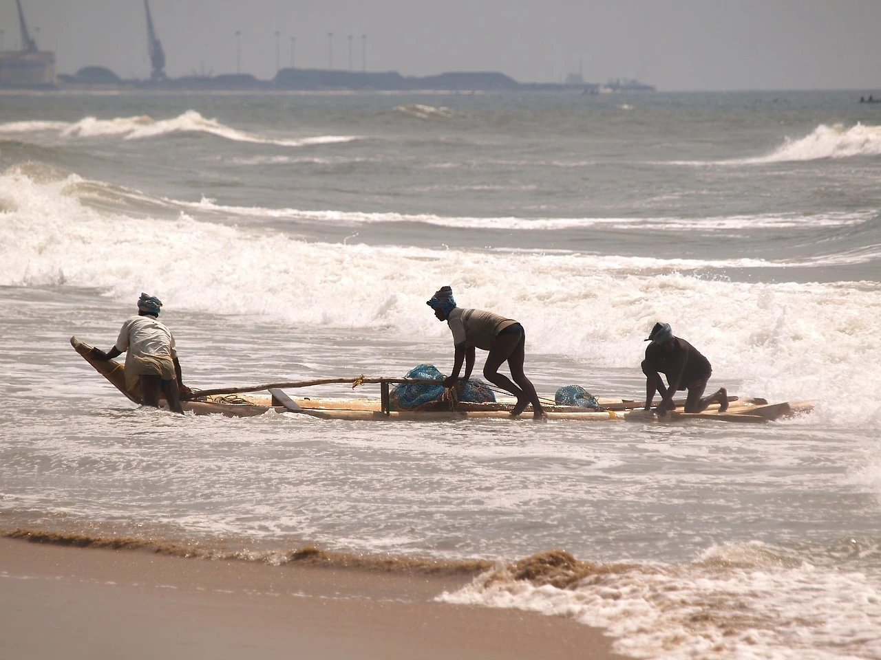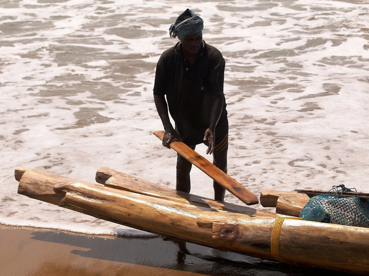 신밧드는 바로 저런 서너 조각의 종려나무로 만든 통나무 배를 타고 모험을 떠 났을 것이다. 저 팔랑거리는 돛대도 없는 조각배는 이 세 사람 어부의 삶의 현장이다. 날씬하지만 겨우 손바닥 만한 너비의 저 조각배에 앉아 이 거대한 인도양이 품고 있는 보물들을 건져 올린다. 일견 평화스러워 보이는 한낮의 뜨거운 바다는 저들에게도 평화로울 수 있을지. 너무나 간단하게 서너 조각으로 어어져 만들어진 배는 하지만 수천 년을 내려오는 이들만의 최적화된 산물일 것이다.