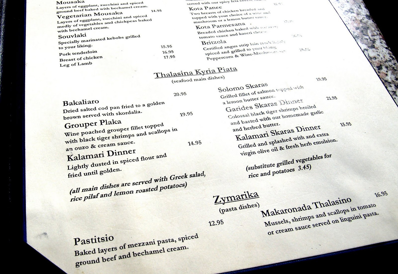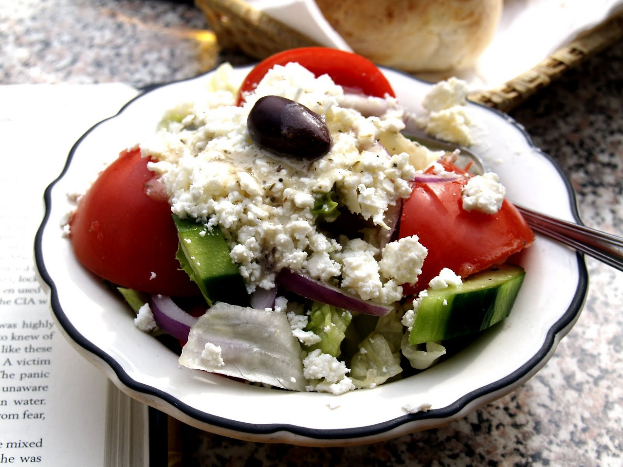 어느 나라에서건 샐러드와 적당한 드레싱을 맛보는 건 큰 즐거움이다. 어떤 요리를 주문하건 기본적으로 샐러드와 빵이 제공되는 그리스 음식이 마음에 드는 것도 이 때문이다. Greek Salad를 처음 대했을때 만족스러웠던 것은 첫째로 양이 풍성하는 것이었고, 우리가 즐겨 먹는 토마토와 오이가 큼직 큼직하게 들어가 있다는 것, 그리고 아무래도 지중해식이다보니 검은 올리브가 인색하지 않게 들어가 있다는 것이었다. 마지막으로 몸에 아주 좋은 올리브 유가 Extra Virgin 급으로 잔뜩 들어가 있다는 사실. 그리고 이 샐러드에 익숙해지면서 좋아졌던 것은 염소 젖으로 양치기들이 만들어 먹었다는 Feta Cheese 다. 마치 코코넛 속처럼 새하얀 염소젖 페타 치즈는 단백하고도 짧짤하면서 씹히는 맛 또한 질기지 않은 것이 치즈를 즐기지 않는 나도 좋아할 수 밖에 없었다.