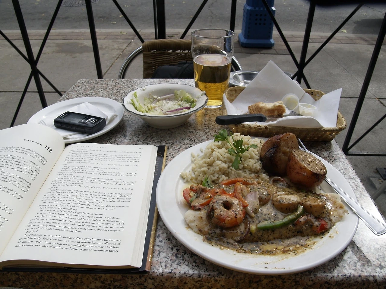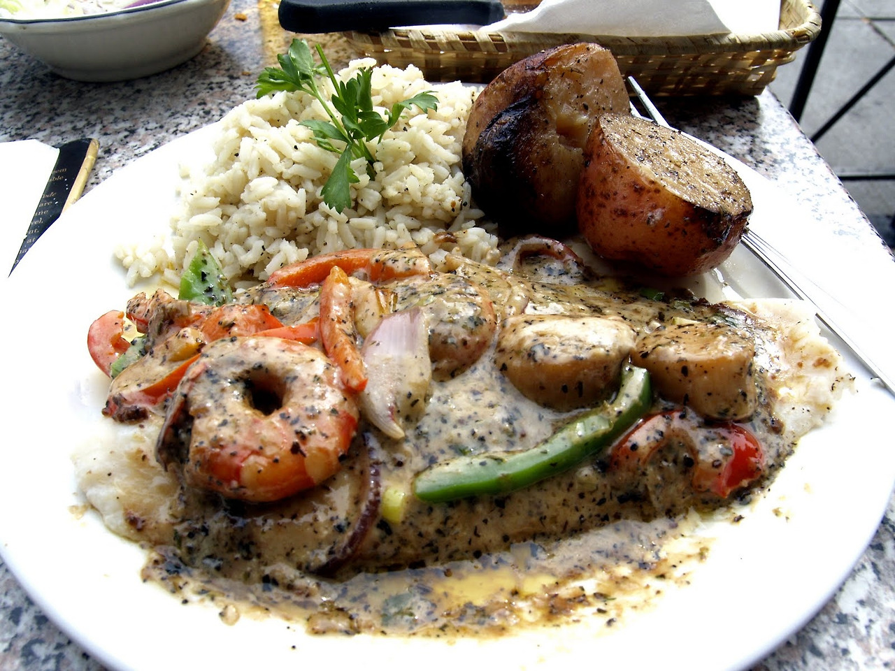이 번의 메인 요리는 지중해식 해산물 요리인 Grilled Grouper (농어과)와 Tiger Prawn, Clam 그리고 통감자 찜과 그리스식 밥 이다. 소스에 들어간게 뭐가 그리 많은지 오만가지 맛이 다 났고 많이 짭짤했지만, 그 Grouper 란 놈이 어찌나 부드럽고 맛있던지.. 입에서 그렇게 스르르 녹아 내리는 생선은 처음 먹어봤다. Mahi Mahi 정도가 부드러웠던 것 같은데 이 Grouper에겐 상대가 되질 않았다. 다른 곳에서도 같은 생선을 먹어봐야 되겠으나 이 집이 특별히 요리를 잘하는 것일수도 있겠다.
