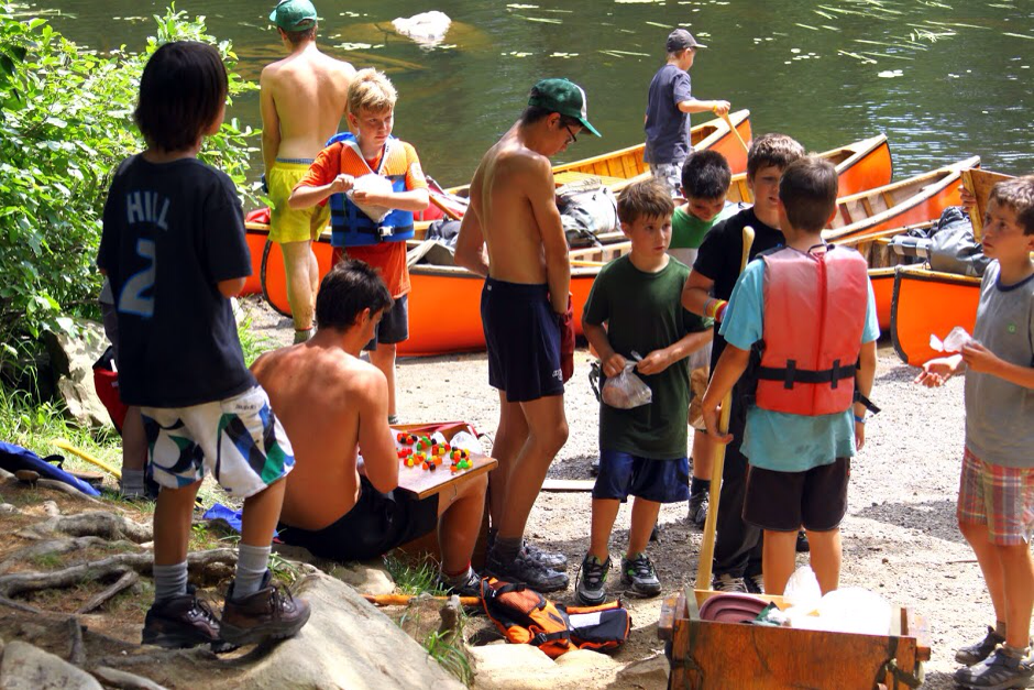카누와 장비를 체크하고 아이들을 통솔하는 캠프 조교들의 바쁜 움직임이 있었고..