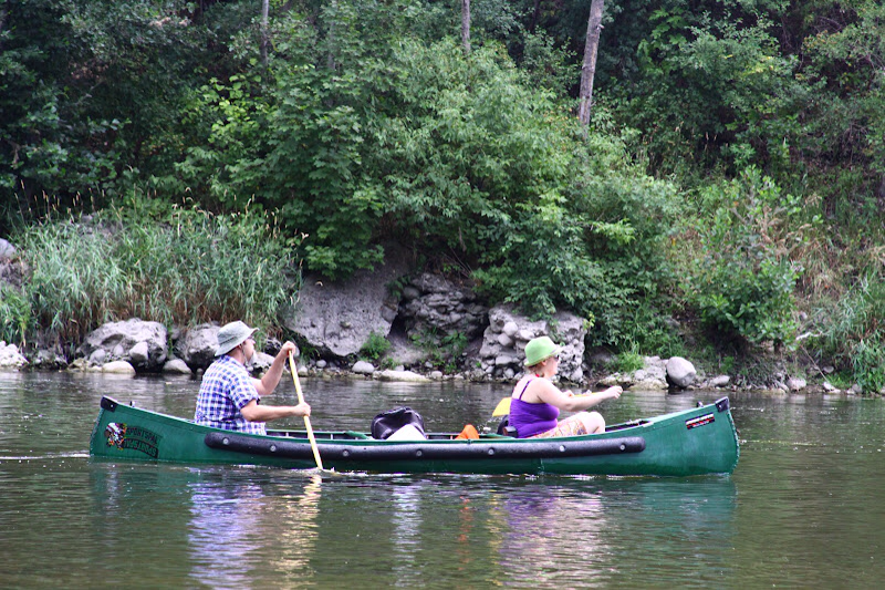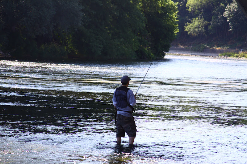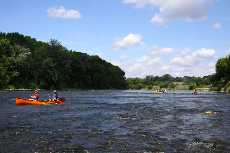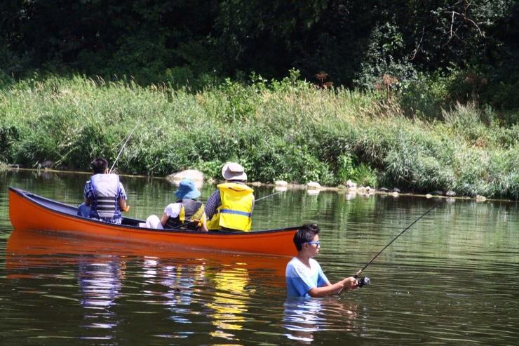 허벅지에서 가슴까지 물에 잠기면서 낚시를 하는 사람들이 있었던 이곳에서 잠시 카누를 강가에 정박시킨 채 샌드위치와 커피로 점심을 해결했다.