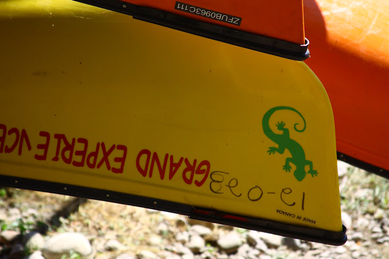 따사로운 햇살 아래의 노랑 카누에 찰싹 붙어 있는 초록색 게코 스티커. central america의 한 호텔 방 천장 구석에 붙어 새소리를 내며 울던 그 게코(gecko) 도마뱀이 떠올랐다. 오늘의 카누 트레일이 즐겁지만 뭔가 짓궂은 방향으로도 흘러가겠군 하는 전조적 느낌에 난 괜한 미소가 떠올랐다.