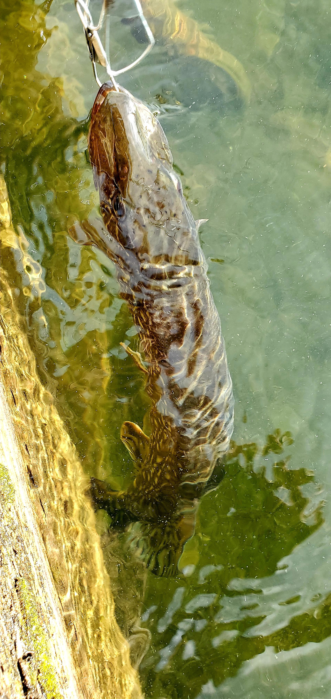 작년 5월 건너편 아주 큰 호수에서 낚인 거대한 파이크. 알고 지내는 동네의 젊은 친구가 낚은건데 이날 내게 사진을 보여준 거다. 이 몬스터는 바로 호수로 돌려 보냈다 했다. 도데체 말도 안되는 크기지 않은가. 녀석의 크기와 생김새 때문에 악어를 뜻하는 게이터(gator) 라는 별명으로도 불리기도 하는데 입이 좀더 뾰족한 gator fish도 동종 파이크 계열 이다.