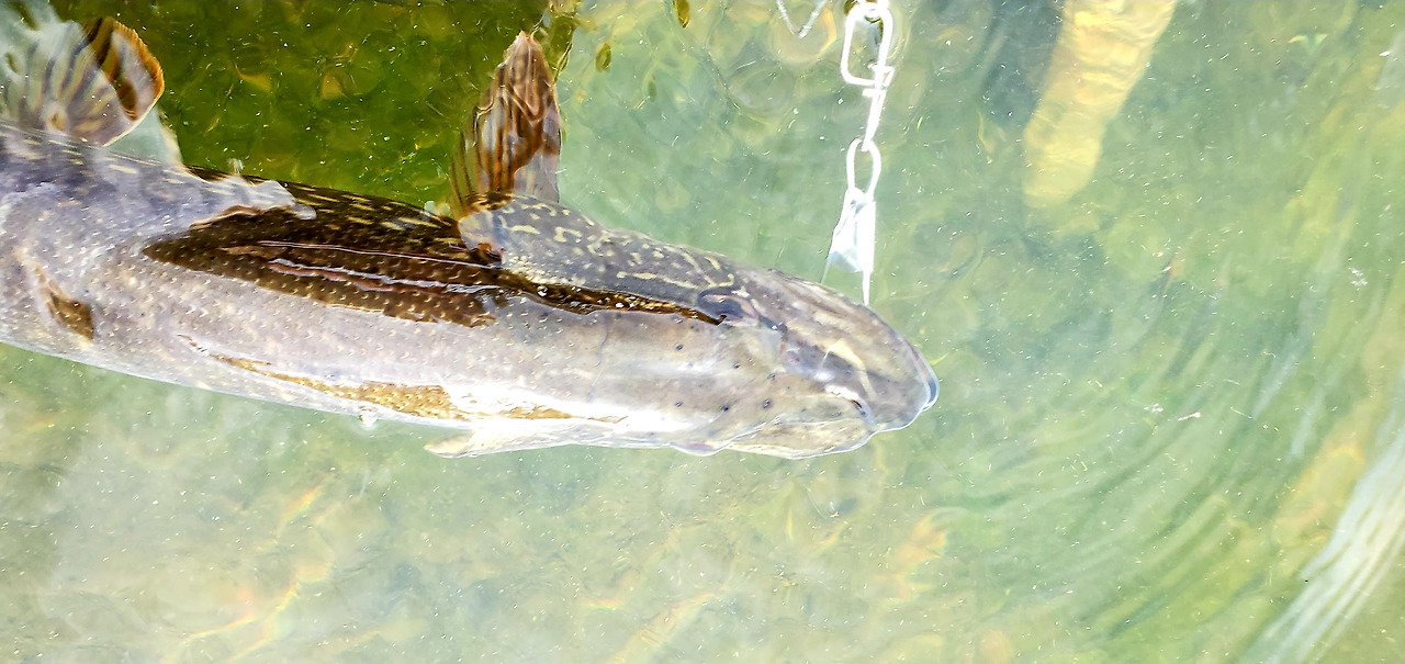 호수로 돌려 보내기 전 잠시 재갈을 물려둔 파이크 녀석을 사진에 담으며 녀석을 관찰했다.