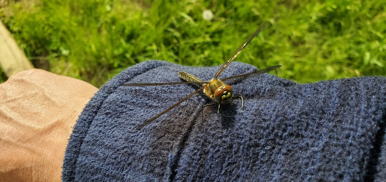 셔츠 소매에 날아와 앉은 잠자라는 내가 사진을 찍거나 심지어 날개를 쓰다듬을때도 날아가지 않았다.