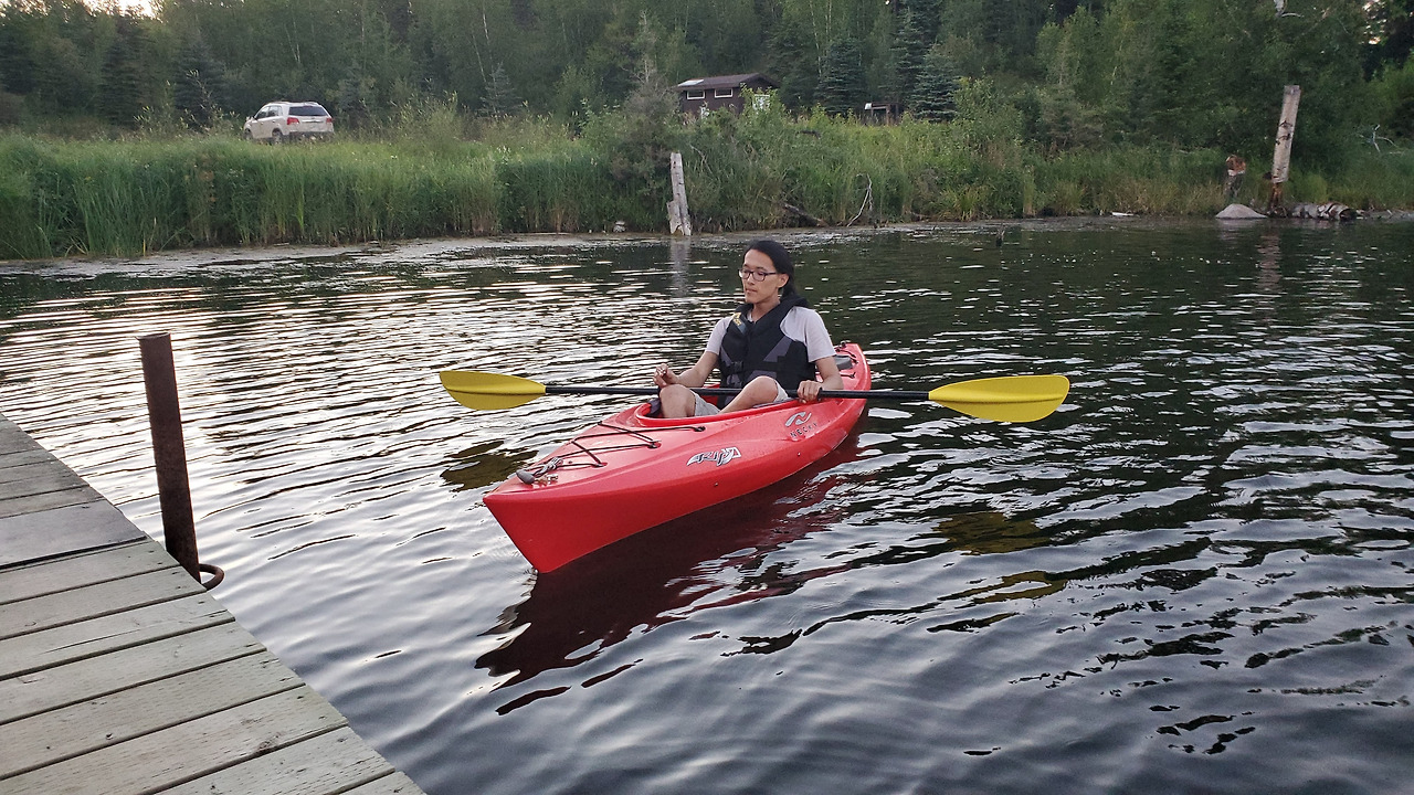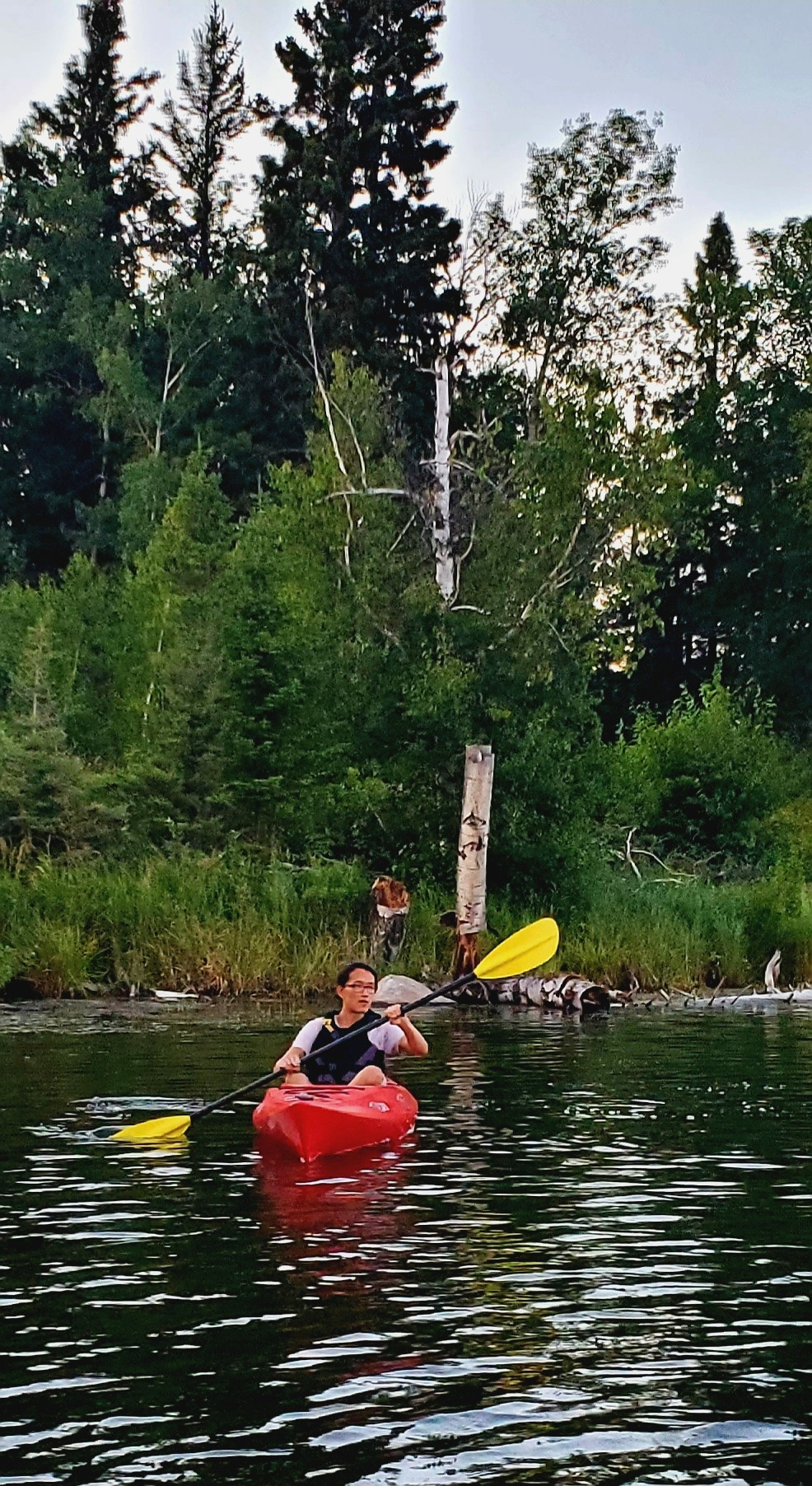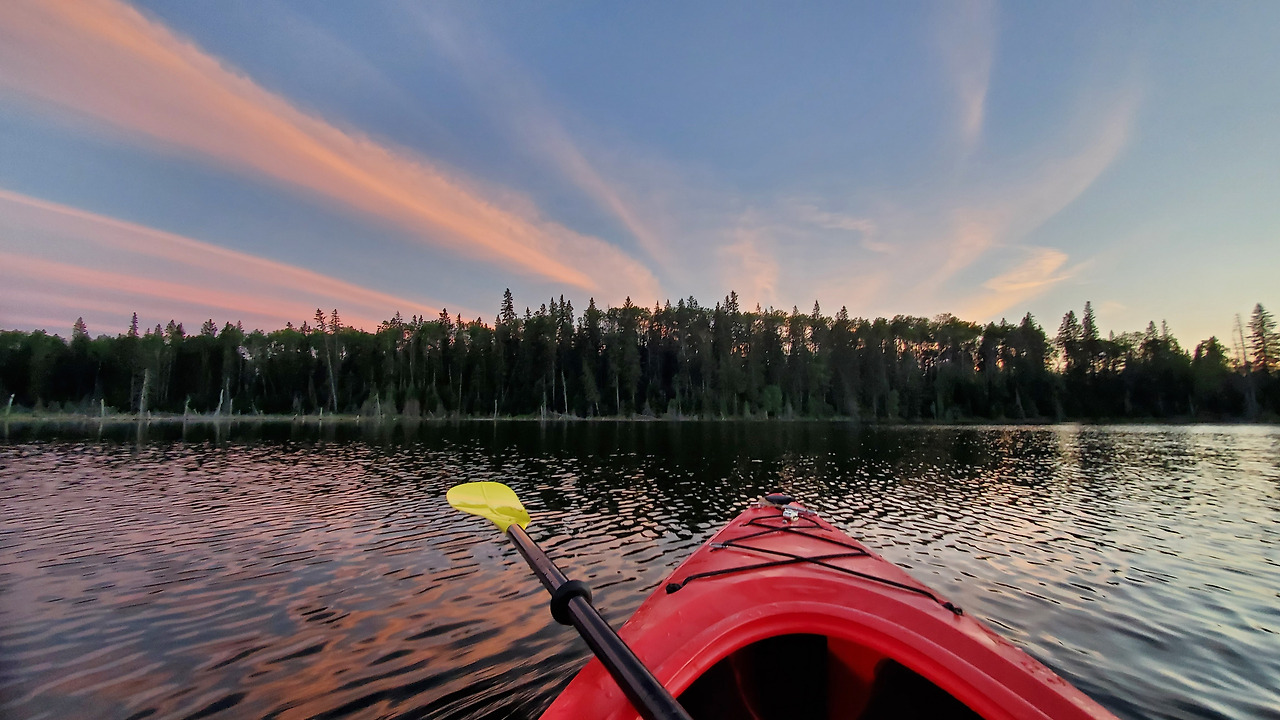 바람도 없는 고요한 호수위를 글라이딩 해가는 카약킹은 최적의 친생태 레져 활동이다. 오염을 전혀 발생시키지 않음 물론, 물밖으로 나와 있는 수생 식물들도 전혀 다치게 하지 않으며 나만의 힘으로 매우 자연스러운 속도로 호수의 모든 디테일을 접할수 있는 캬누 타기, 카약 타기는 우리 가족이 가장 선호하는 야외 활동이 된지 오래다. 이 역시 캐나다 가족의 흔한 일상이다.