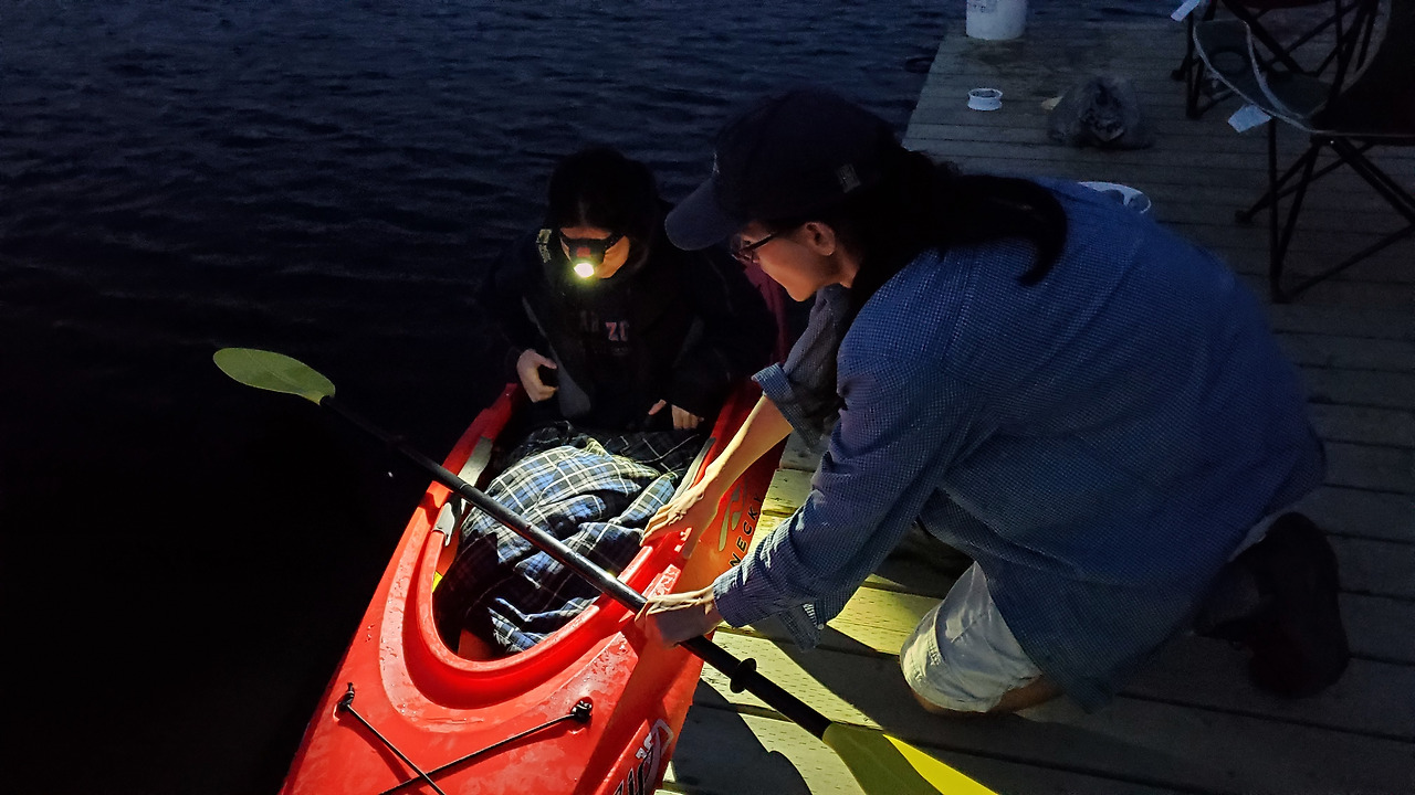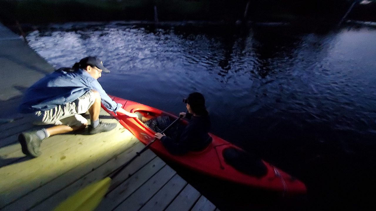 야간 카약킹을 위해 LED 헤드 랜턴을 가져온 우리는 달도 안뜬 캄캄한 호수에서의 패들링을 한껏 만끽할수 있었다.