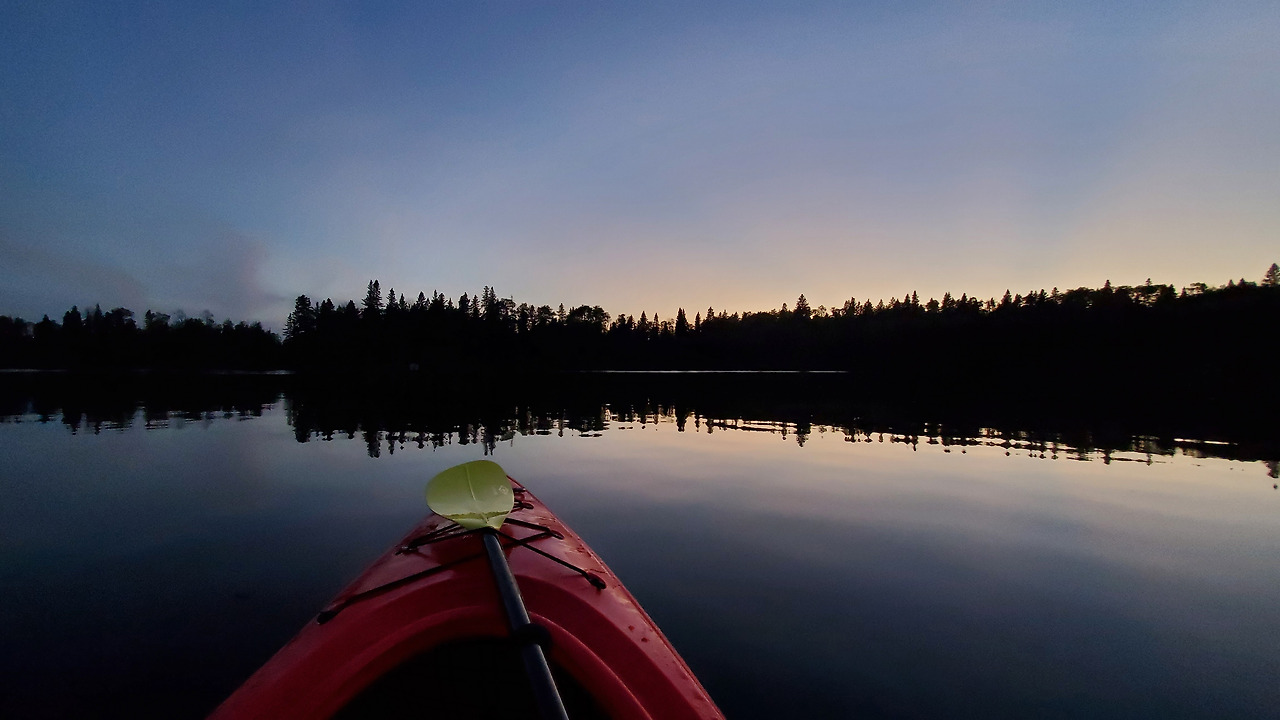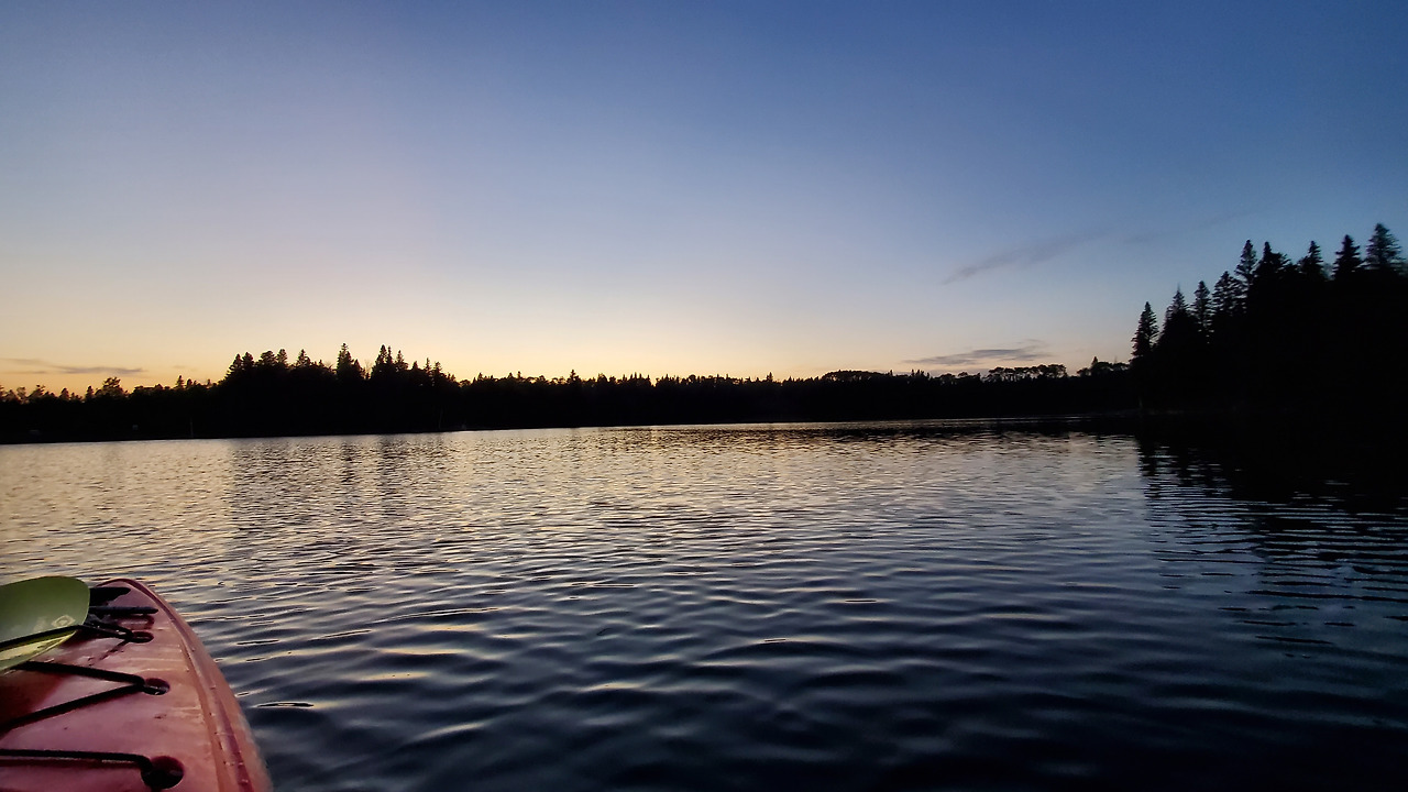 아들 다음으로 내가 카약에 올랐는데 마침 은은한 노을이 펼쳐지고 있었다.