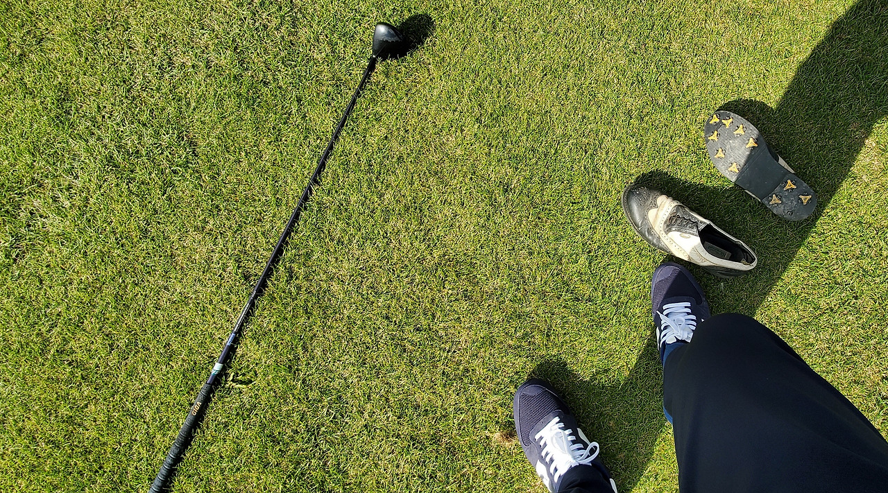 첫 두홀에서의 드라이버 스윙 시 자세가 좀 불안한듯 싶었는데 신발을 보니 골프 슈즈로 갈아 신지 않았던 것. 맙소사.. 그래도 페어웨이 가운데에 잘 떨어진 공을 바라보며 세컨드 샷 전에 기분좋게 갈아 신었다.