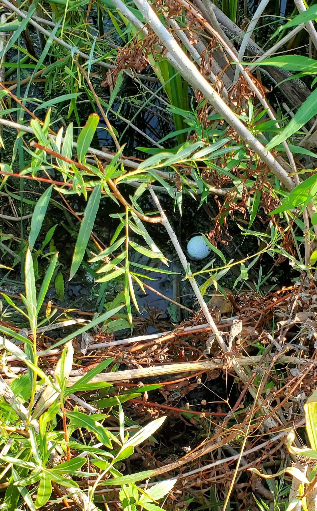 유일한 island green 인 이 홀에서는 볼이 그린에 떨어지긴 했으나 백 스핀 없이 연못으로 굴러 떨어졌다.