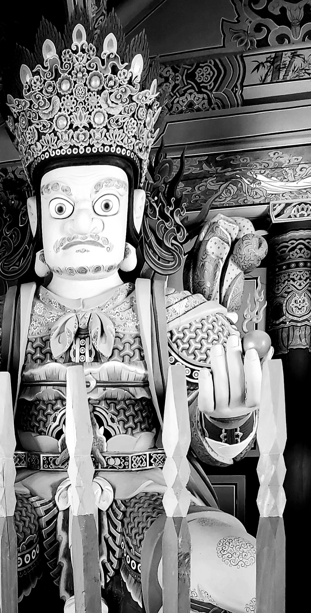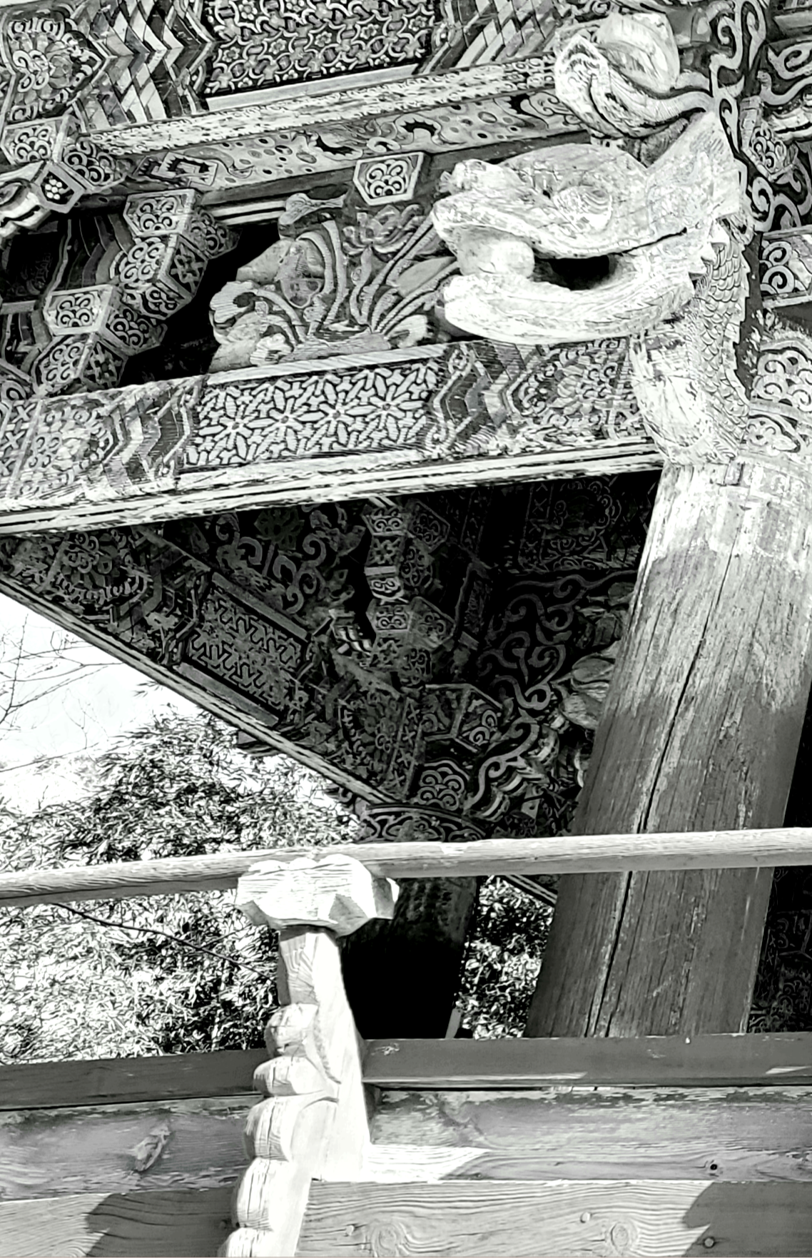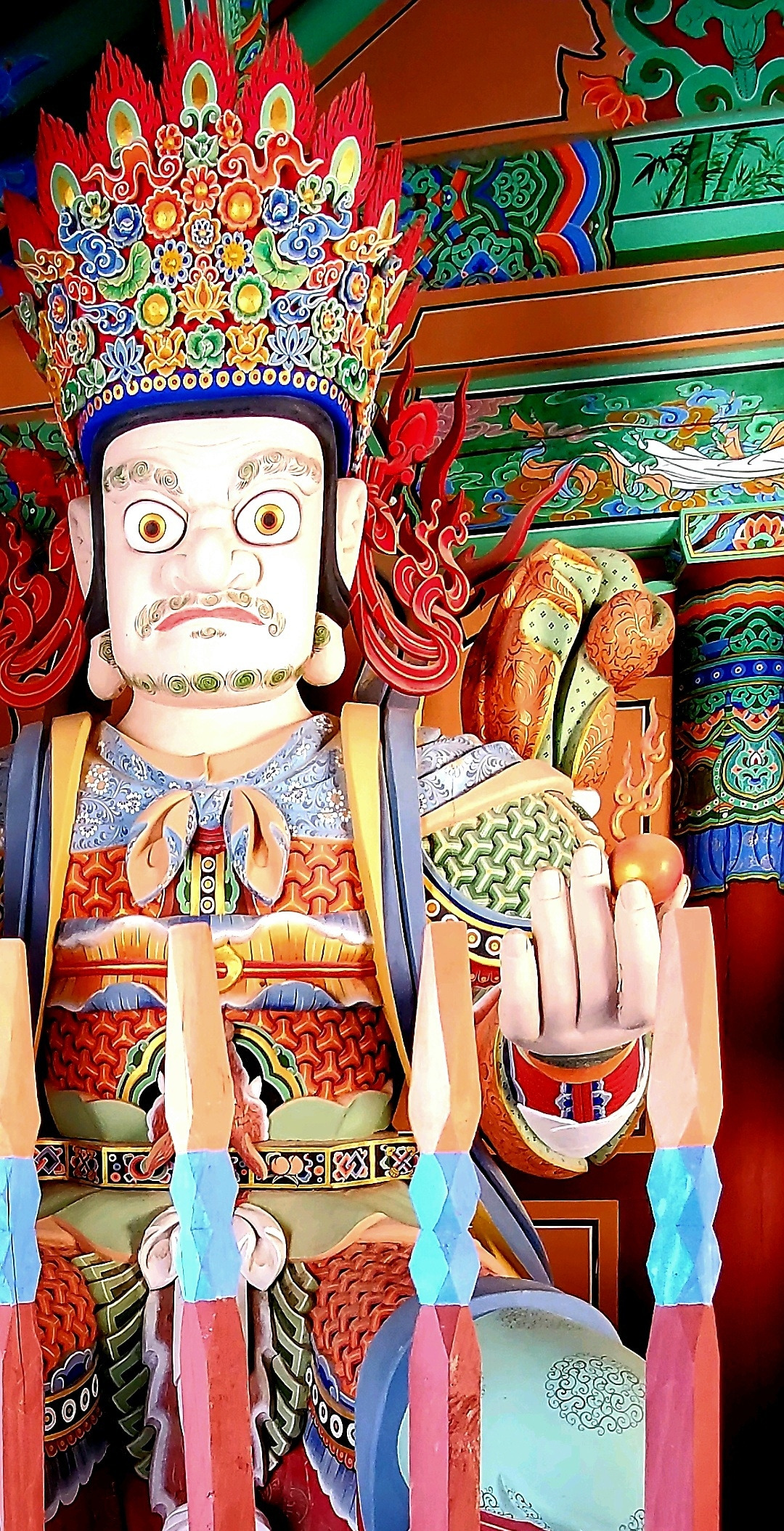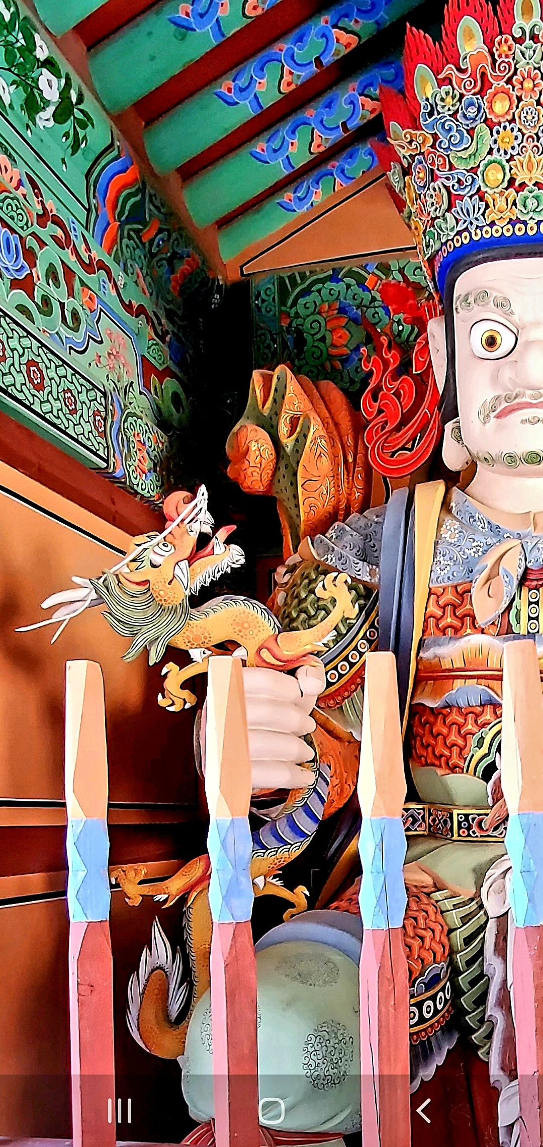 상상력을 마구 자극시키는 四天王의 형상은 엄청난 박력의 체구, 체구에 비해 섬세한 손놀림, 그리고 화려한 탱화 채색으로 인해 불교가 가지는 고요한 선적 분위기와 대척을 이루며 묘한 매력으로 다가온다. 사천왕문을 거치며 난 잠시나마 인간적 의미의 소박한 영적 샤워의 시간을 갖는다. 성당에 들어서 잠시 손가락 끝에 성수를 적시며 정화의 예를 갖추듯.