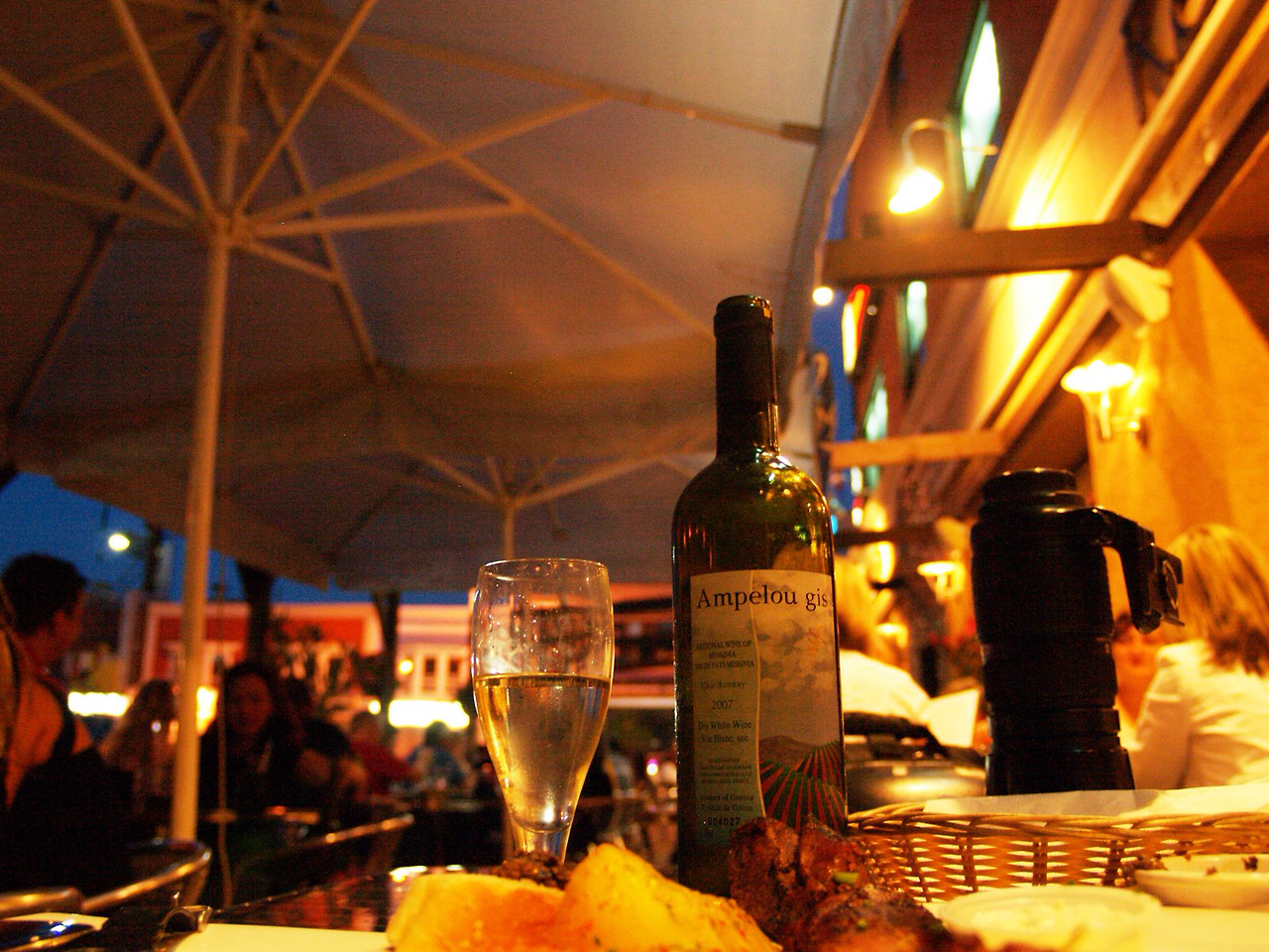 그리스 음식은 레스토랑의 야외석, 패티오에 앉아 시끌벅적한 가운데 즐겨야 제맛인것 같다. 새하얀 염소치즈인 페타 치즈가 가득 뿌려진 샐러드와 수블라키 양념의 고치 구이가 내 입맛에 맞고, feta cheese 가 웬지 화이트 와인과 더 잘 어울릴것 같아 차가운 샤도네이도 함께 하고.. 이때 유쾌하고도 수다스러운 웨이터들과 함께 하면 더욱 좋다. 히히