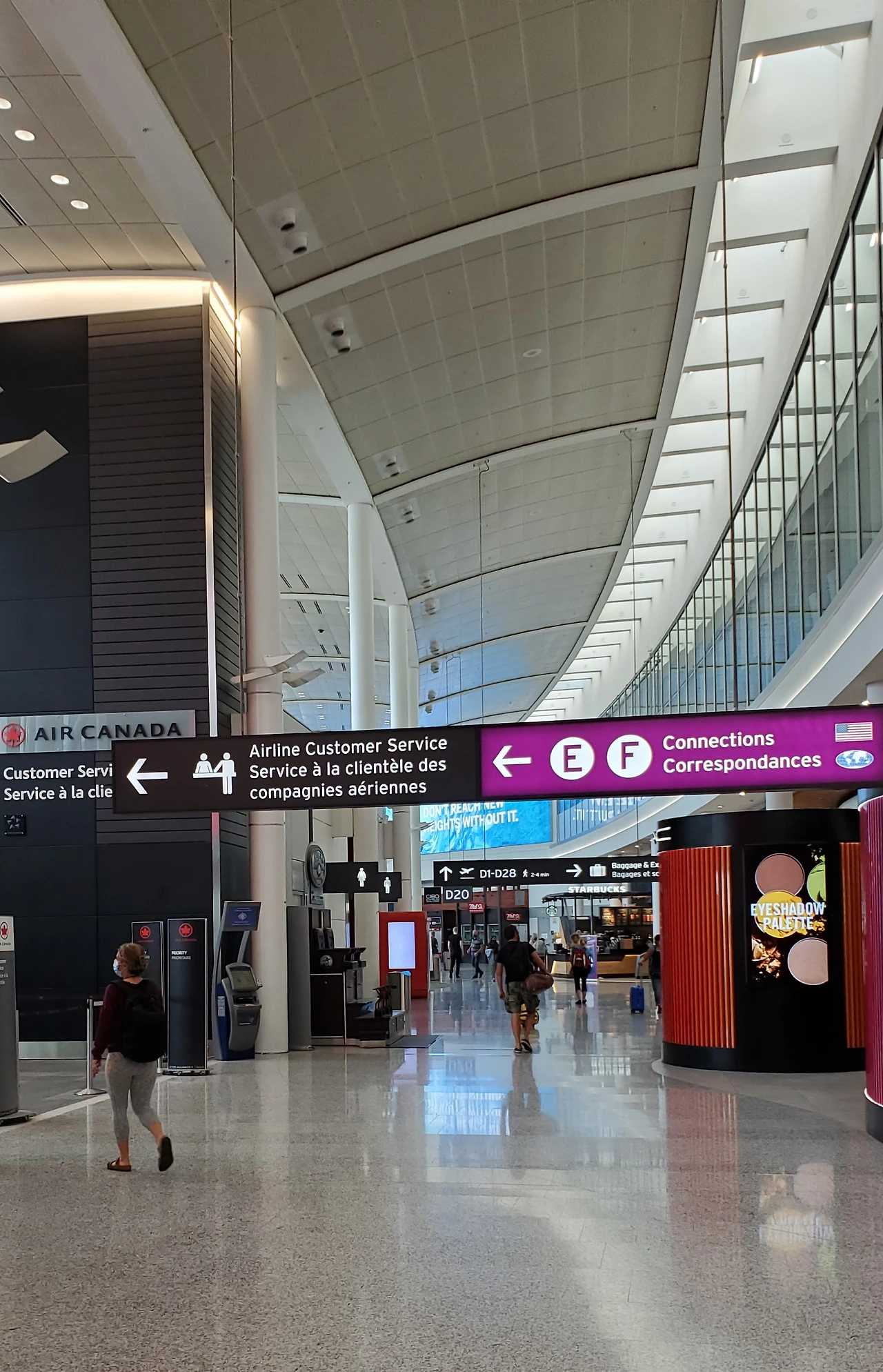 한산할줄만 알았던 캐나다 국내선 터미널은 주말을 즐기려는 인파로 벌써 북적이고 있었는데 2시간이나 일찍 공항에 도착했으나 수하물 처리와 보안 검색 등에 시간이 걸려 탑승시간에 겨우 맞춰 게이트에 도착했다.