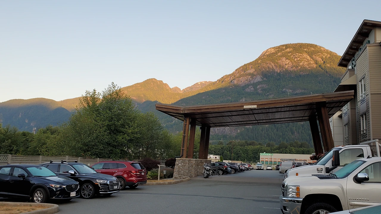 구름이 걸려있는 거대한 산봉우리가 바라보이는 Squamish 의 한 호텔에서 휴식을 취하며 내일의 whole day 래프팅 준비 중.It was an another long day.. 노는건 에너지 소모가 엄청나다. 잠이 쏟아진다.
