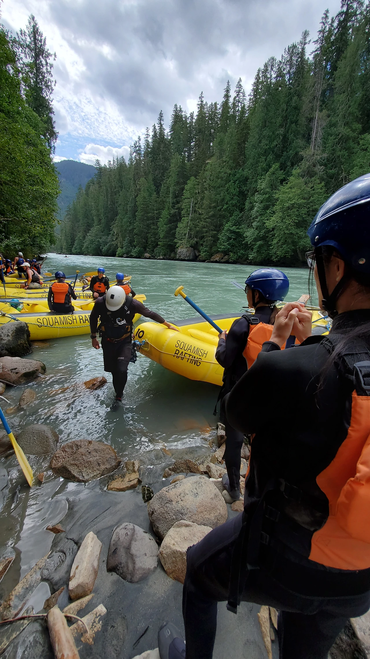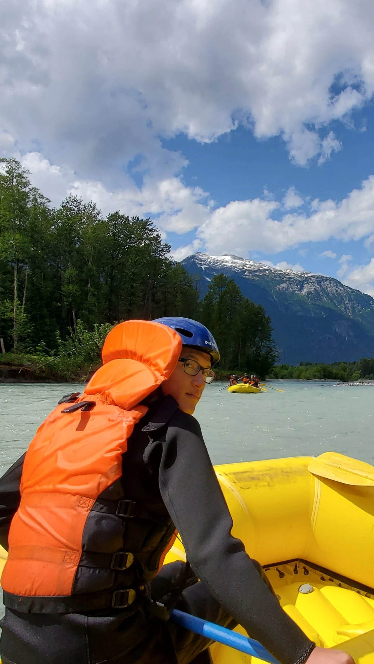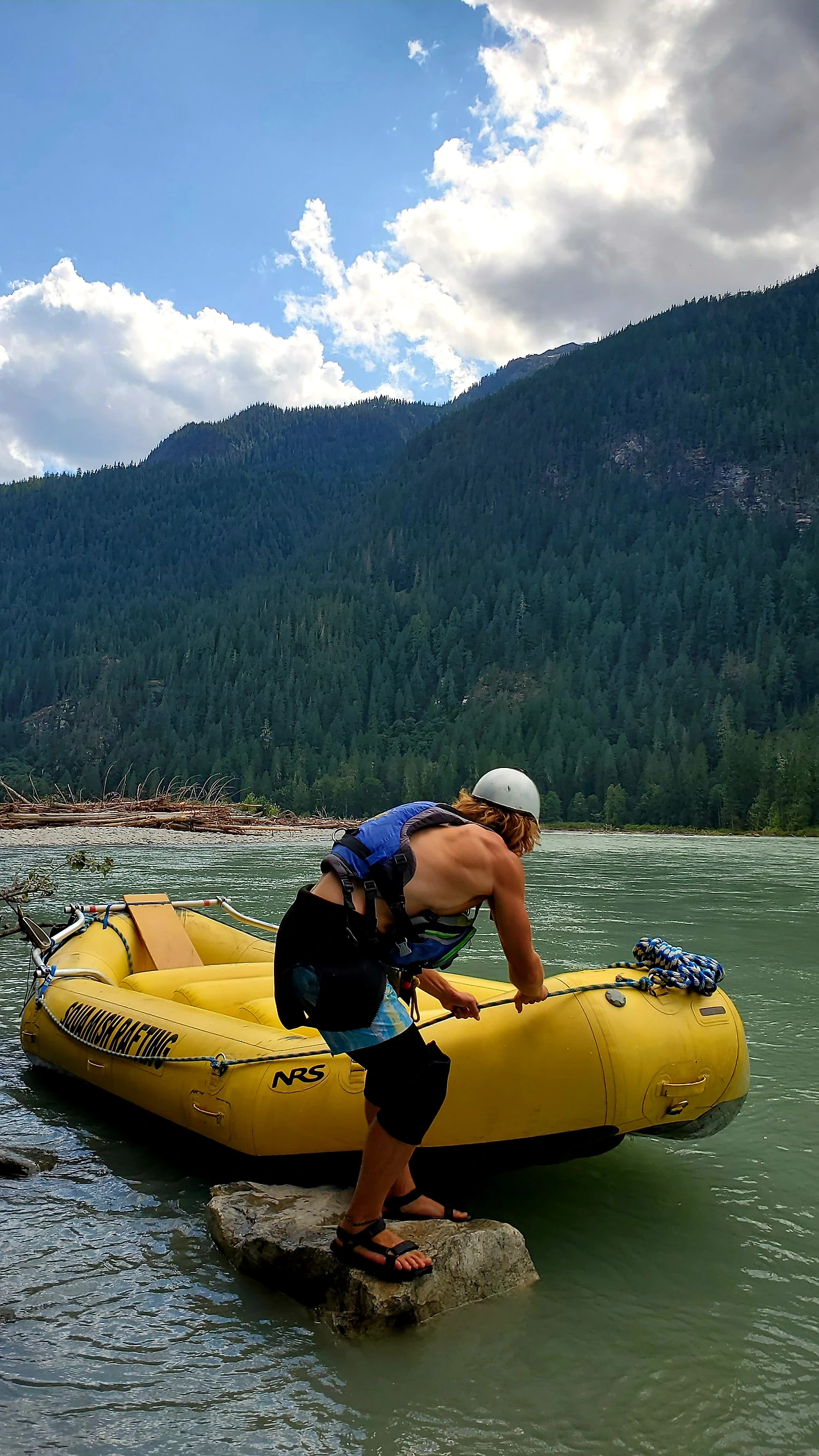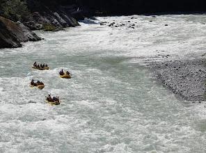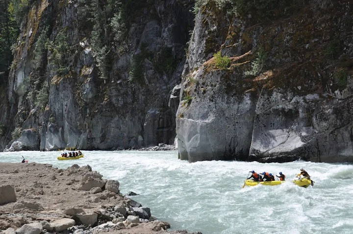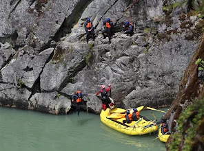 빙하가 흐르는 엘라호 강에서의 32 km 구간의 레벨 4 래프팅 프로그램은 하루 종일 걸렸다. 9시에 모인 참가자들은 입고 있던 옷을 거의 홀딱 벗고 wet suit 로 갈아 입어야 했다. all-in-one suit, wet jacket, rubber shoes, and helmet as well. 에고.
