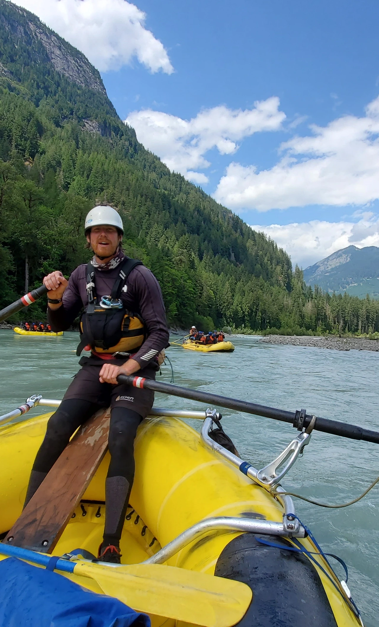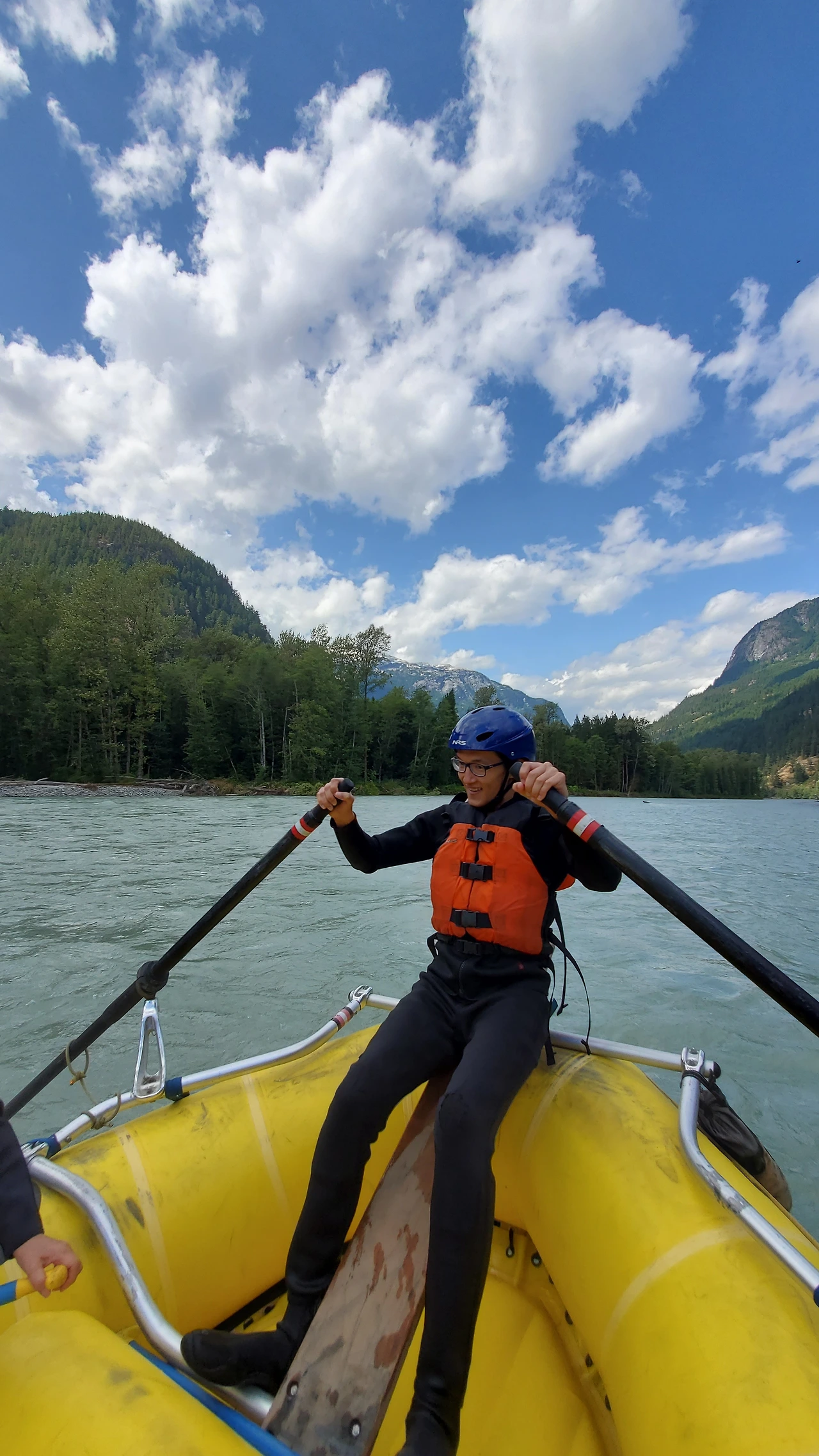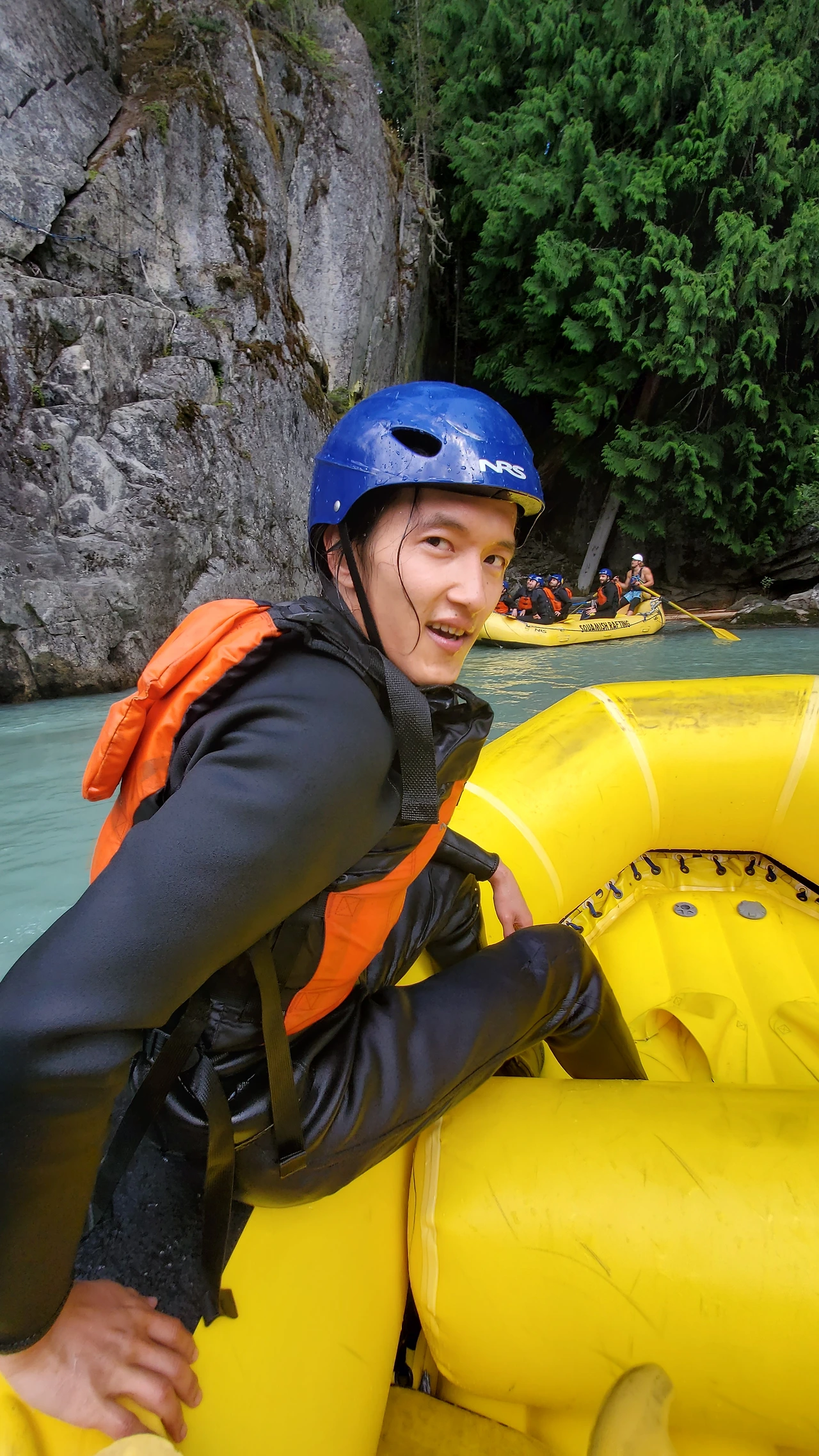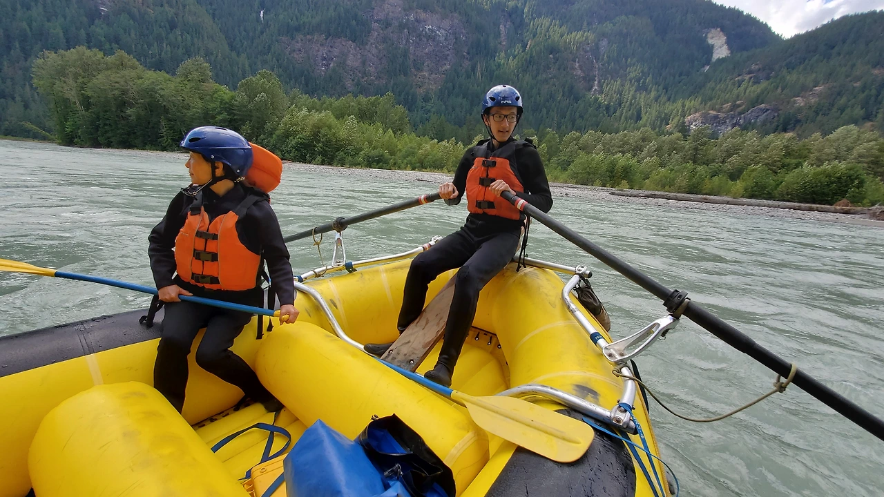 빙하가 흐르는 엘라호 강에서의 32 km 구간의 레벨 4 래프팅 프로그램은 하루 종일 걸렸다. 9시에 모인 참가자들은 입고 있던 옷을 거의 홀딱 벗고 wet suit 로 갈아 입어야 했다. all-in-one suit, wet jacket, rubber shoes, and helmet as well. 에고.