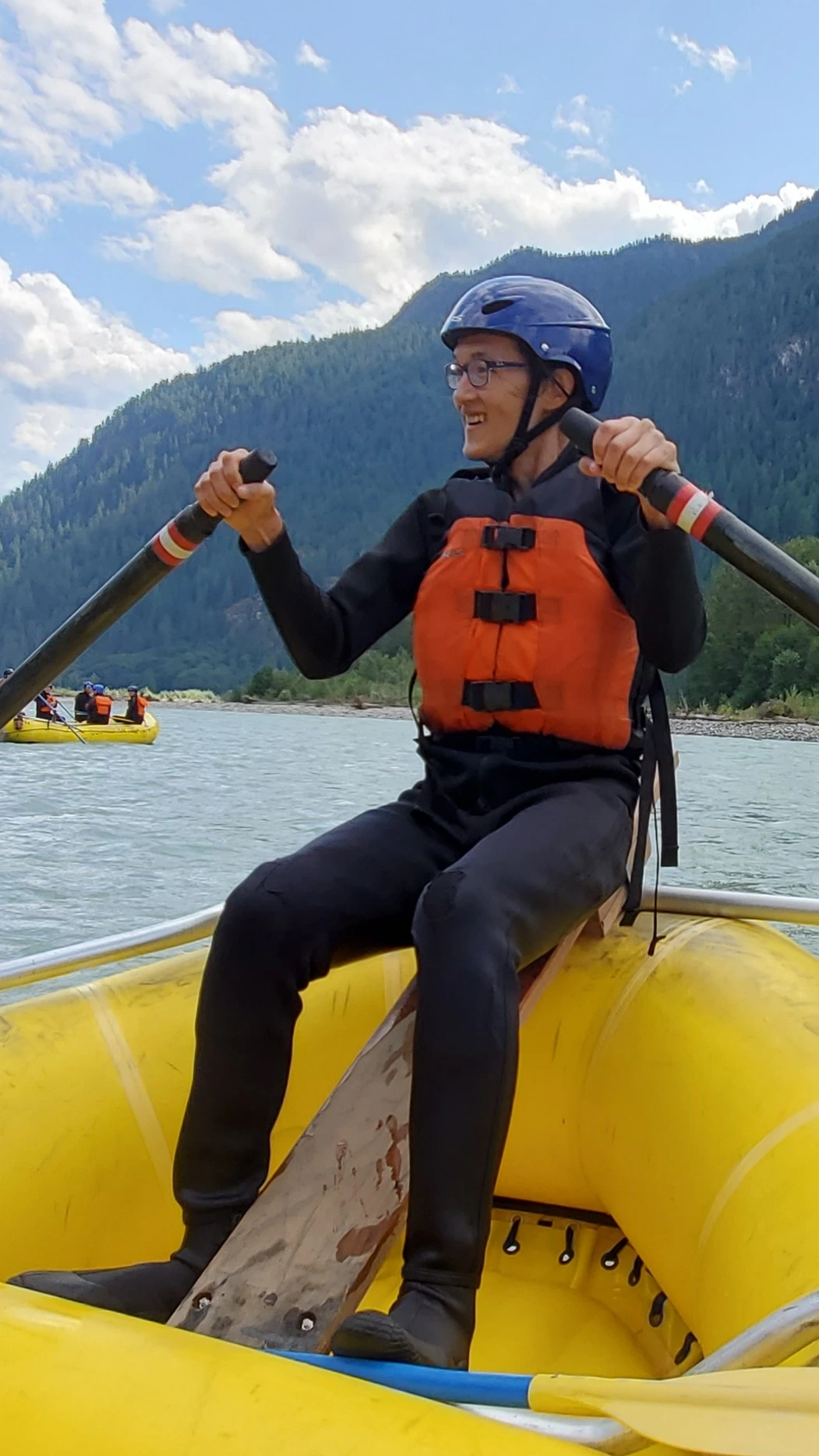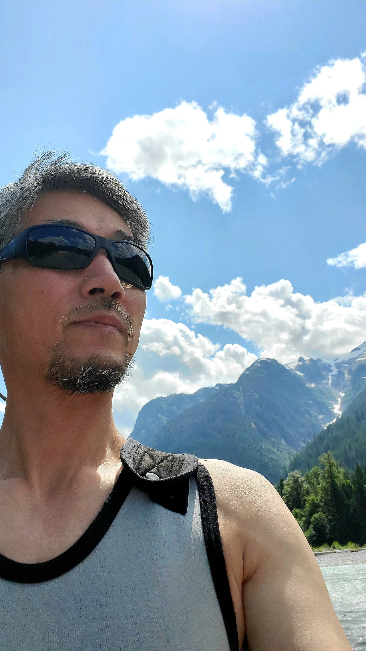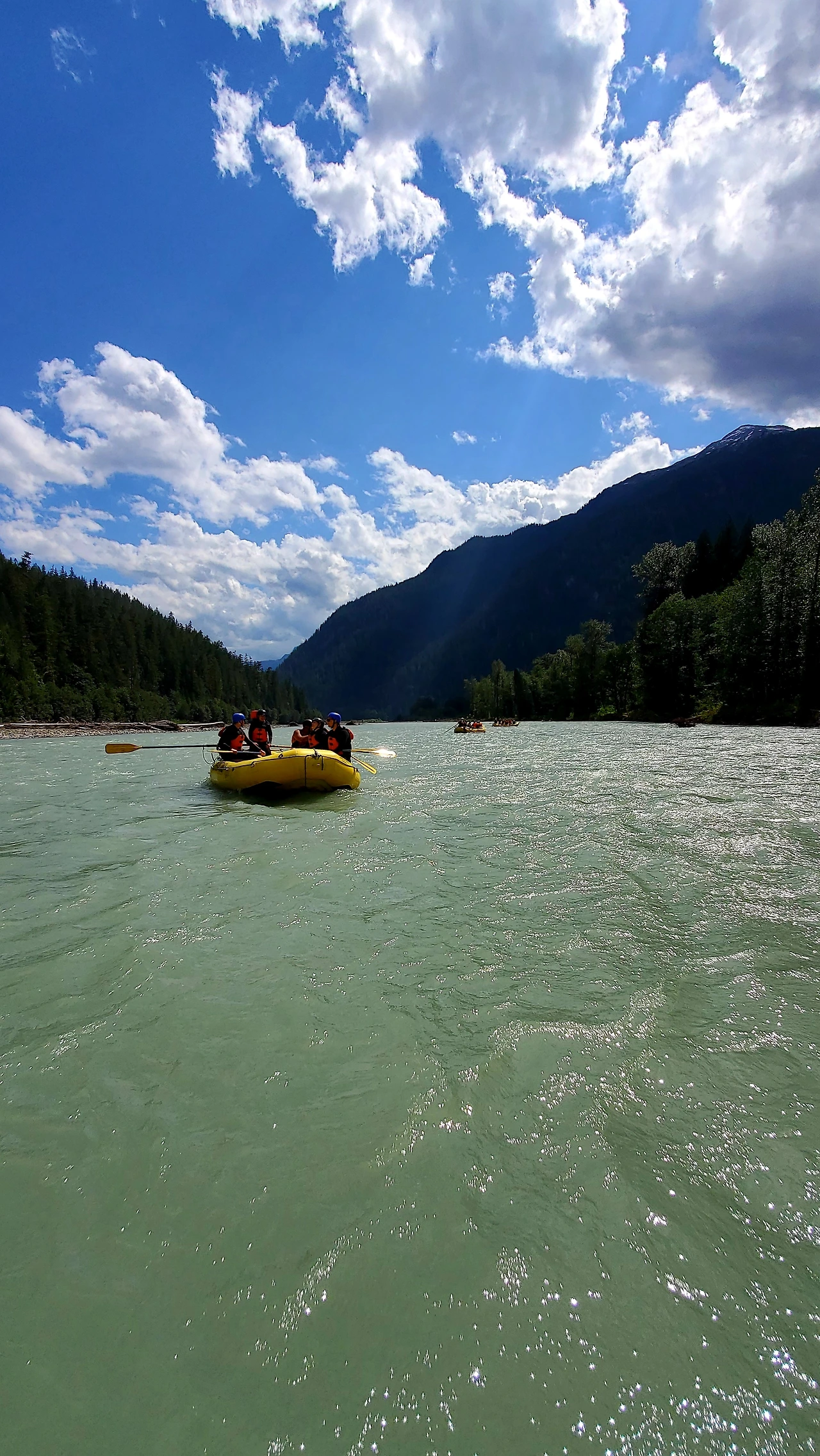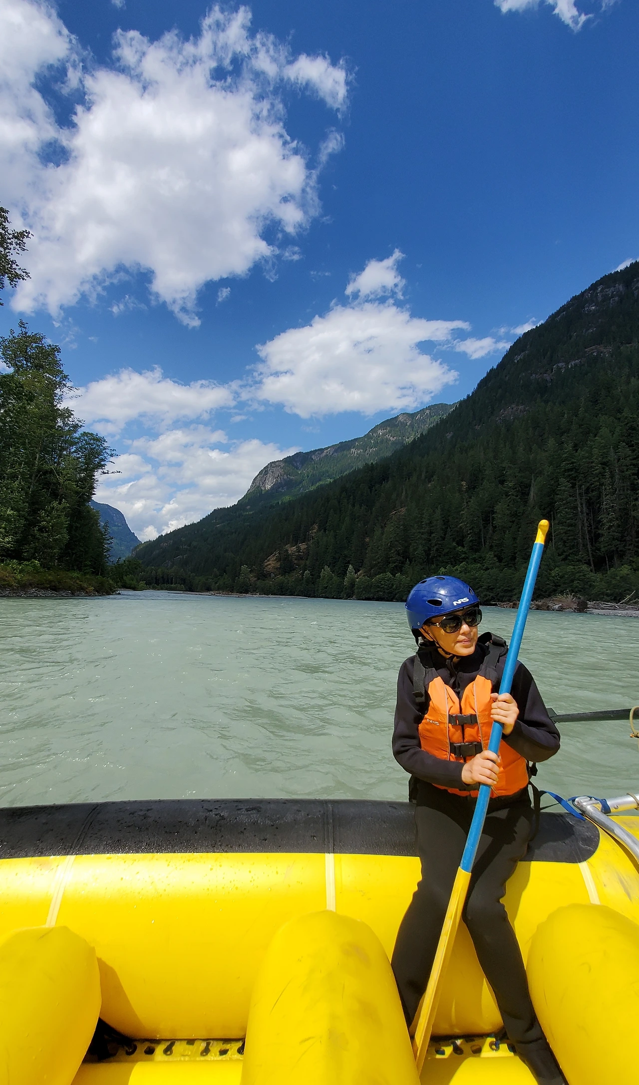 빙하가 흐르는 엘라호 강에서의 32 km 구간의 레벨 4 래프팅 프로그램은 하루 종일 걸렸다. 9시에 모인 참가자들은 입고 있던 옷을 거의 홀딱 벗고 wet suit 로 갈아 입어야 했다. all-in-one suit, wet jacket, rubber shoes, and helmet as well. 에고.