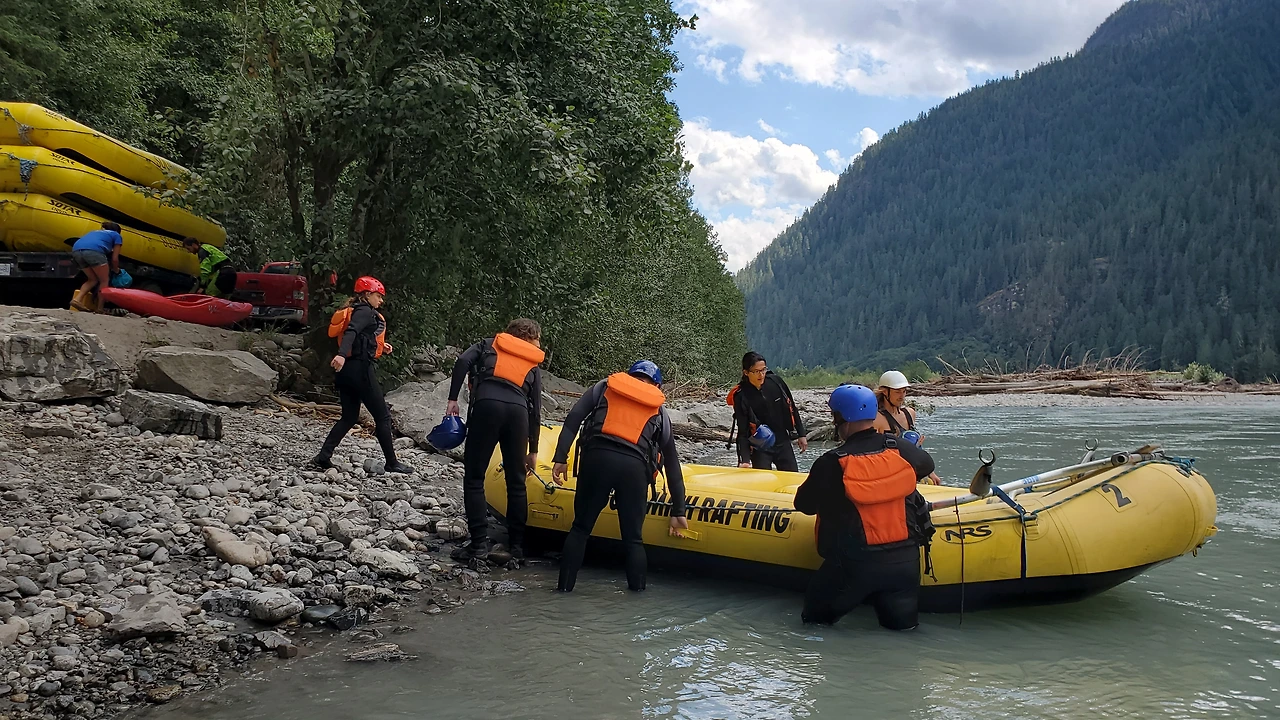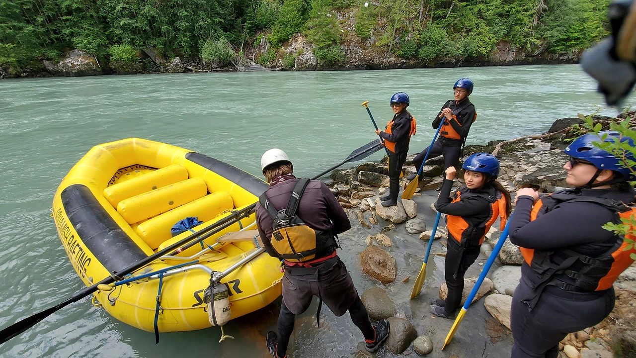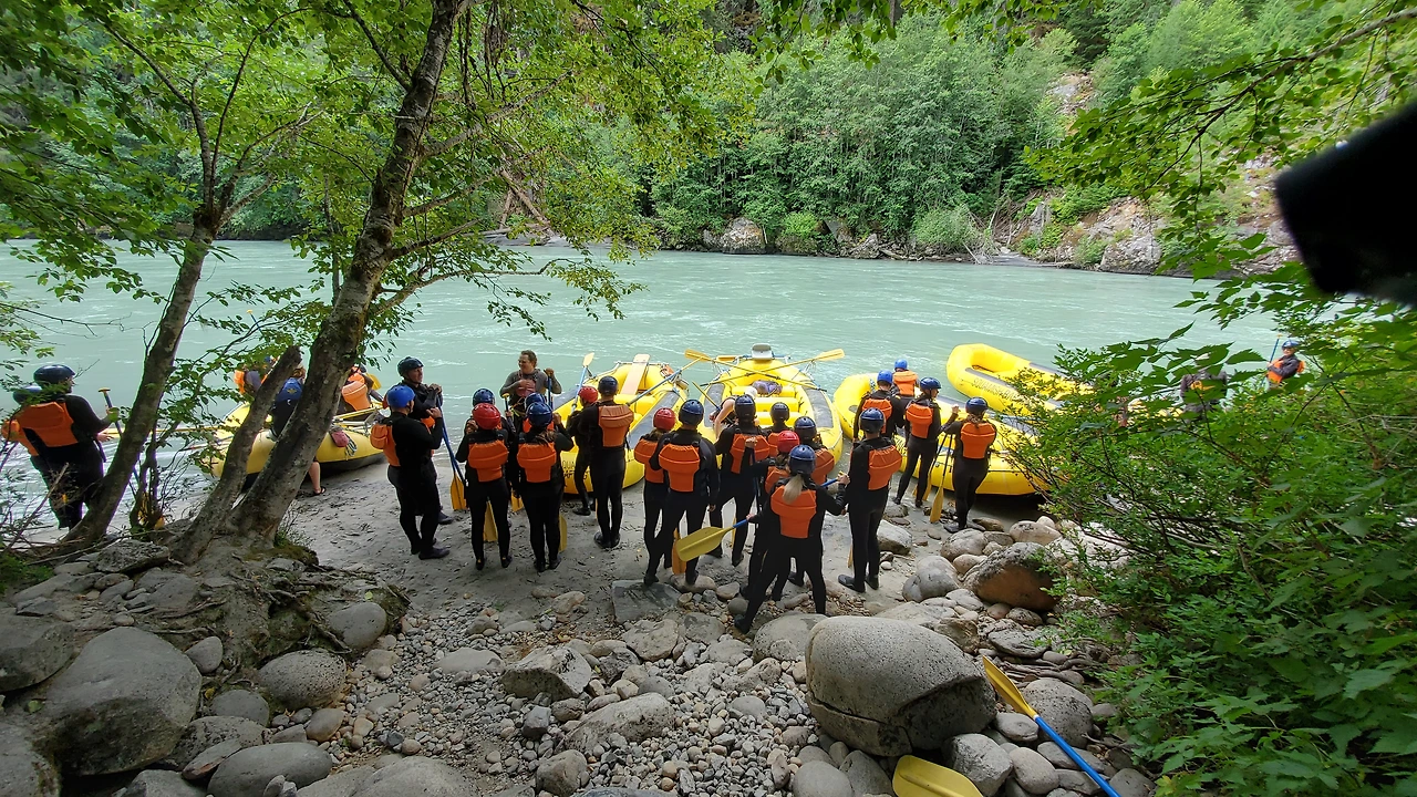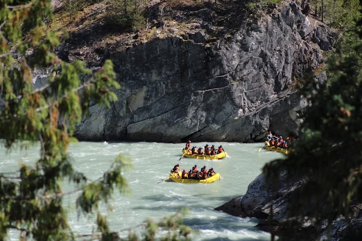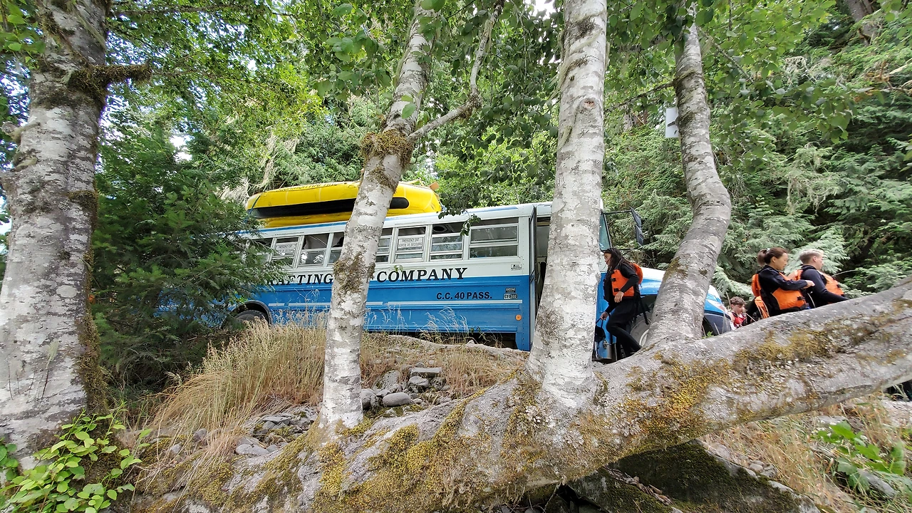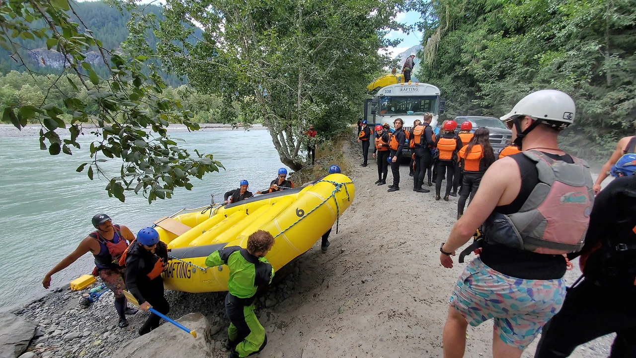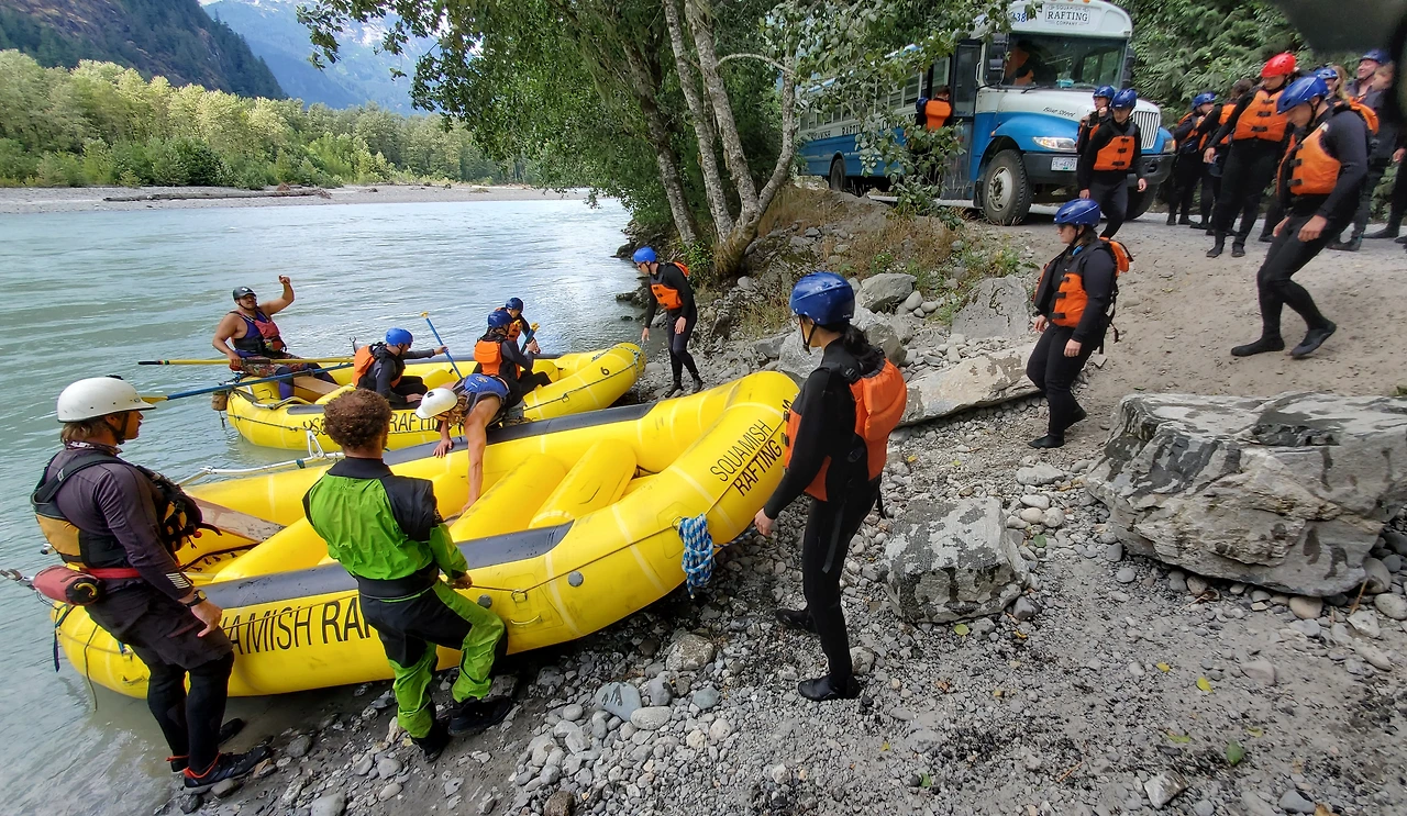 총 31명이 참가했는데 동양계 캐나디언은 우리 가족 셋 밖에 없었다. 십여명이 넘는 스탭들을 포함하여 오십여명 정도가 버스와 픽업 트럭에 타고 래프팅이 시작되는 엘라호 강 상류 지점까지 이동했다.
