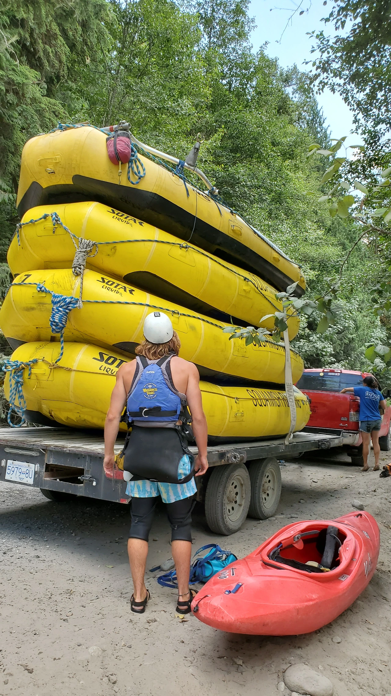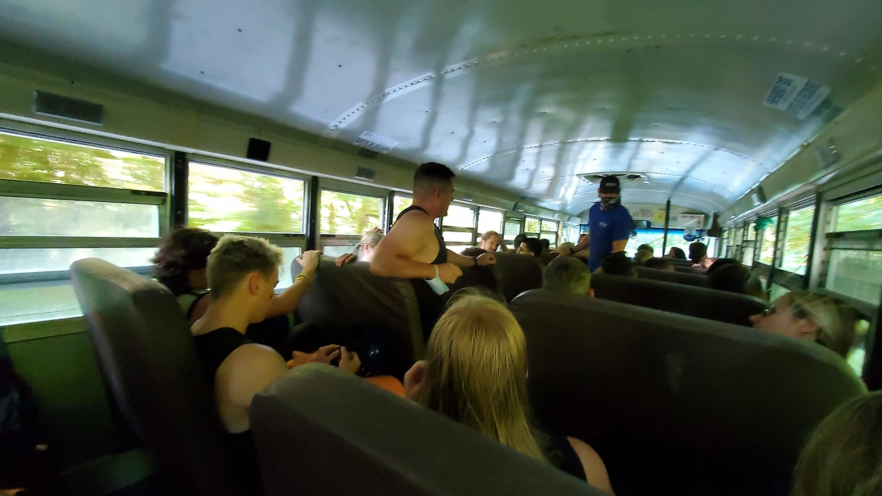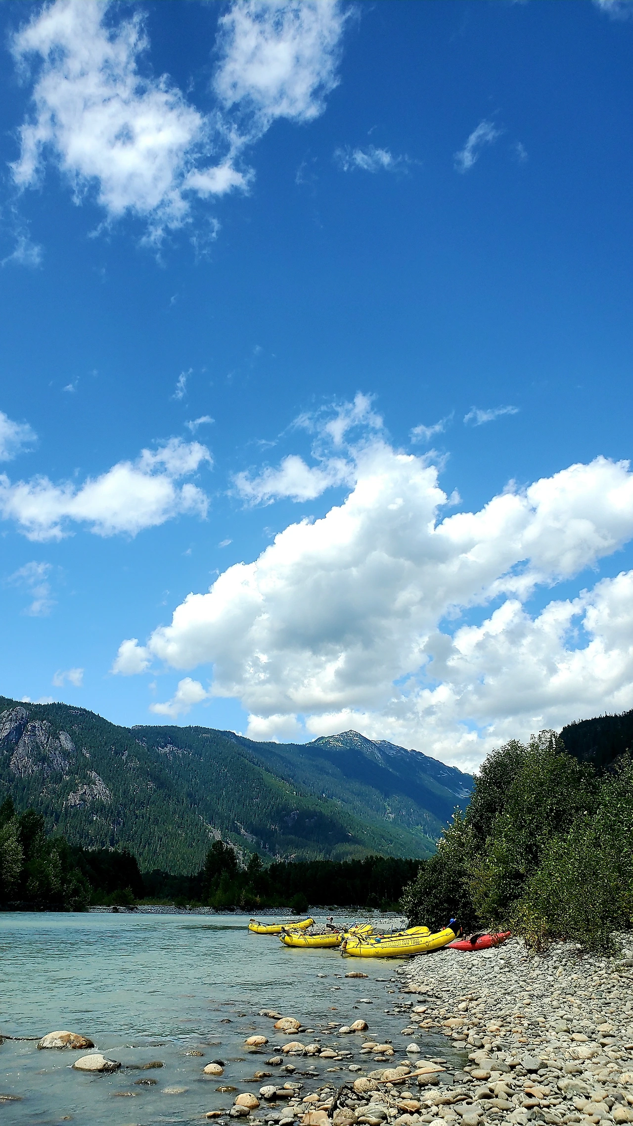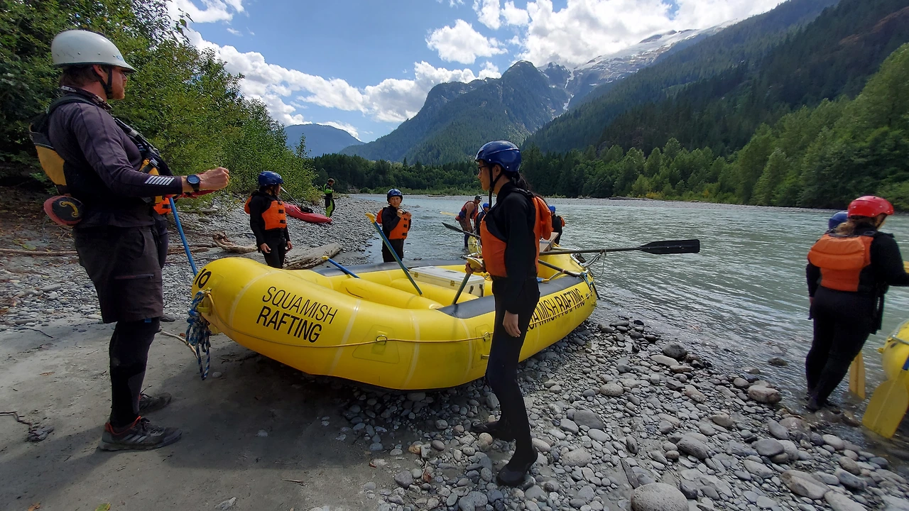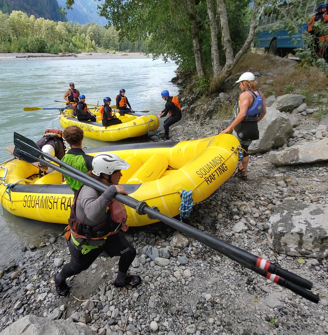 총 31명이 참가했는데 동양계 캐나디언은 우리 가족 셋 밖에 없었다. 십여명이 넘는 스탭들을 포함하여 오십여명 정도가 버스와 픽업 트럭에 타고 래프팅이 시작되는 엘라호 강 상류 지점까지 이동했다.