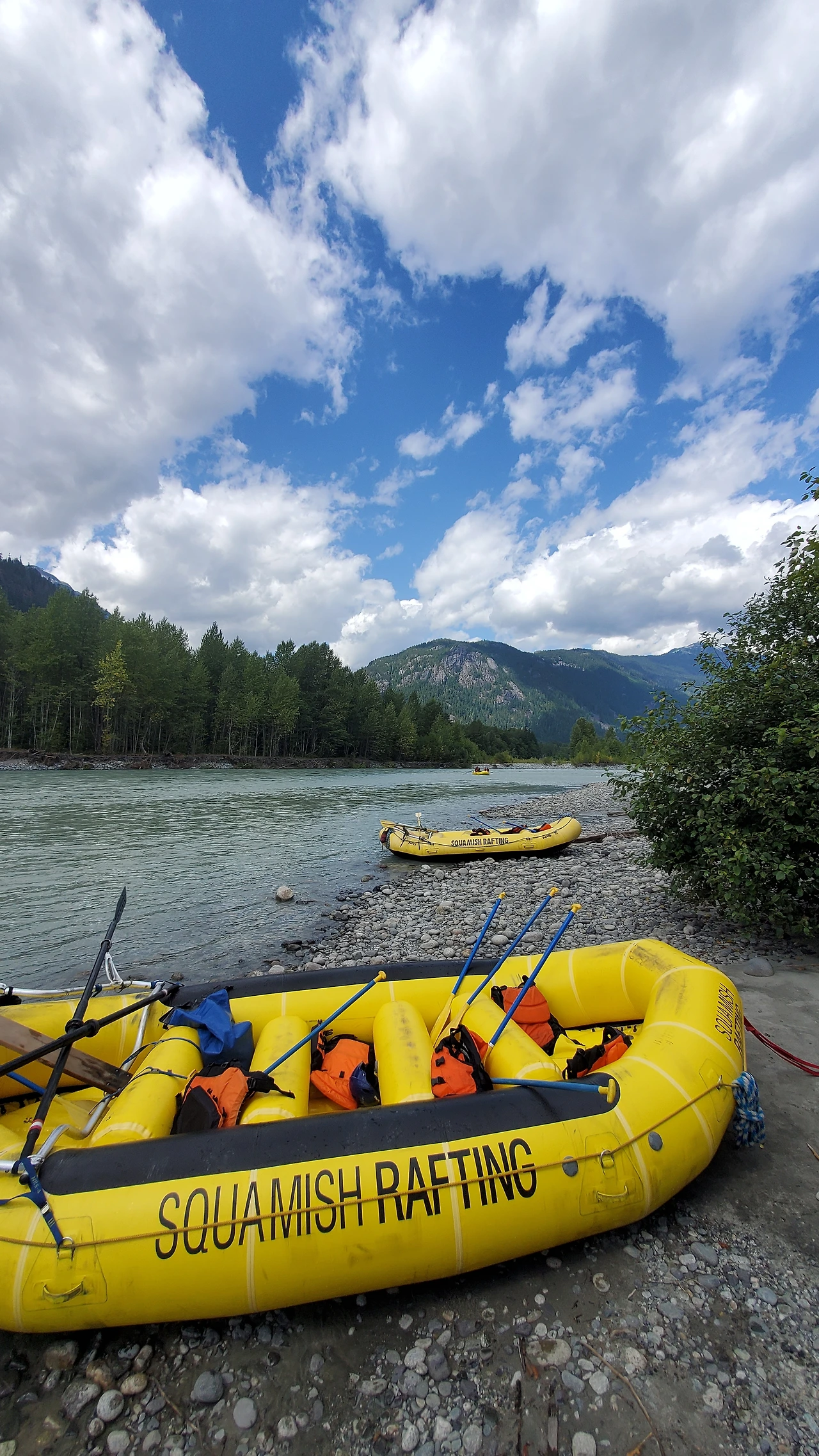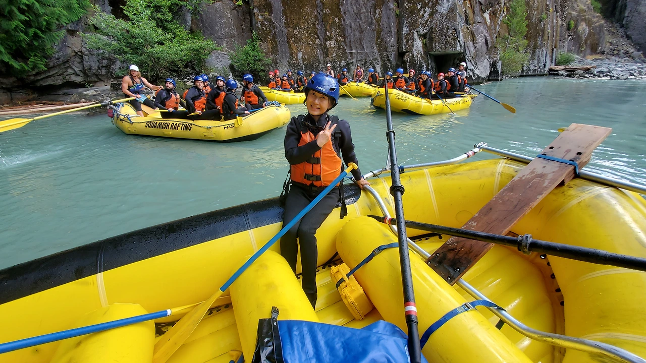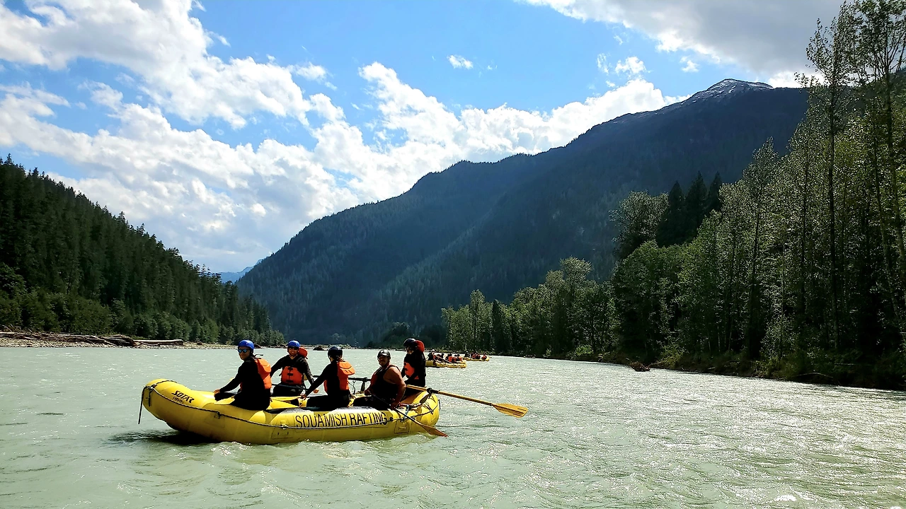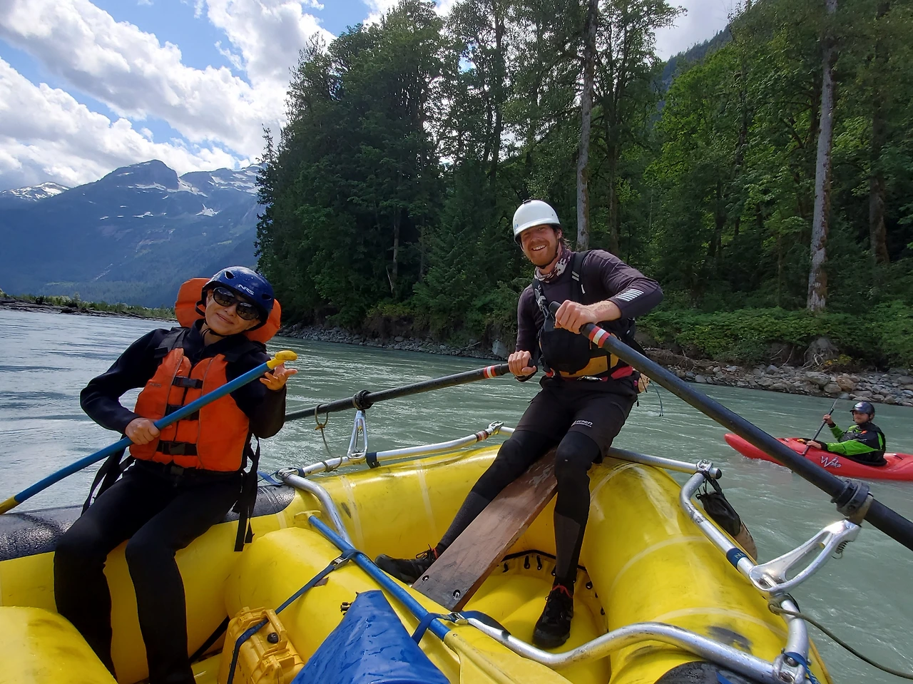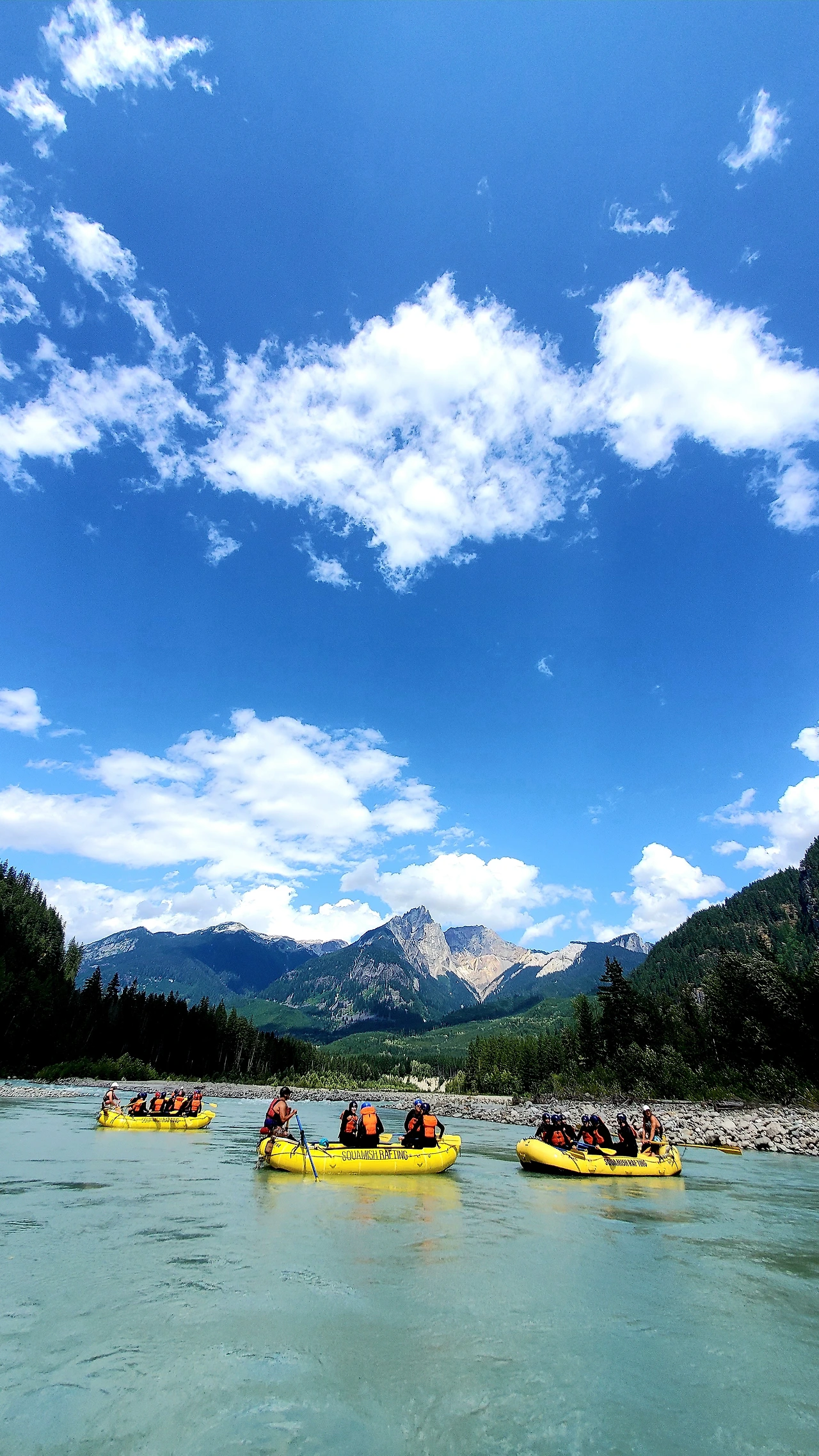 총 31명이 참가했는데 동양계 캐나디언은 우리 가족 셋 밖에 없었다. 십여명이 넘는 스탭들을 포함하여 오십여명 정도가 버스와 픽업 트럭에 타고 래프팅이 시작되는 엘라호 강 상류 지점까지 이동했다.