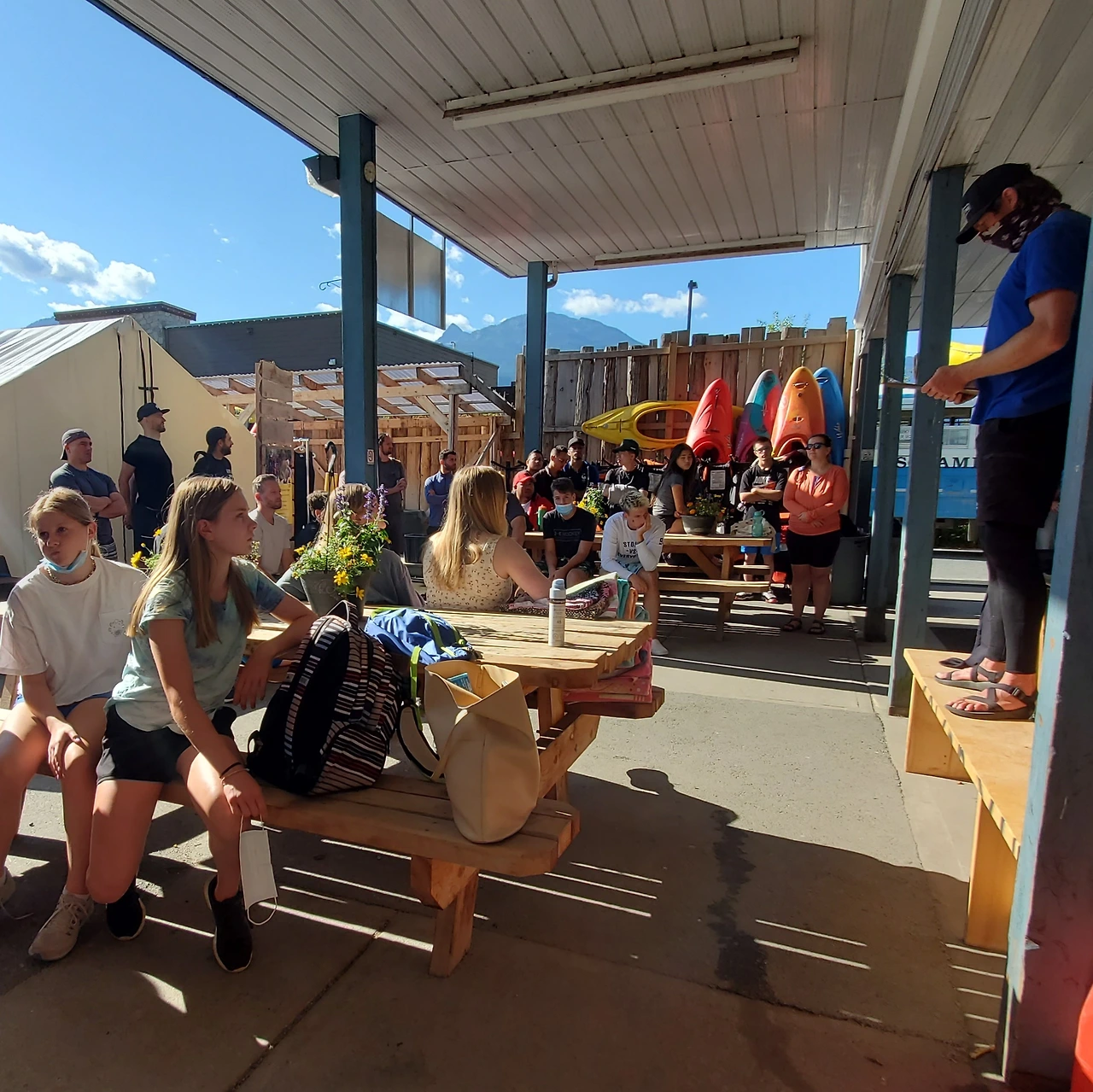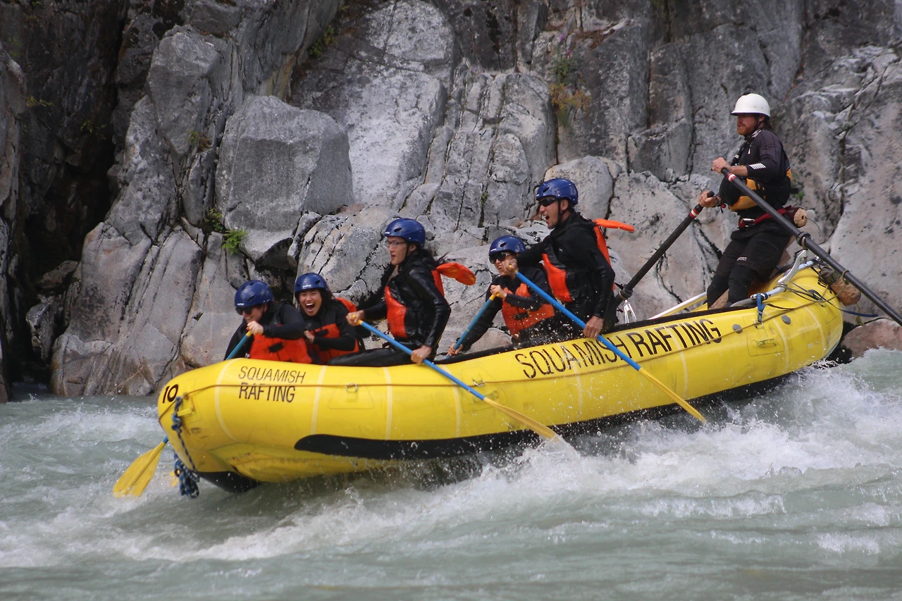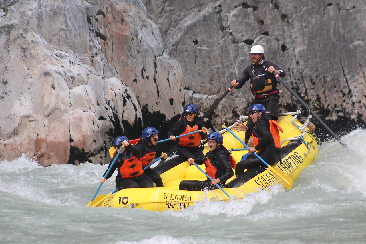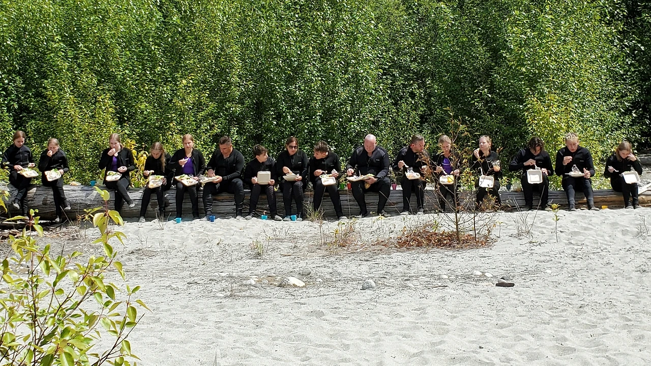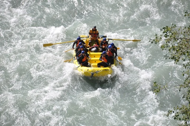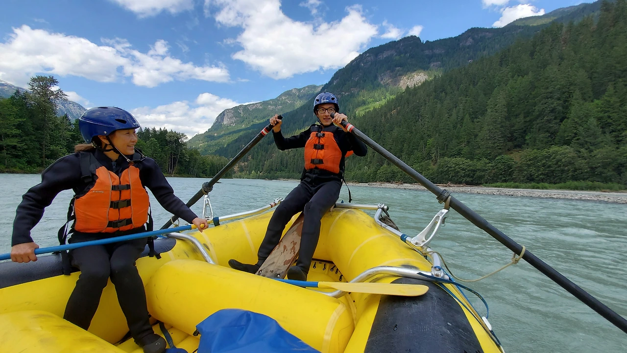 총 31명이 참가했는데 동양계 캐나디언은 우리 가족 셋 밖에 없었다. 십여명이 넘는 스탭들을 포함하여 오십여명 정도가 버스와 픽업 트럭에 타고 래프팅이 시작되는 엘라호 강 상류 지점까지 이동했다.